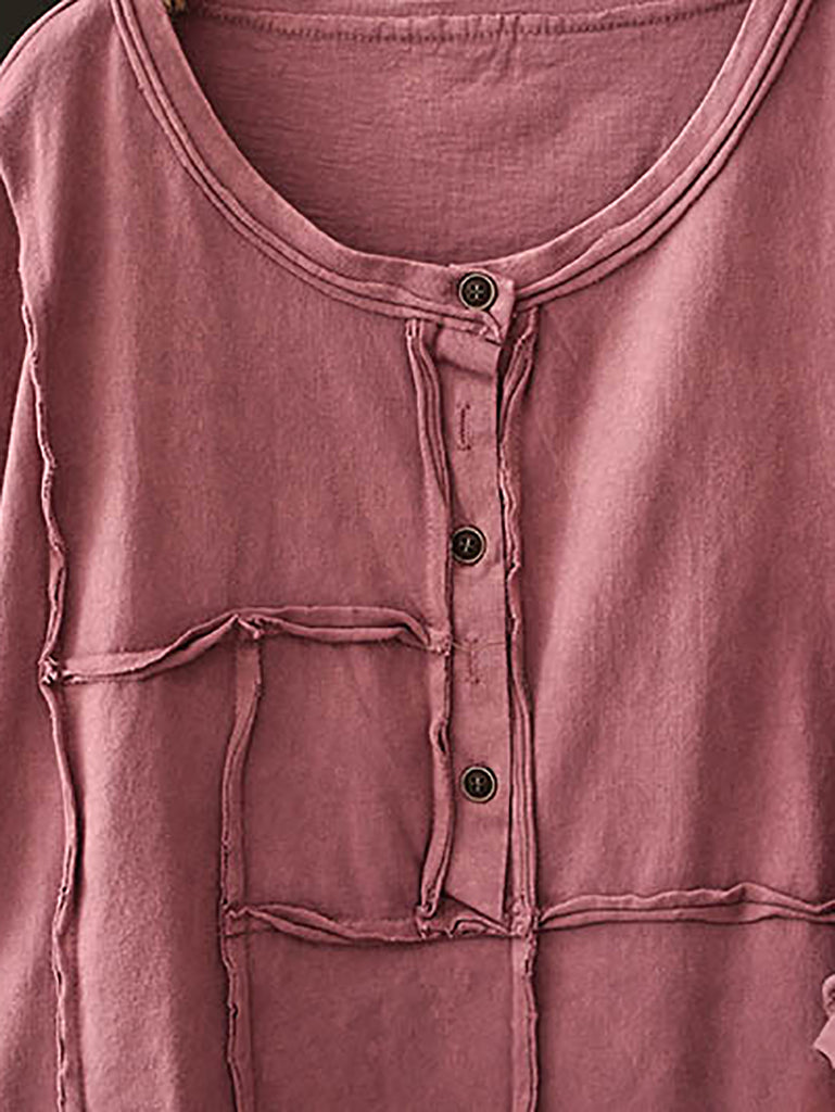 女士夏季復古純色圓領棉質襯衫