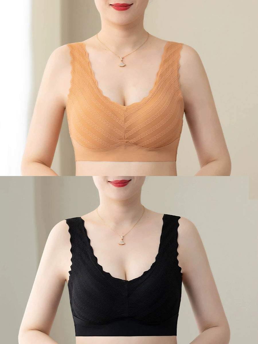 2 件裝女士藝術純色一體式無鋼圈胸罩