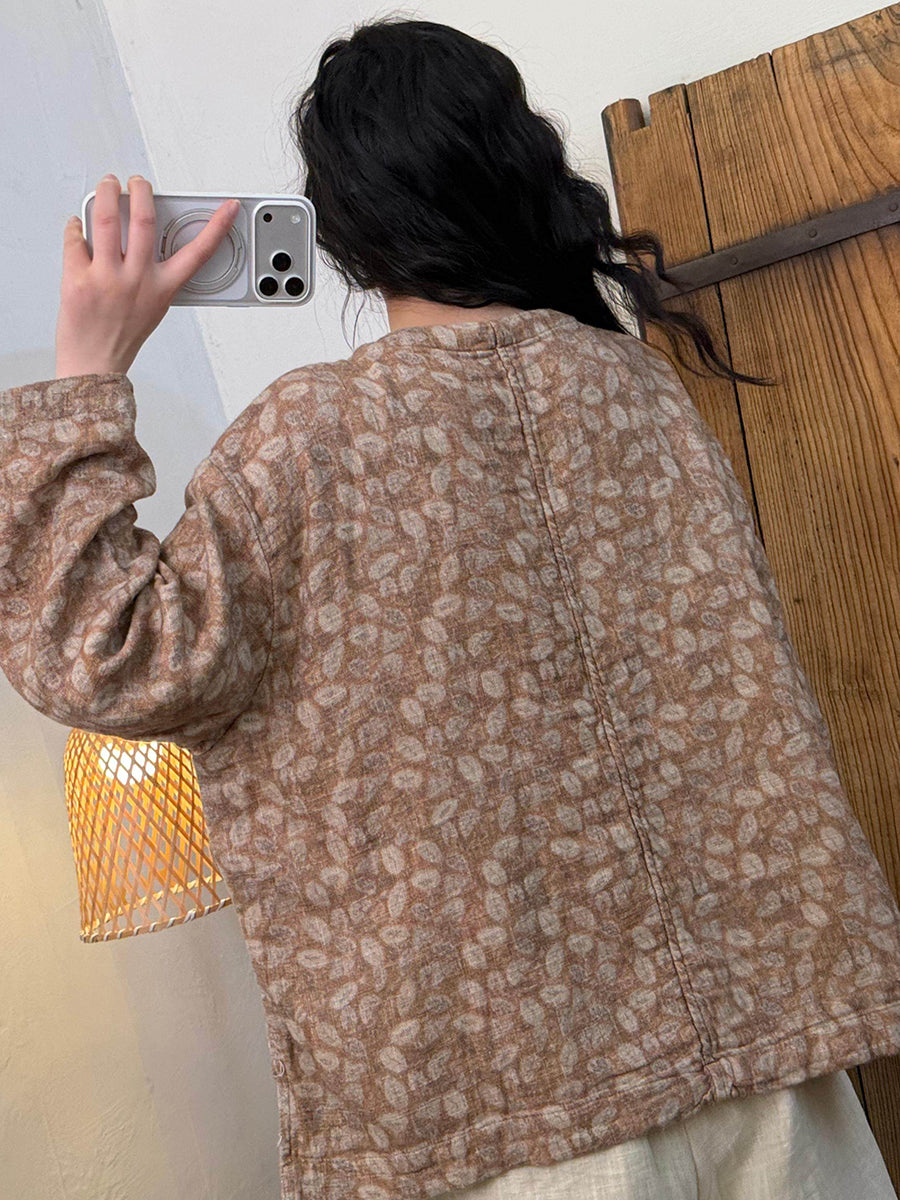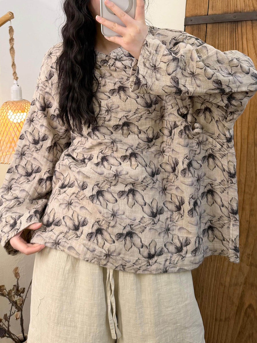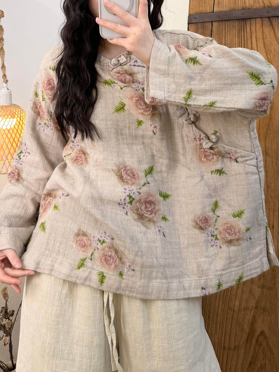 女士藝術風春季花朵圓領襯衫