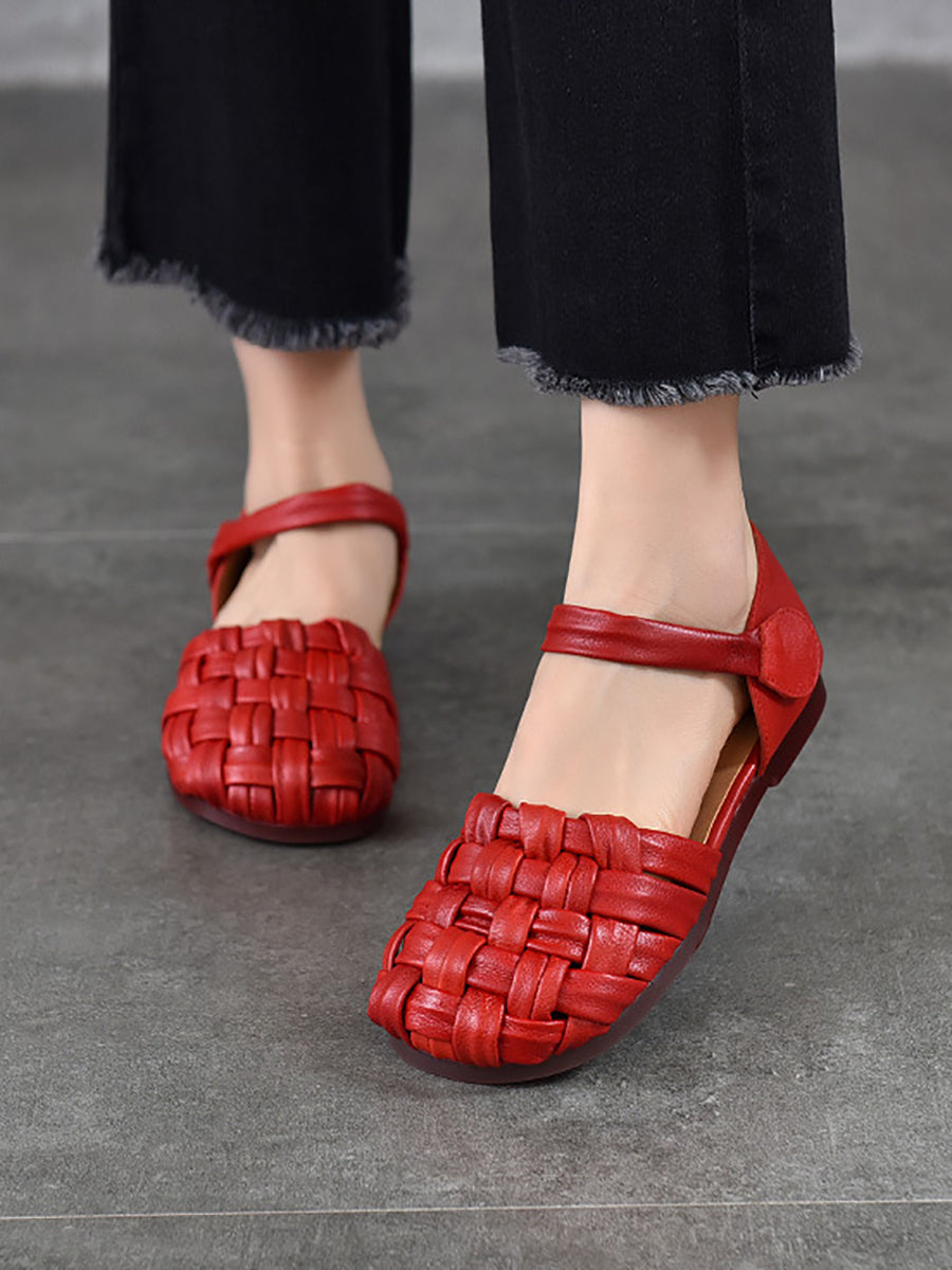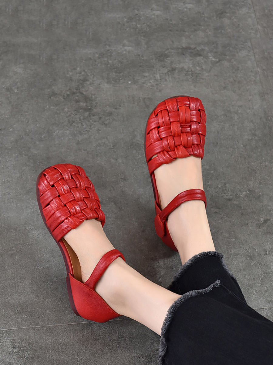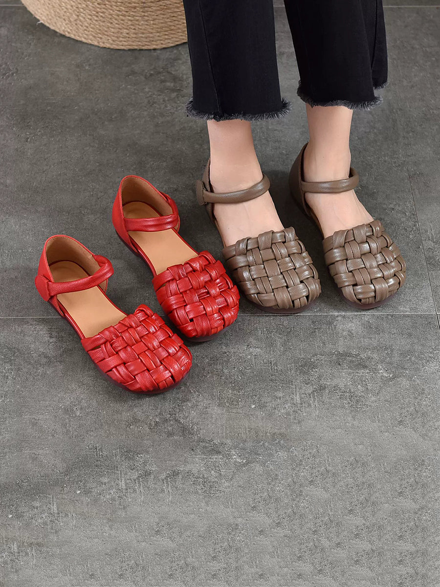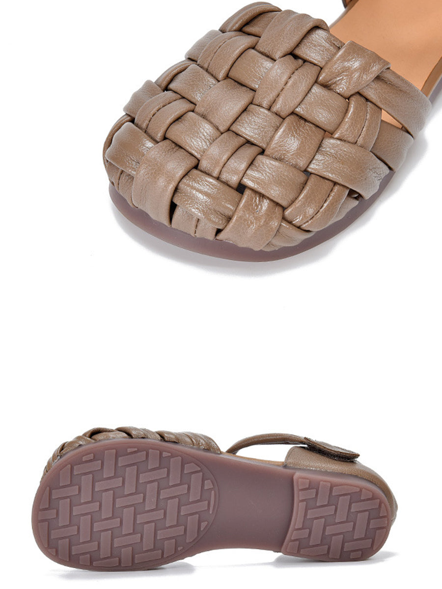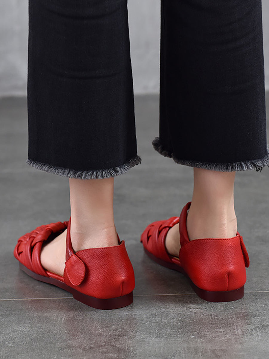 女士休閒夏季真皮平底涼鞋