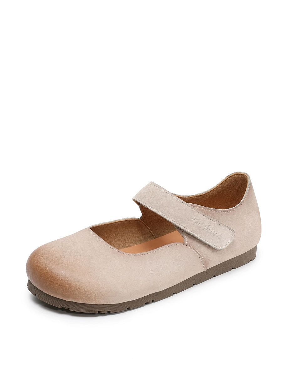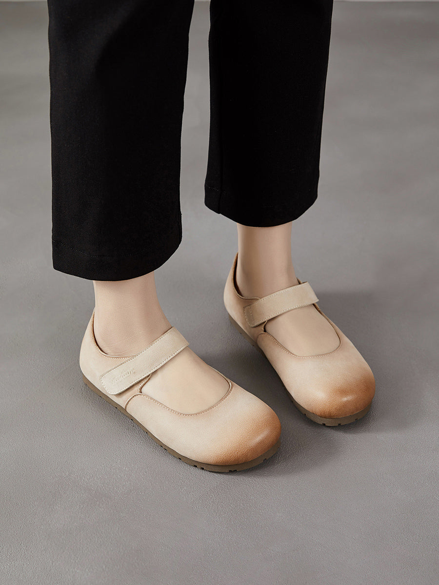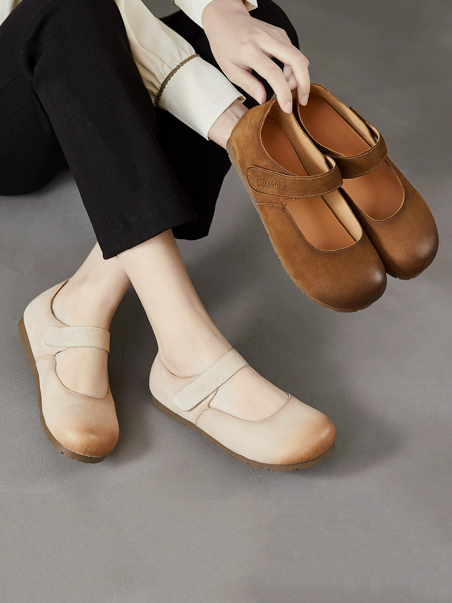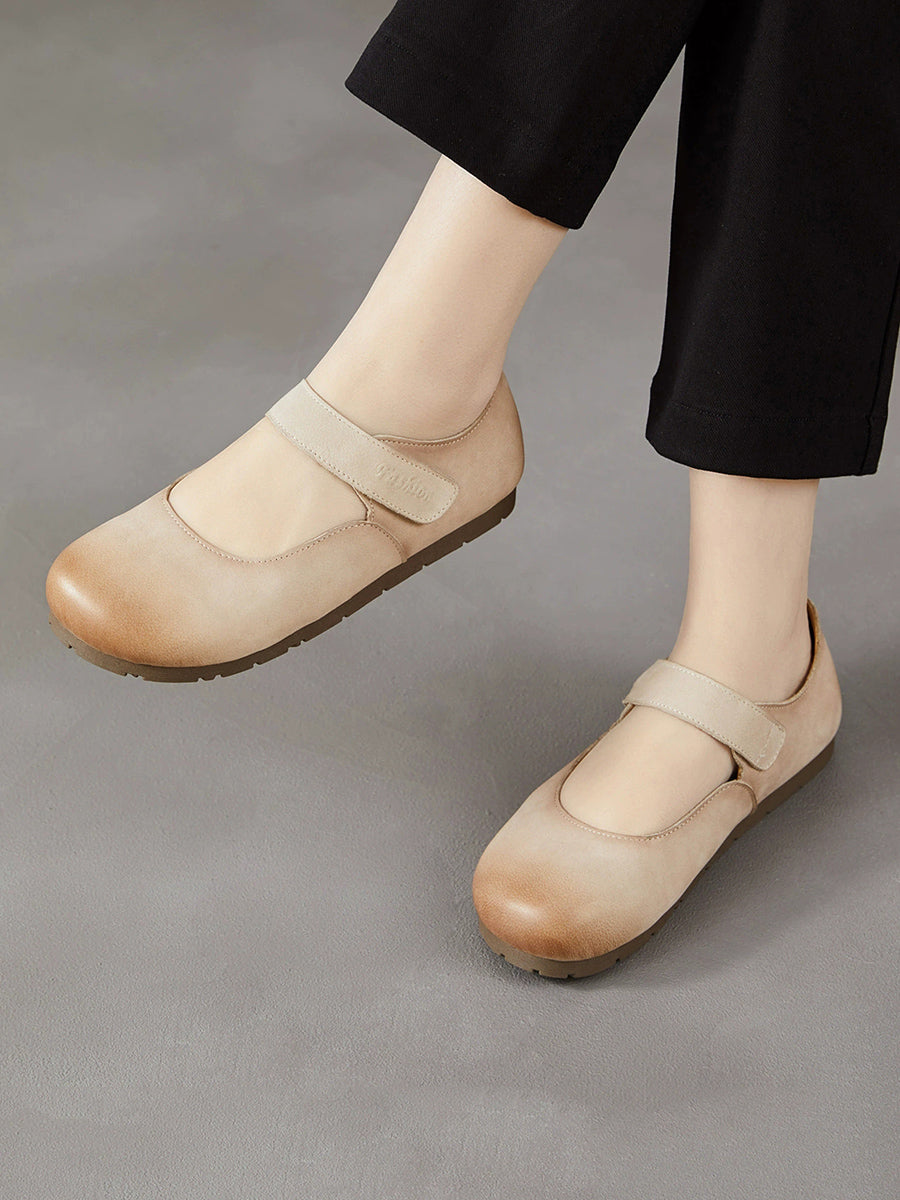 女士春季藝術風真皮平底鞋