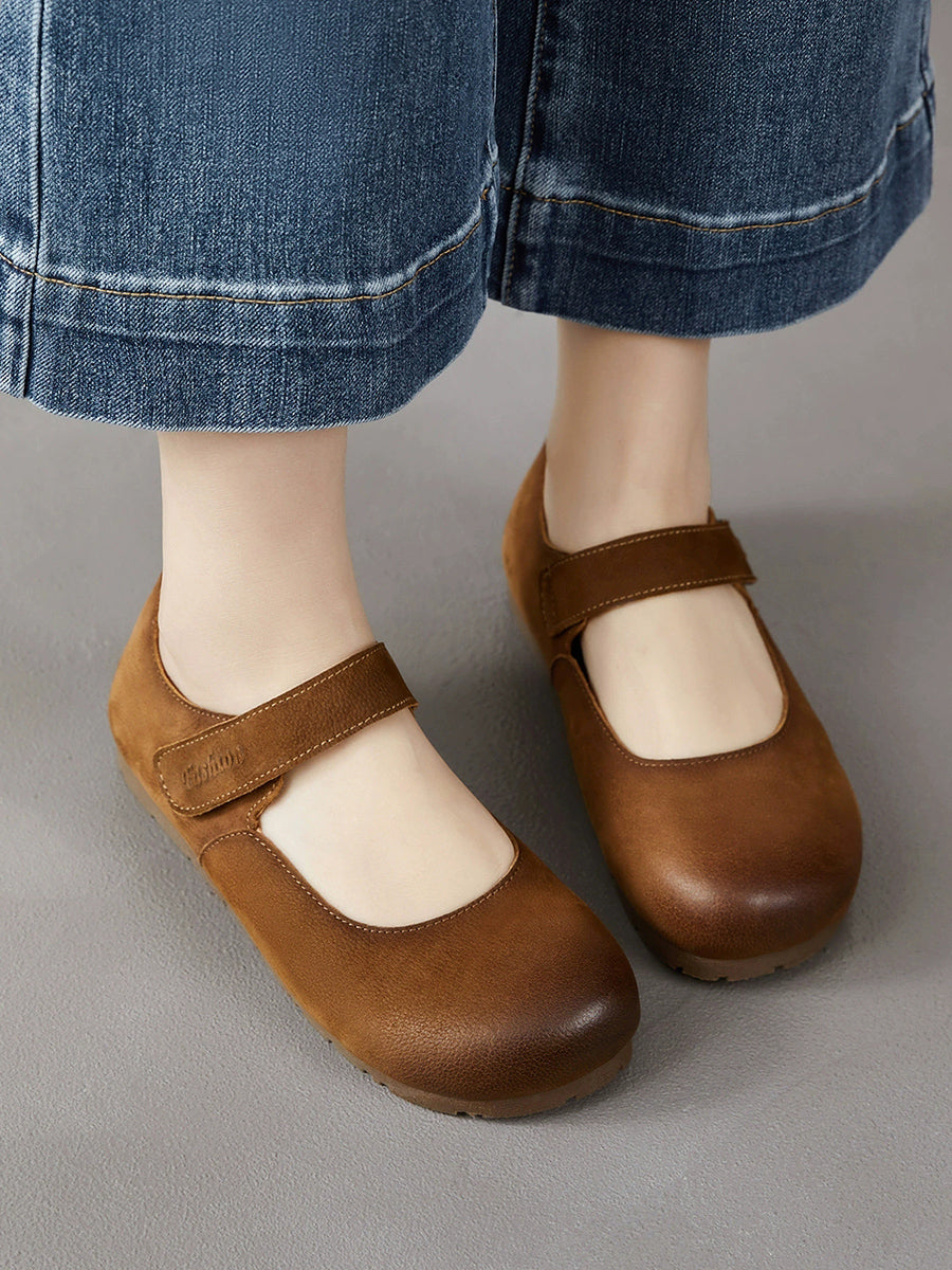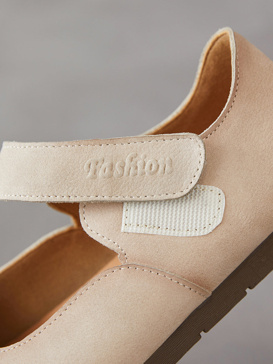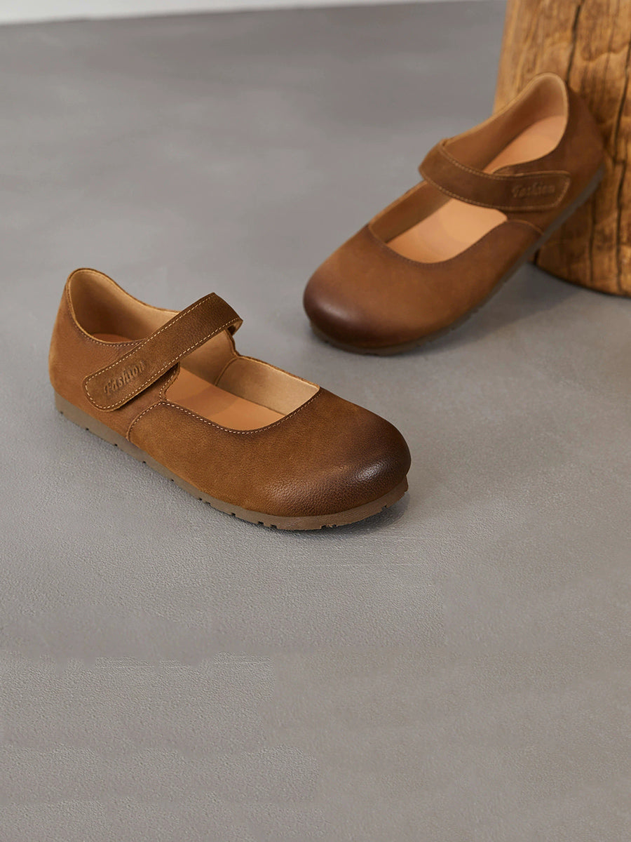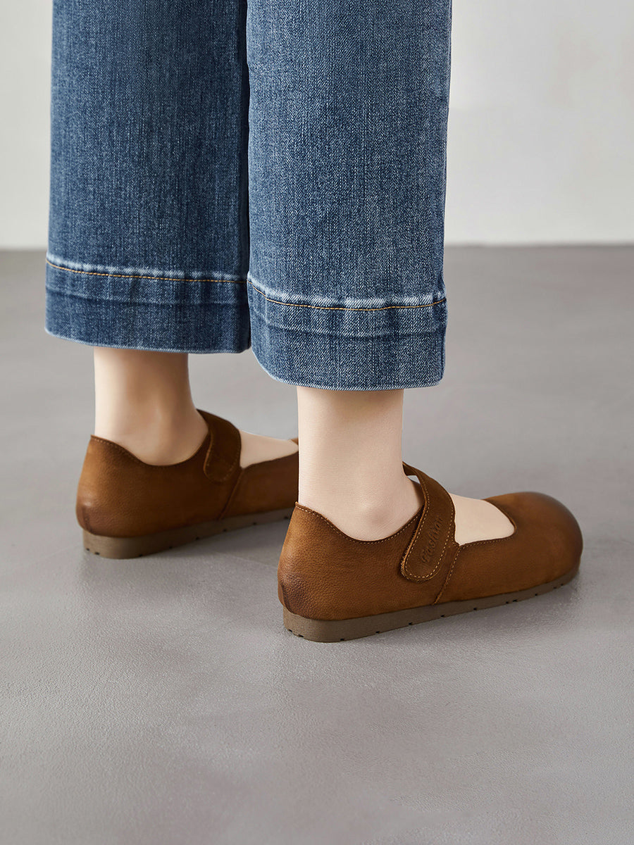 女士春季藝術風真皮平底鞋