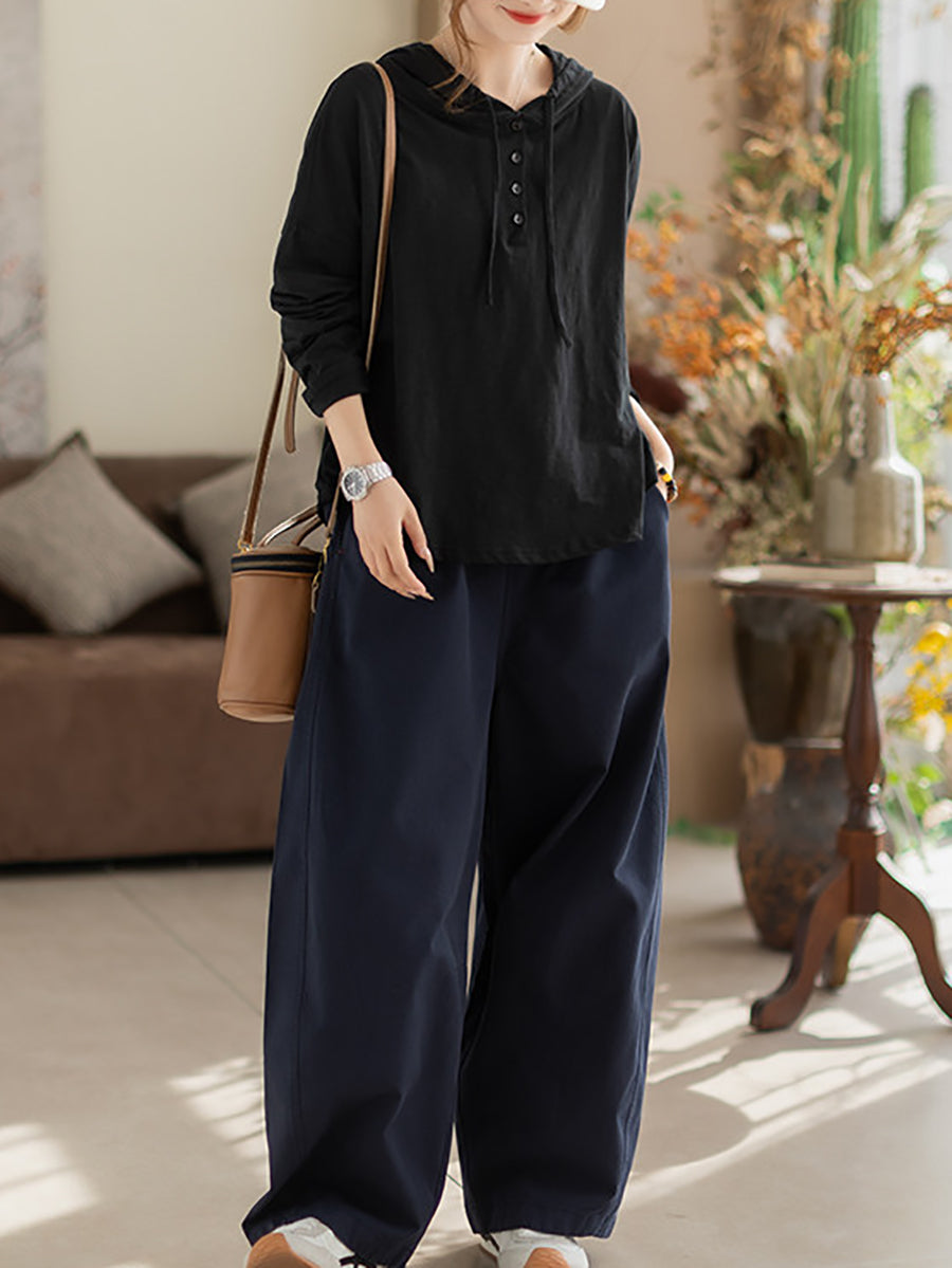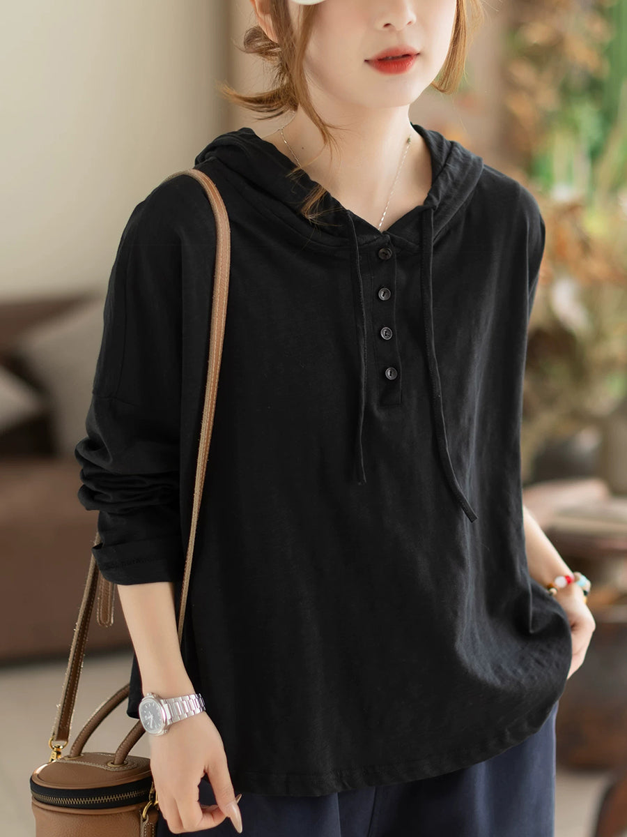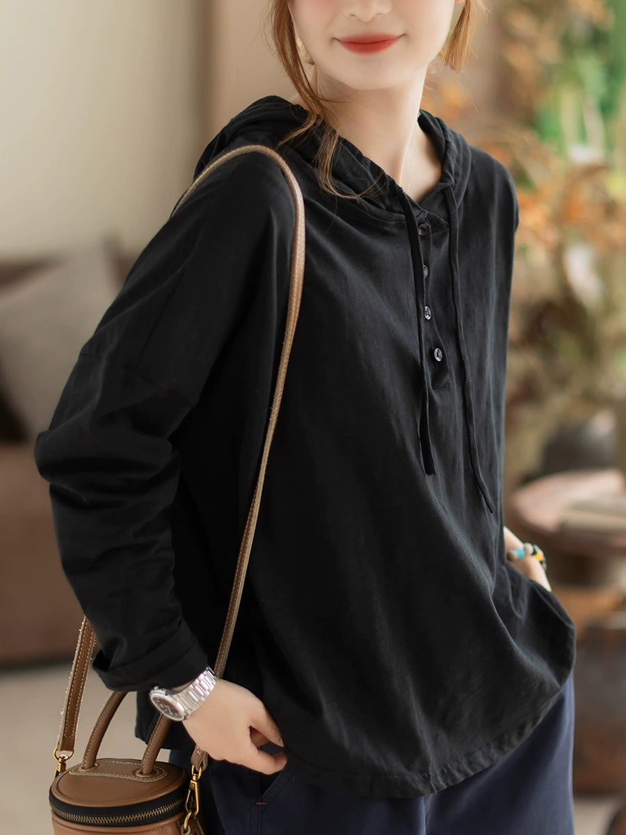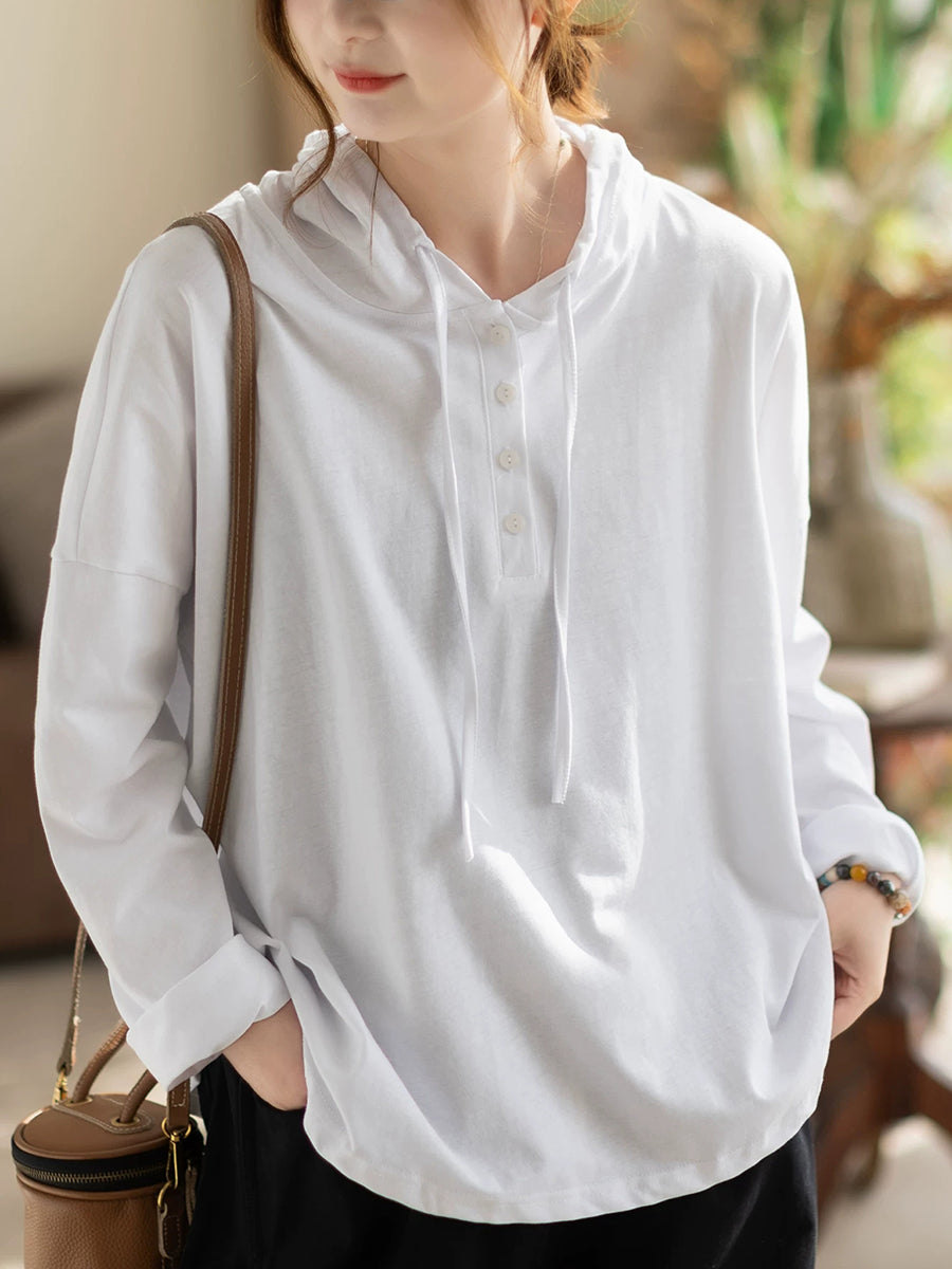 女士春季休閒純色棉質連帽衫