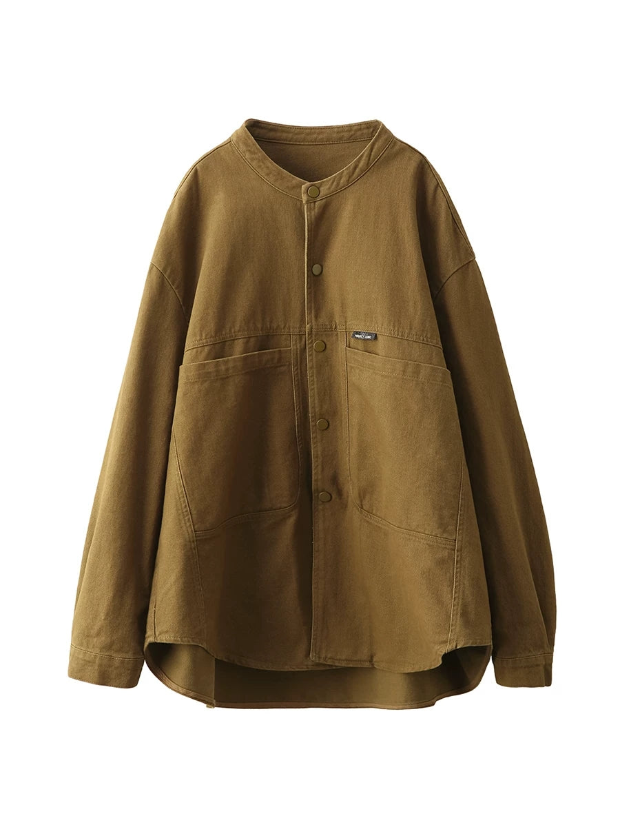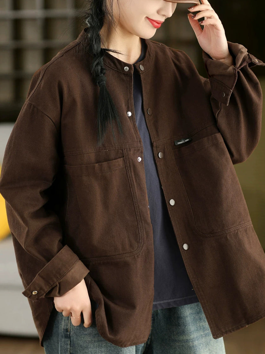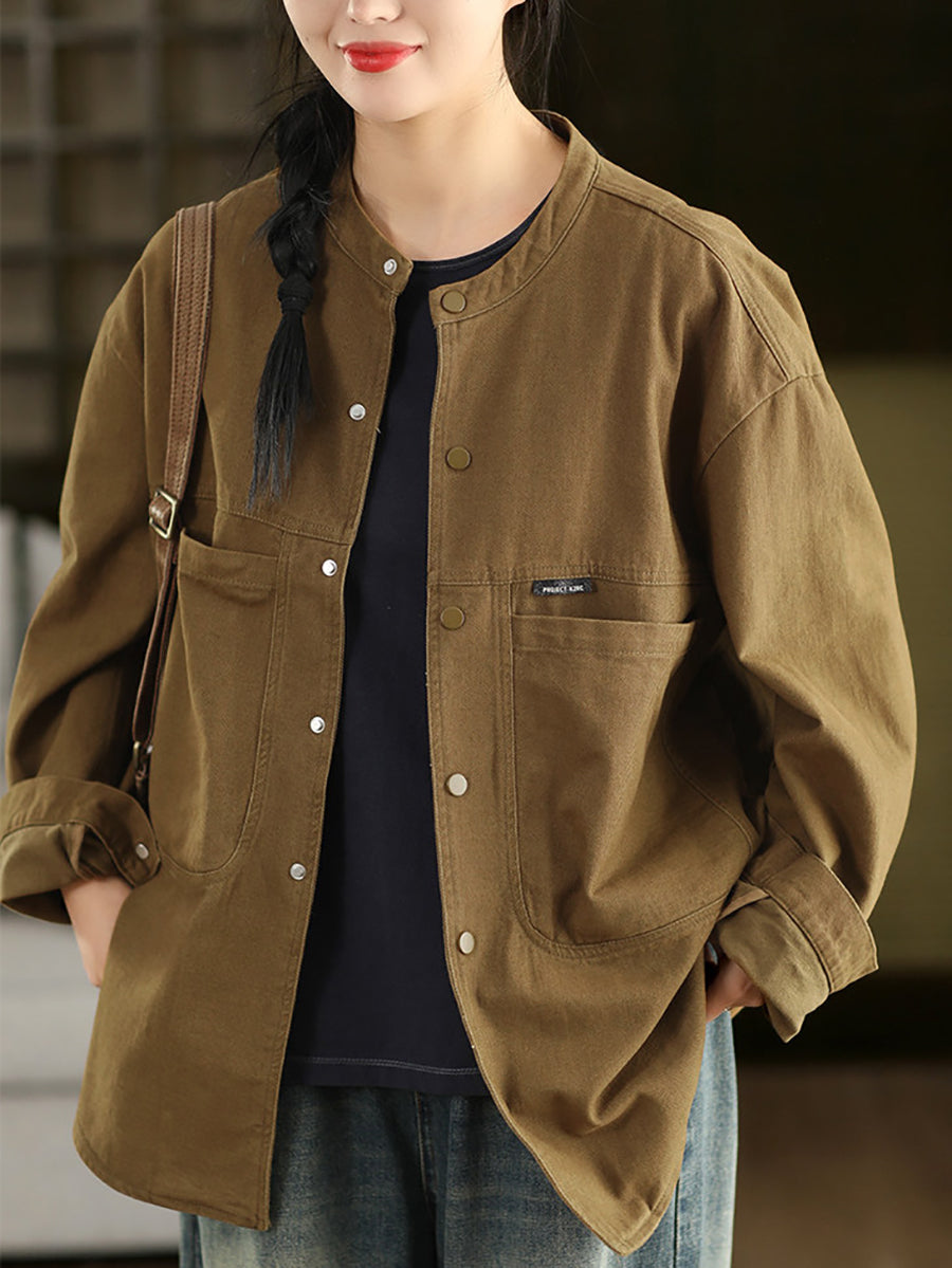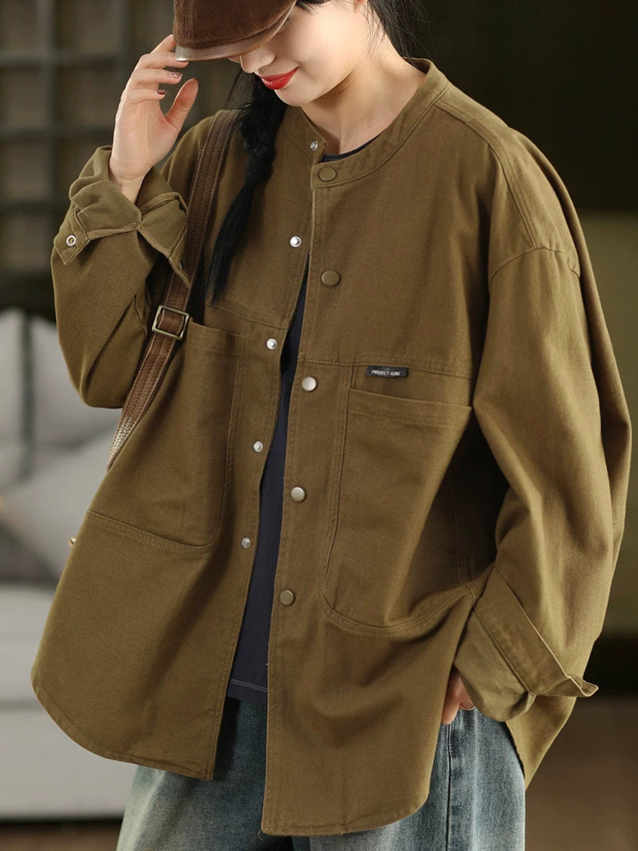 女士春季純色100%棉襯衫外套