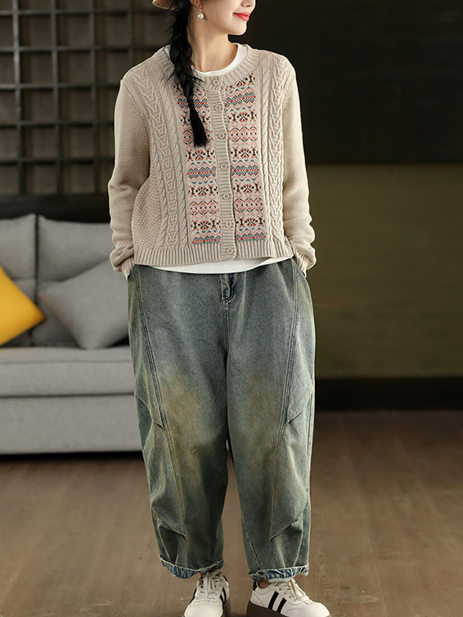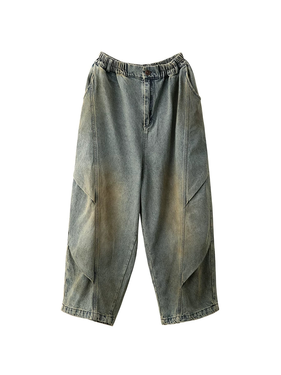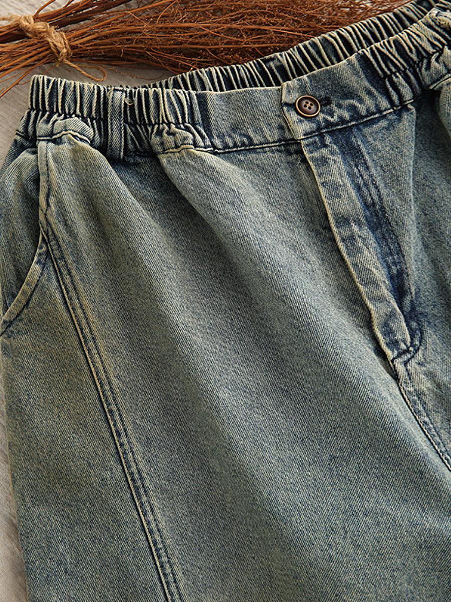 女士春季復古牛仔拼接哈倫褲