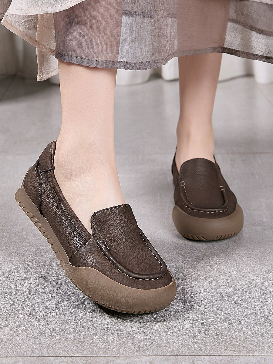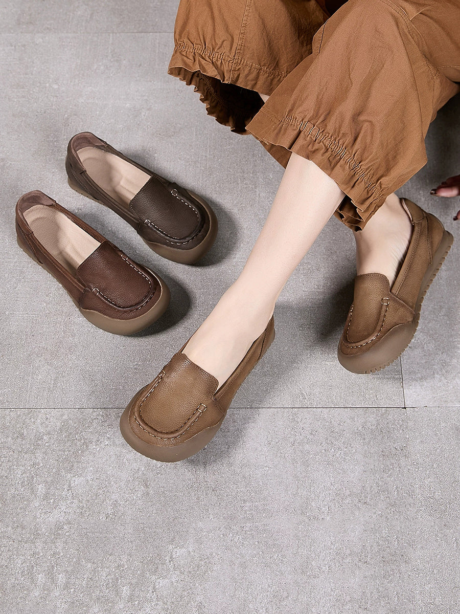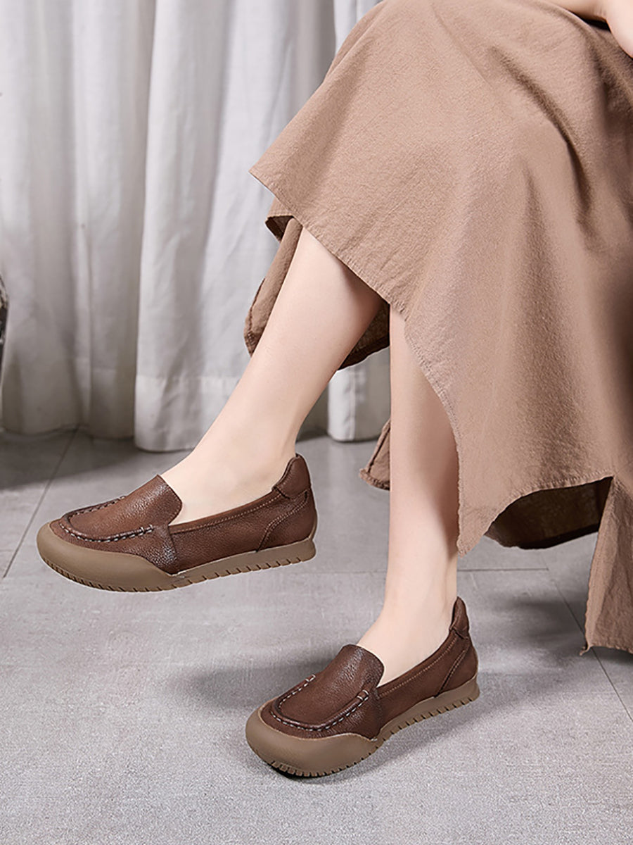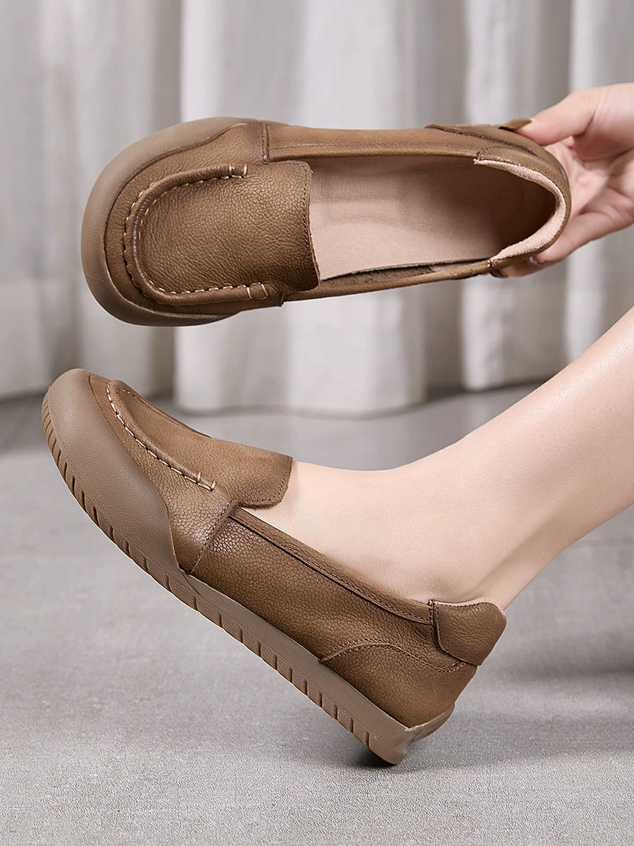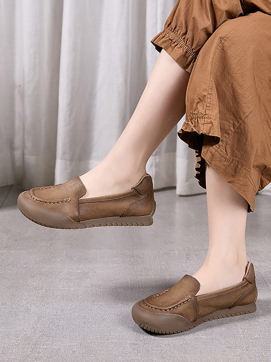 女士夏季柔軟真皮平底鞋