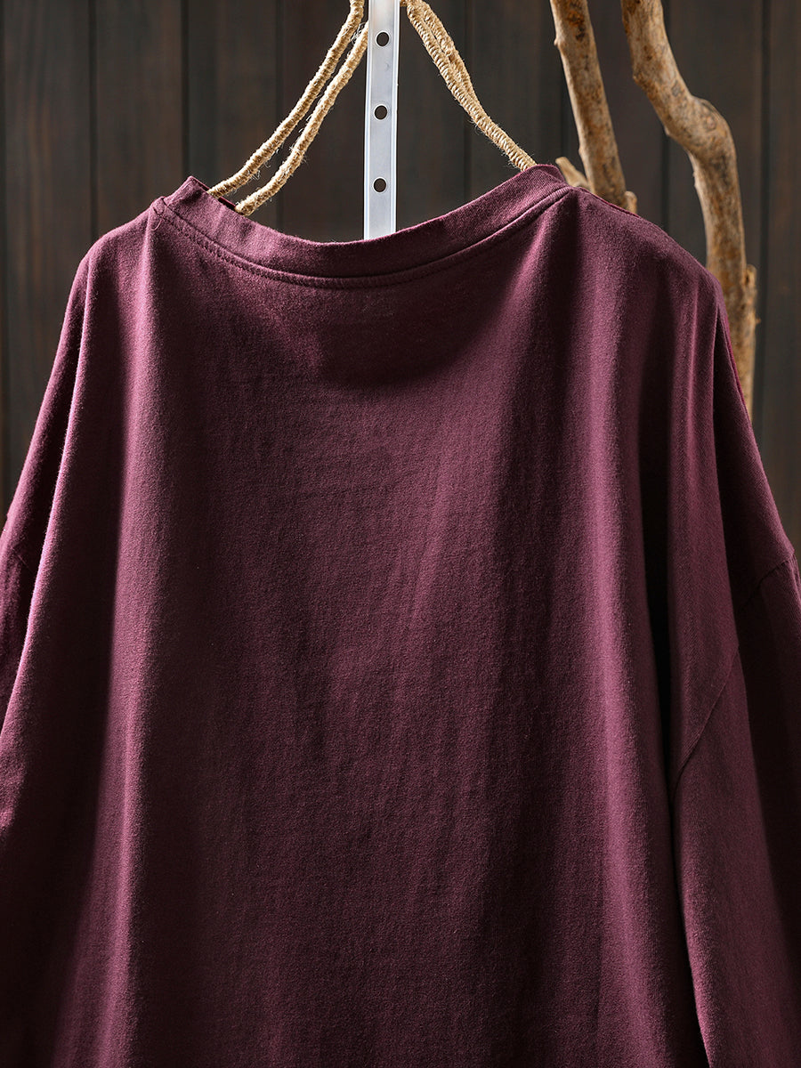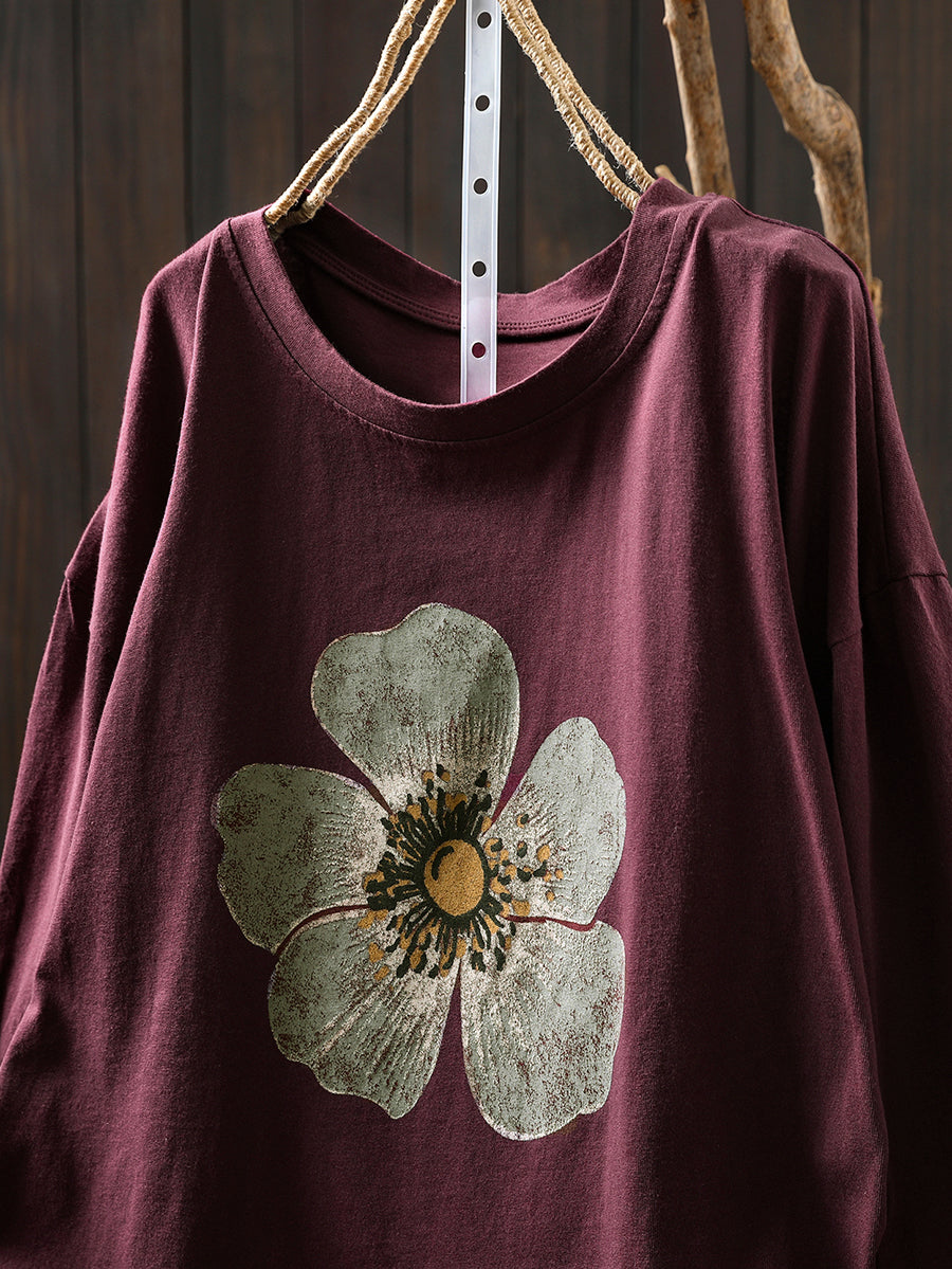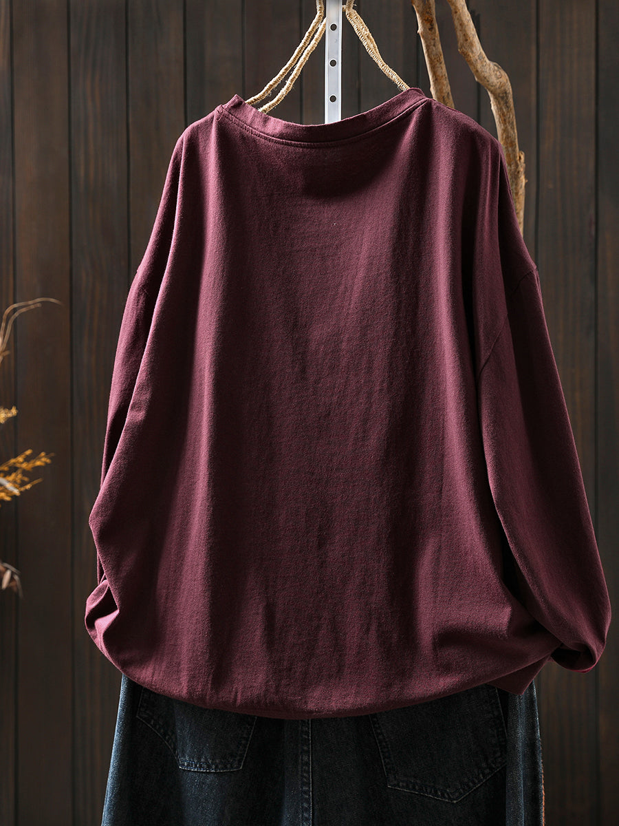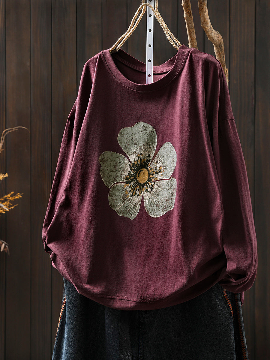 女款秋季藝術花朵圓領棉質襯衫