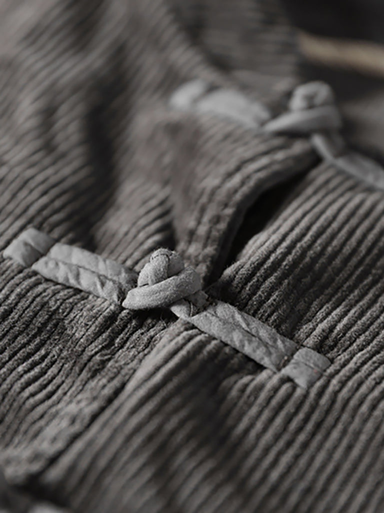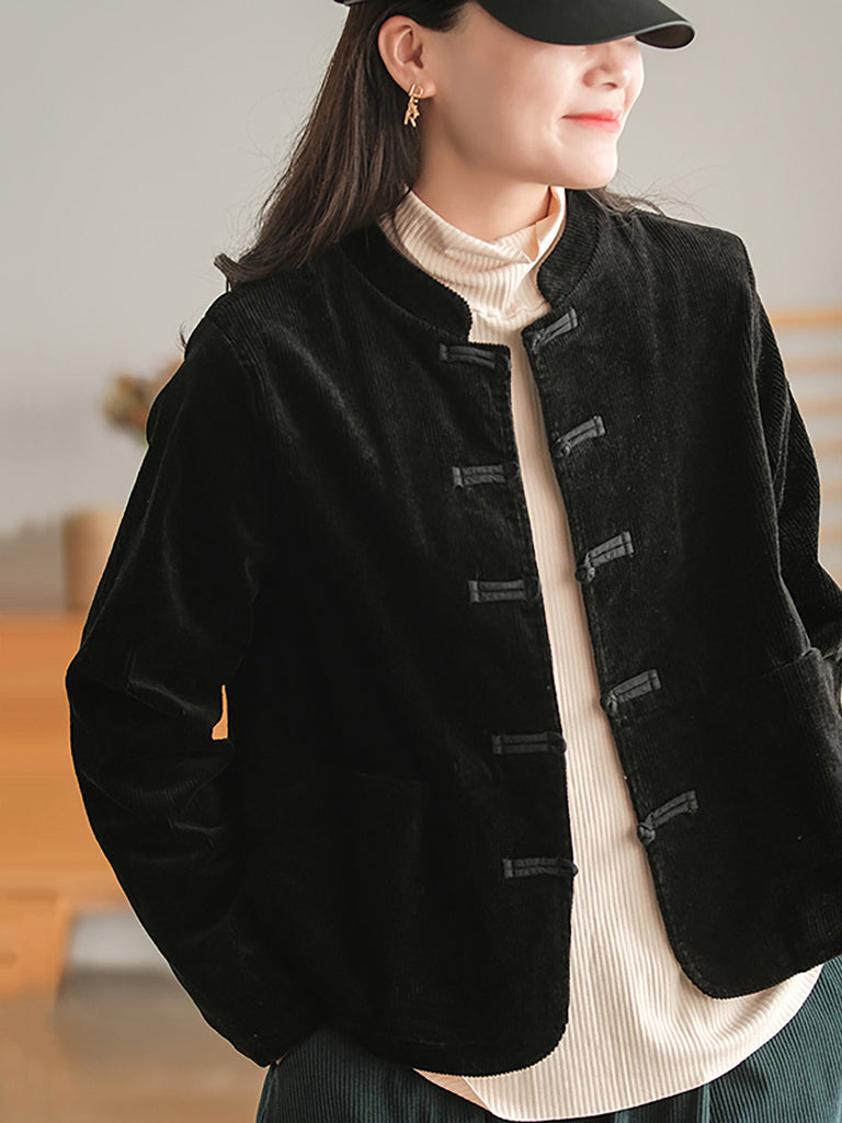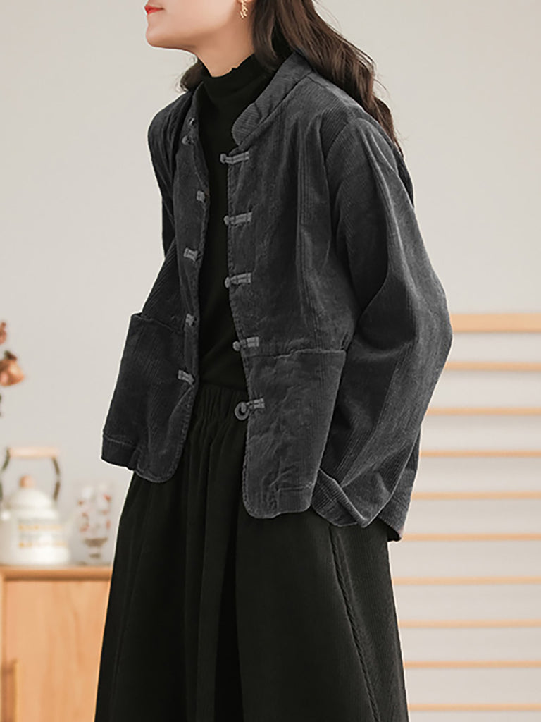大尺寸燈芯絨女式排扣口袋復古休閒外套