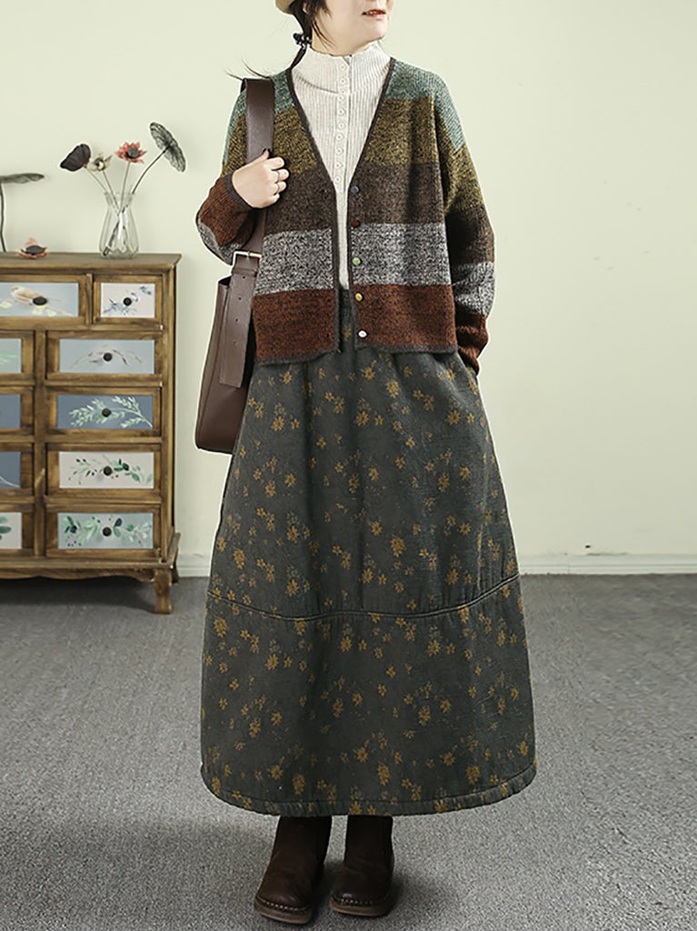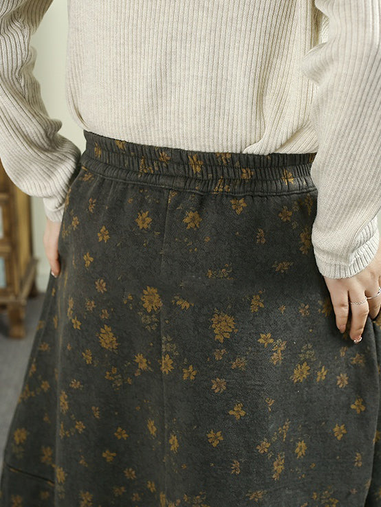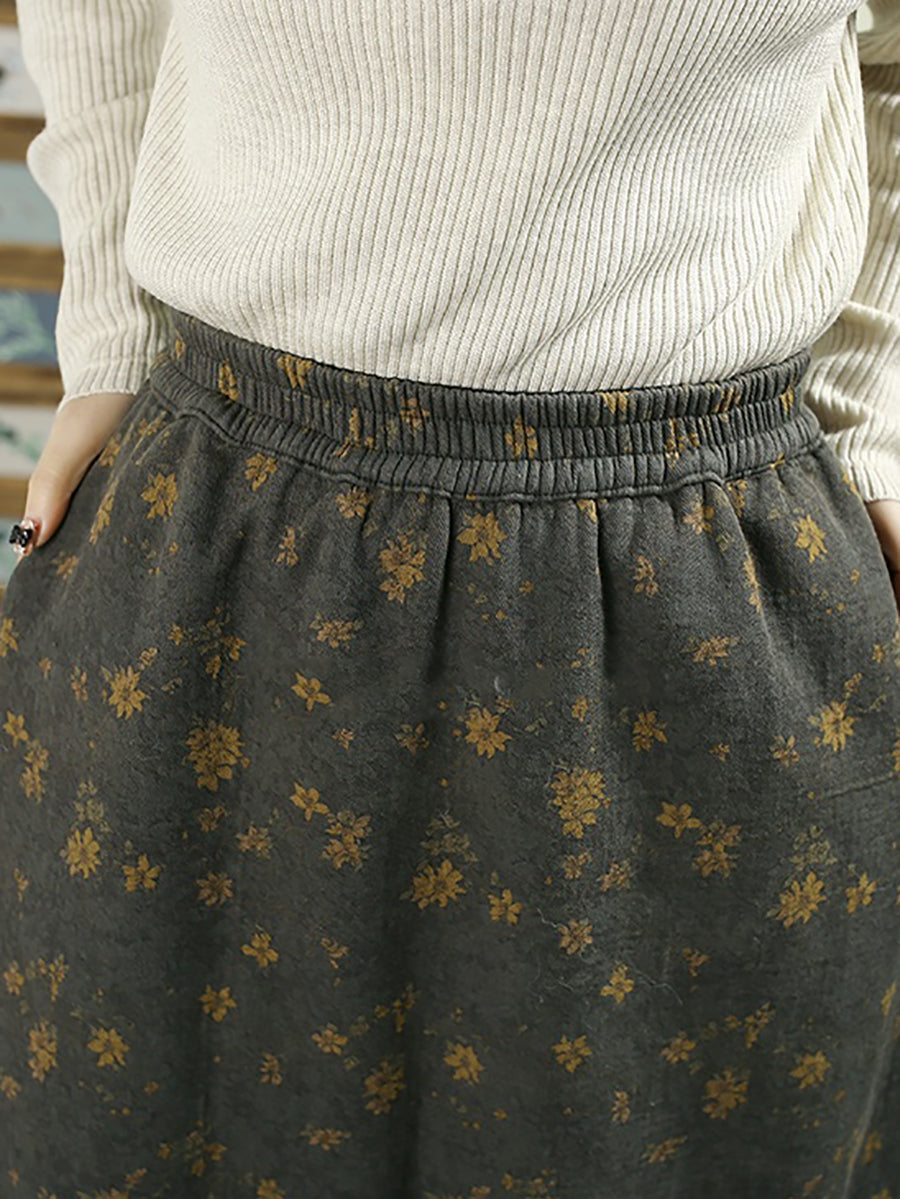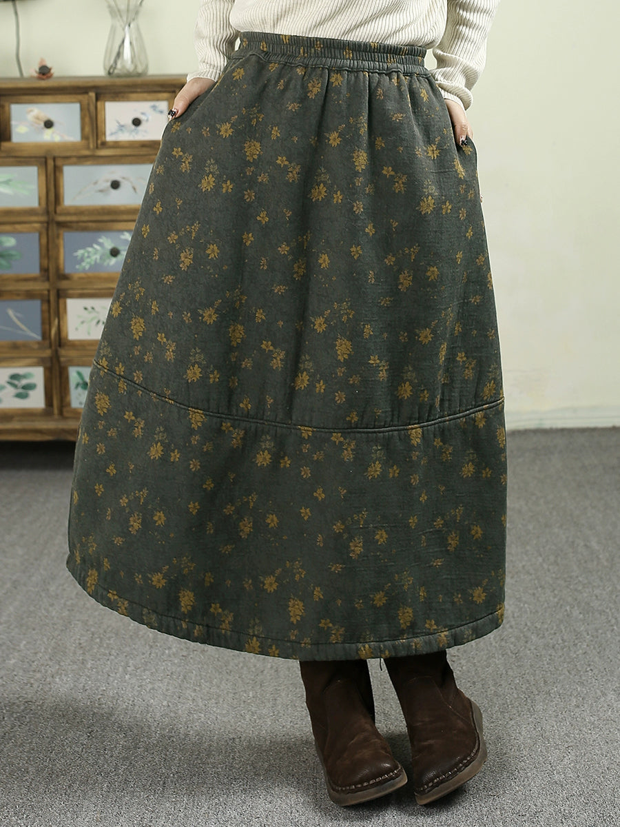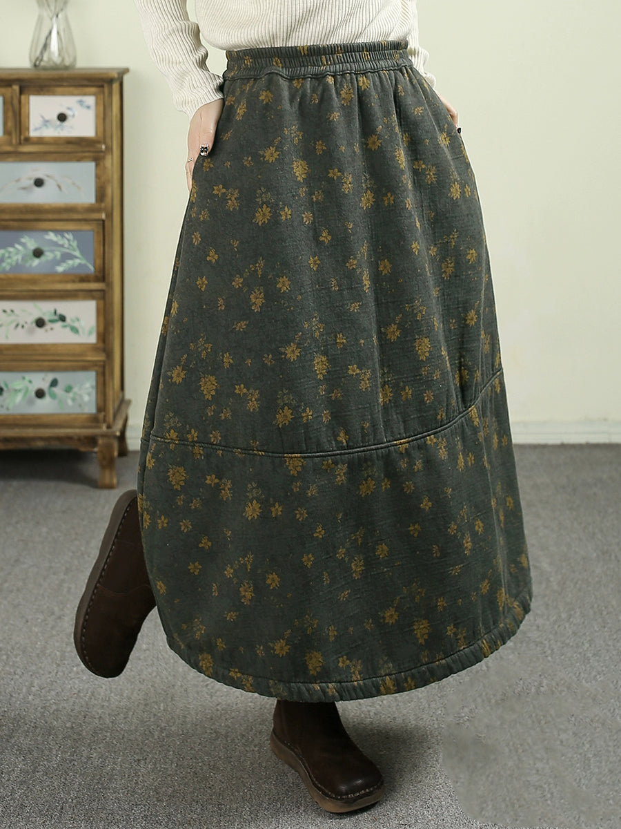 女士冬季加絨加厚碎花100%棉A字裙
