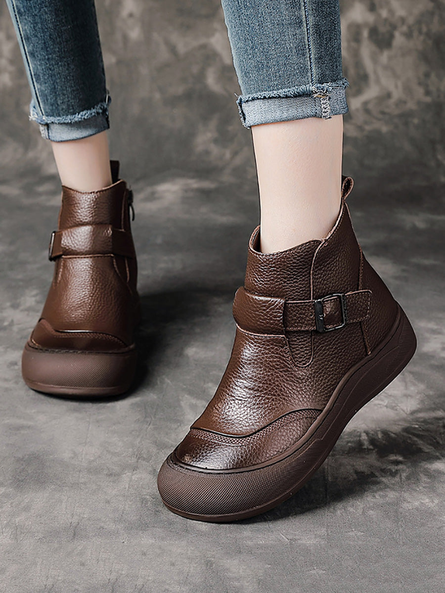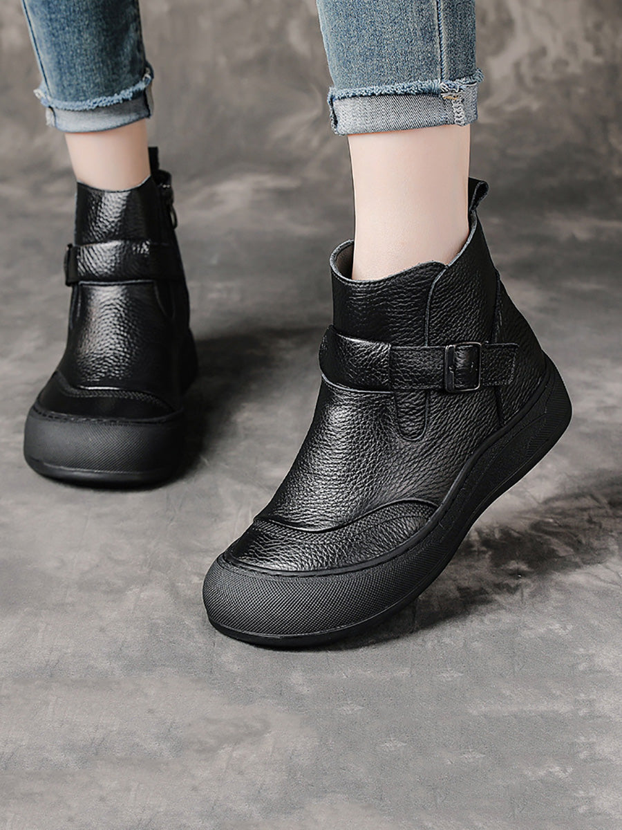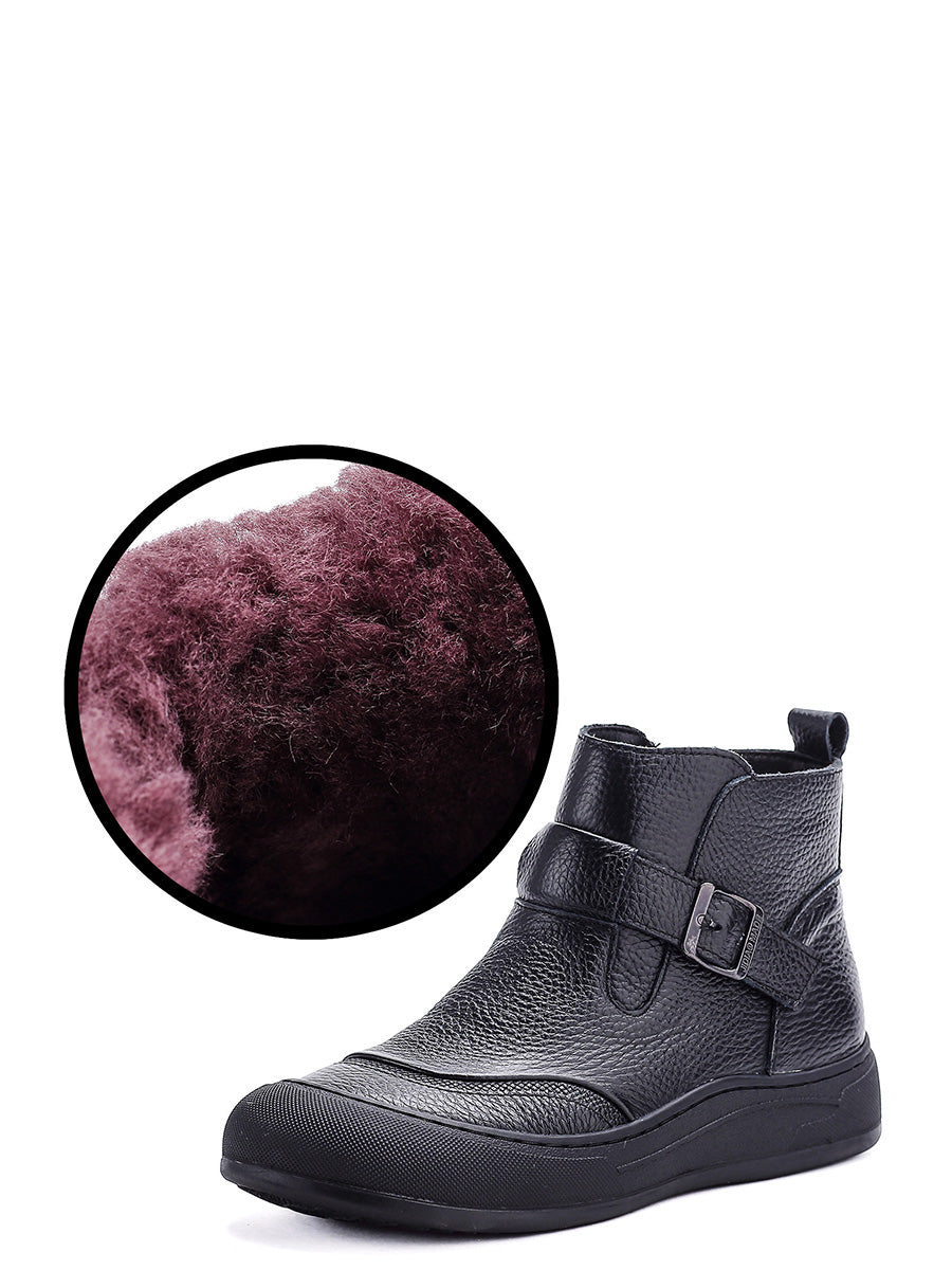 女士冬季真皮拼接厚底靴