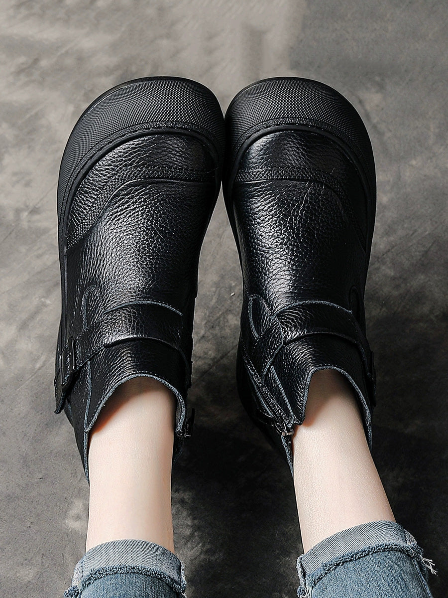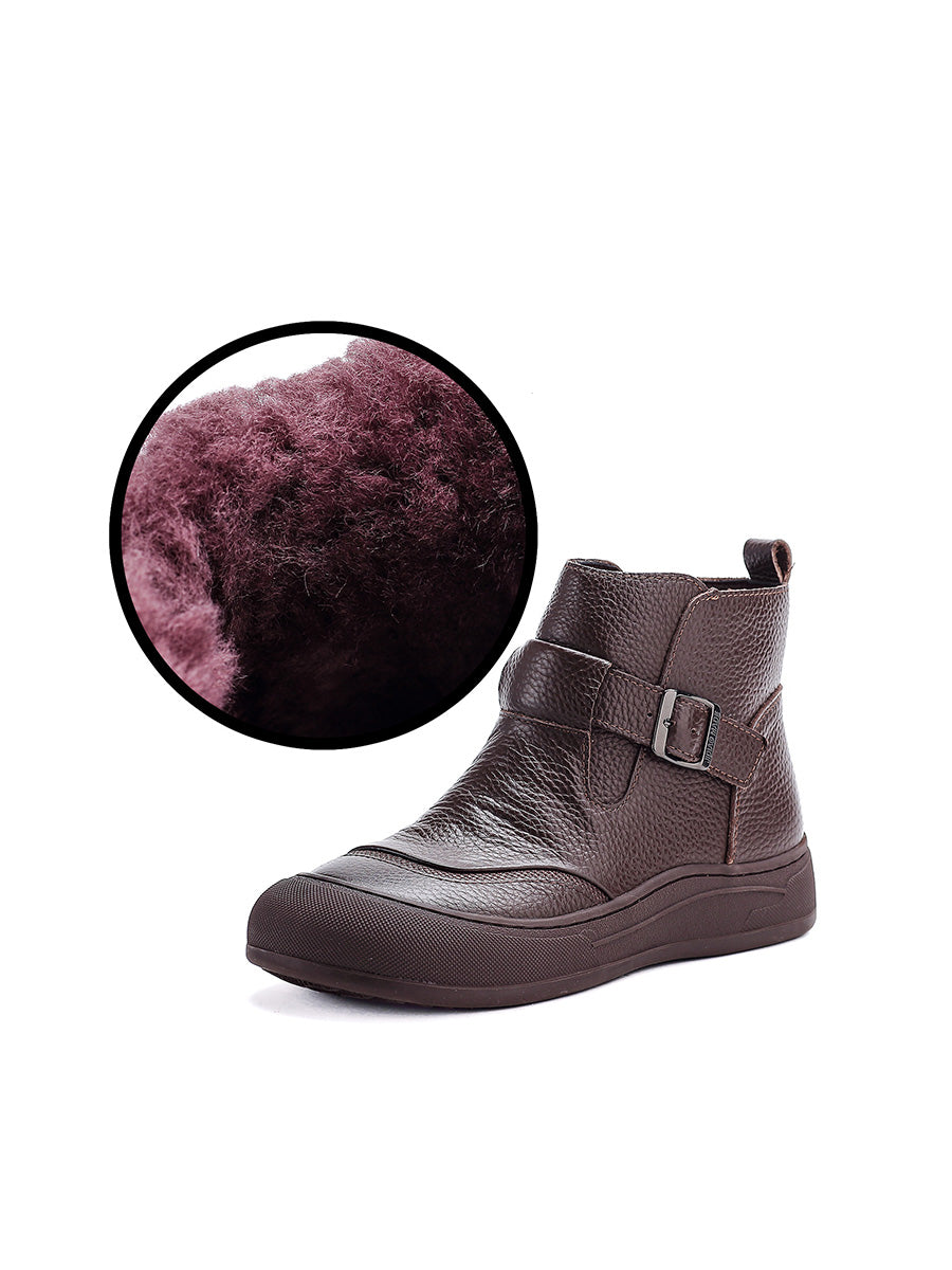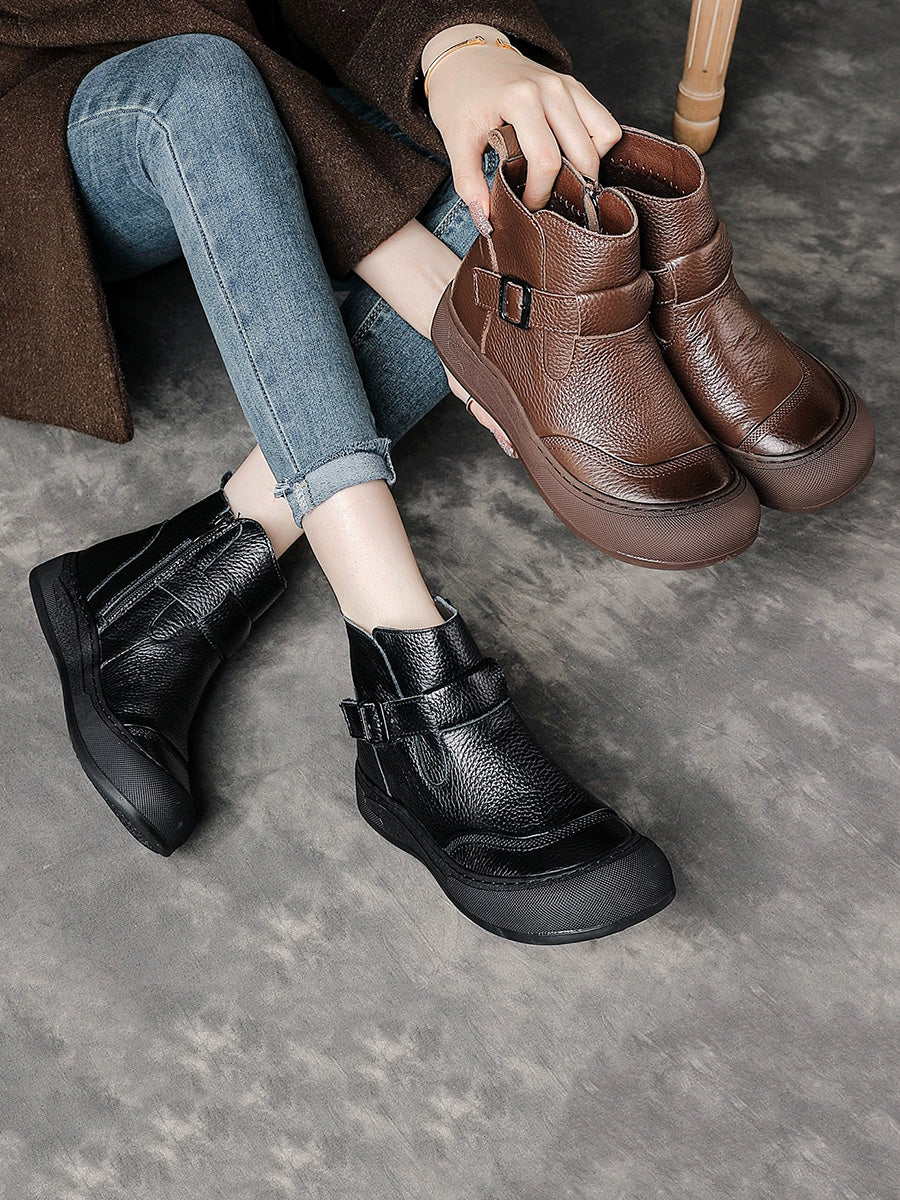 女士冬季真皮拼接厚底靴