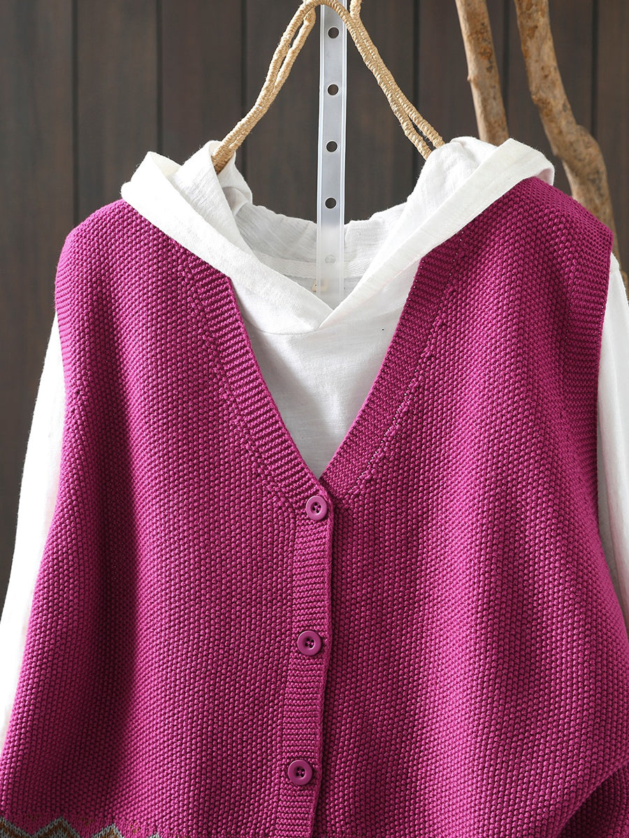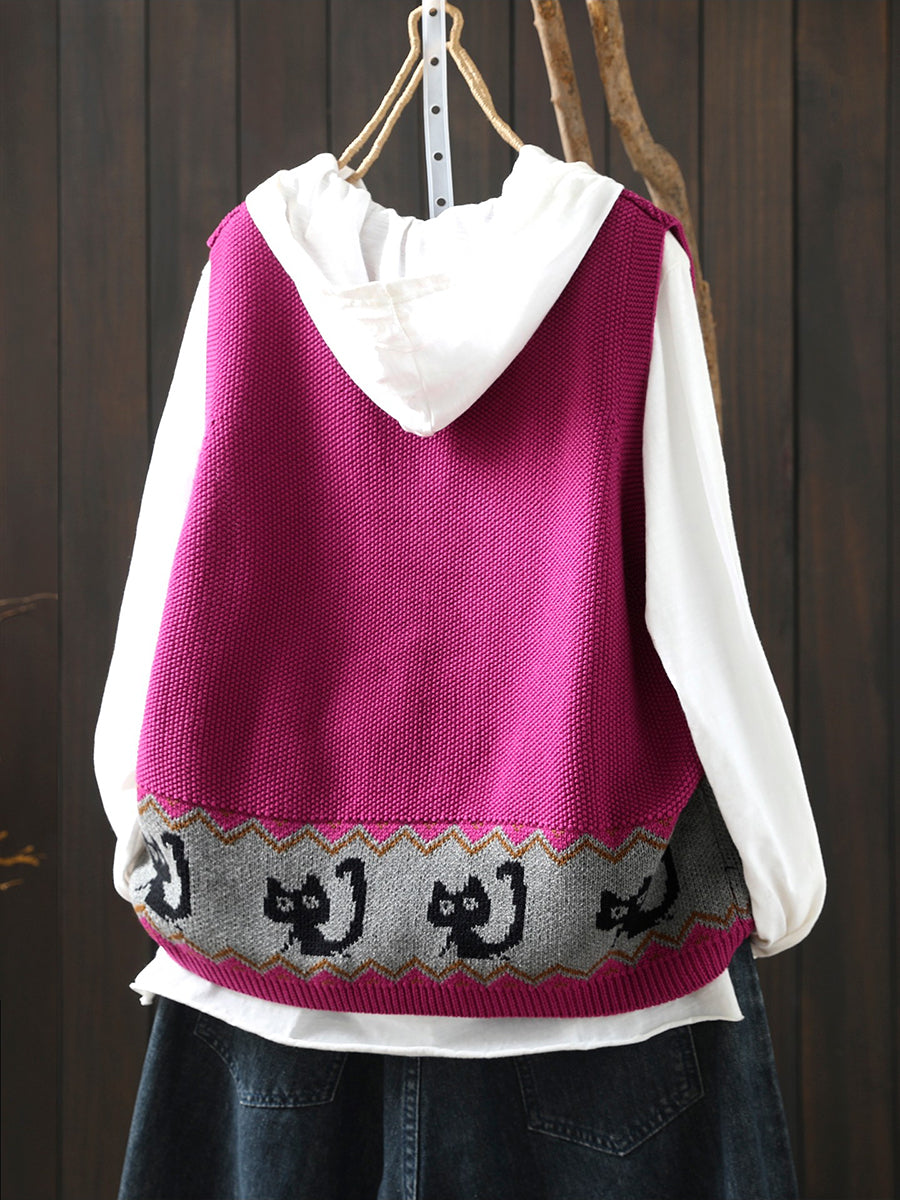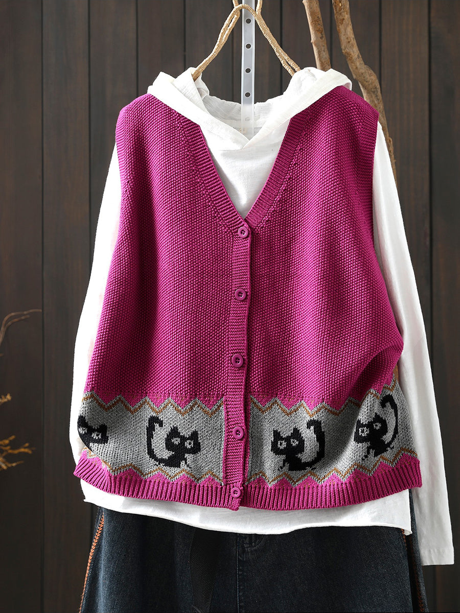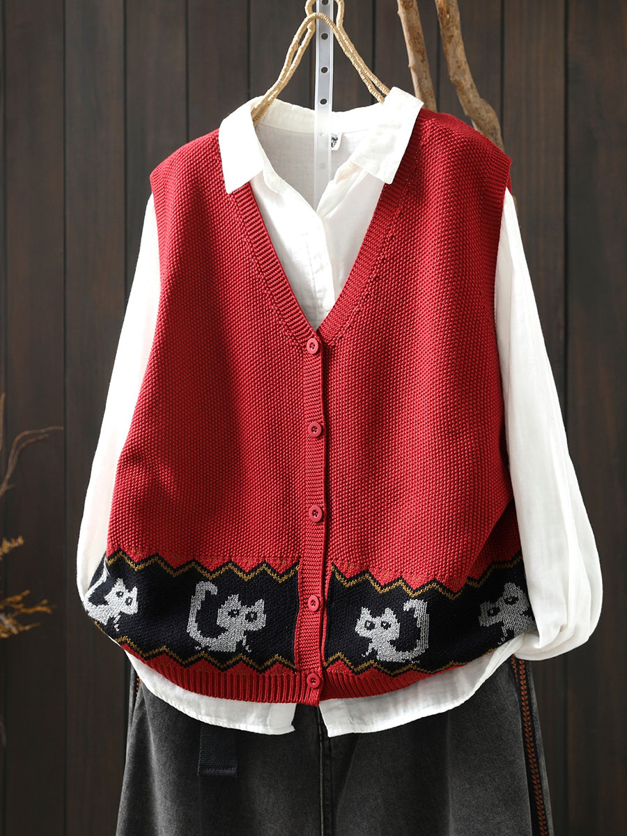 女士春季藝術貓針織V領背心