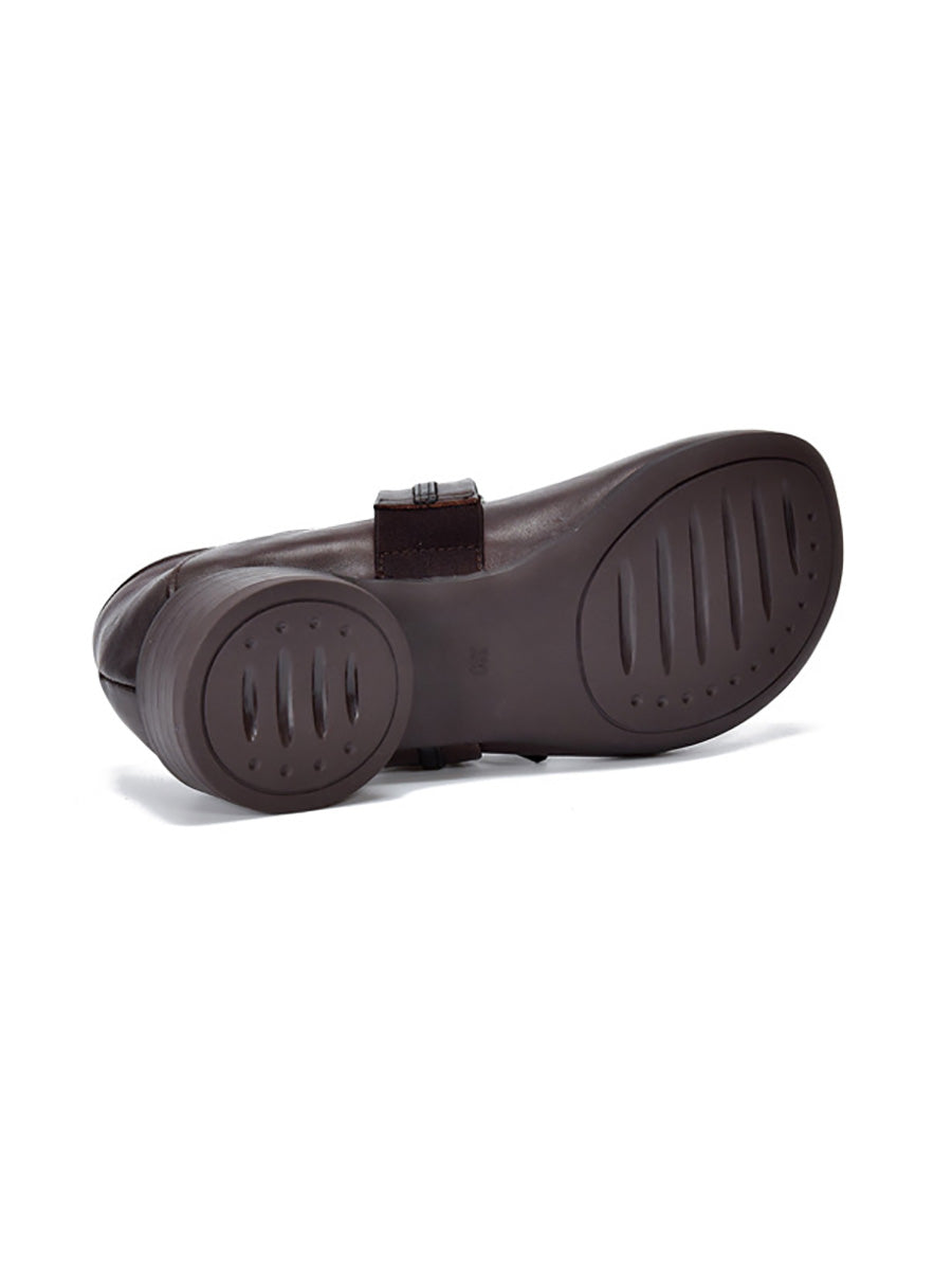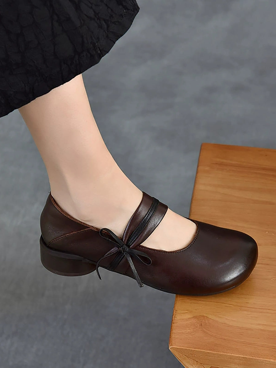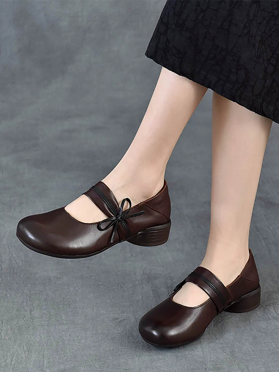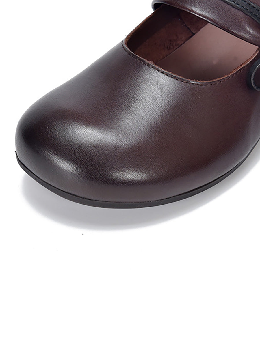 女士復古真皮中跟鞋