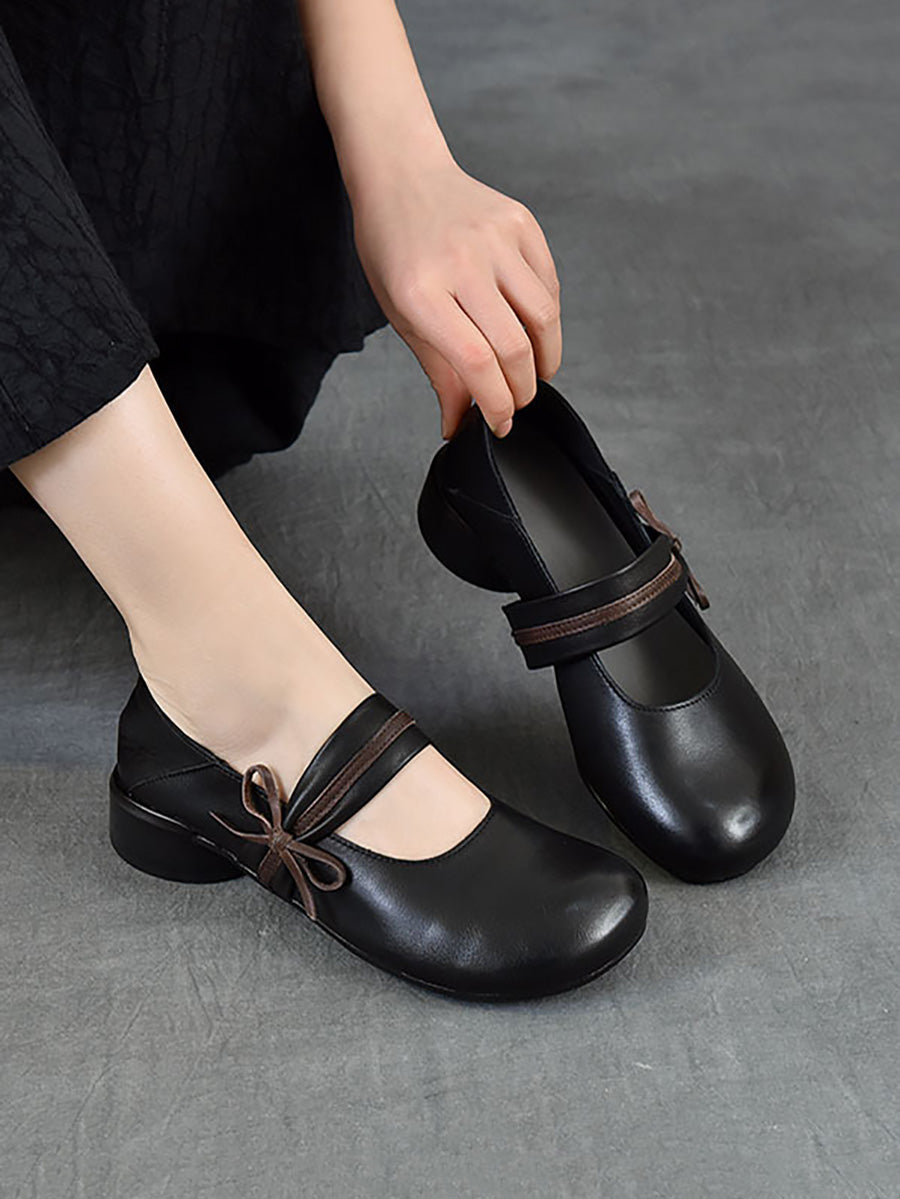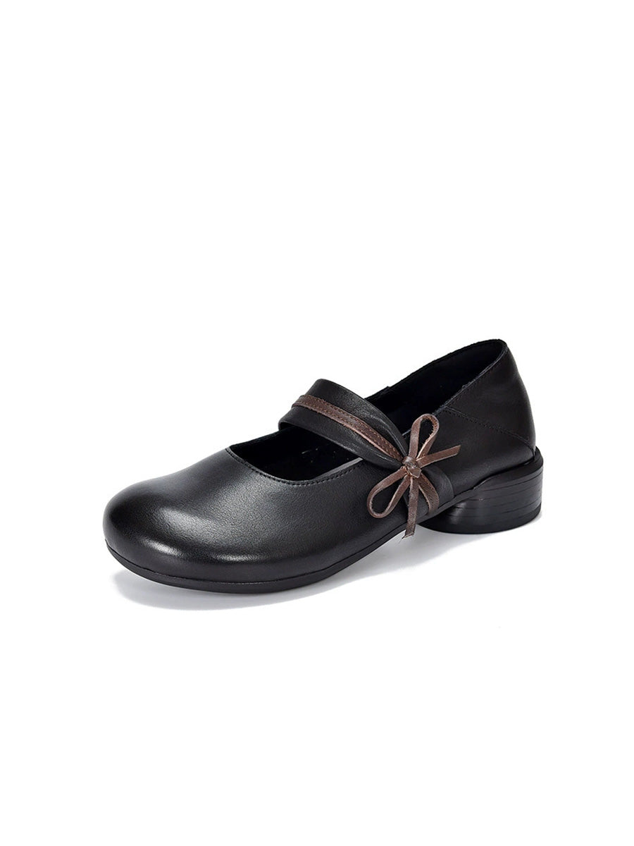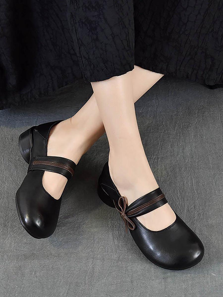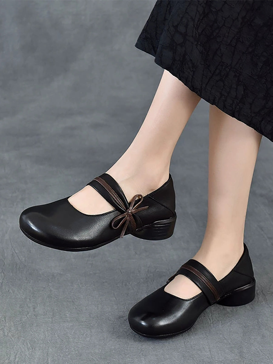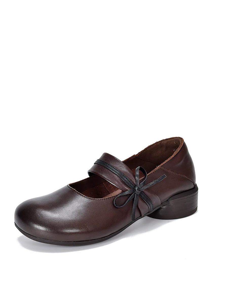 女士復古真皮中跟鞋