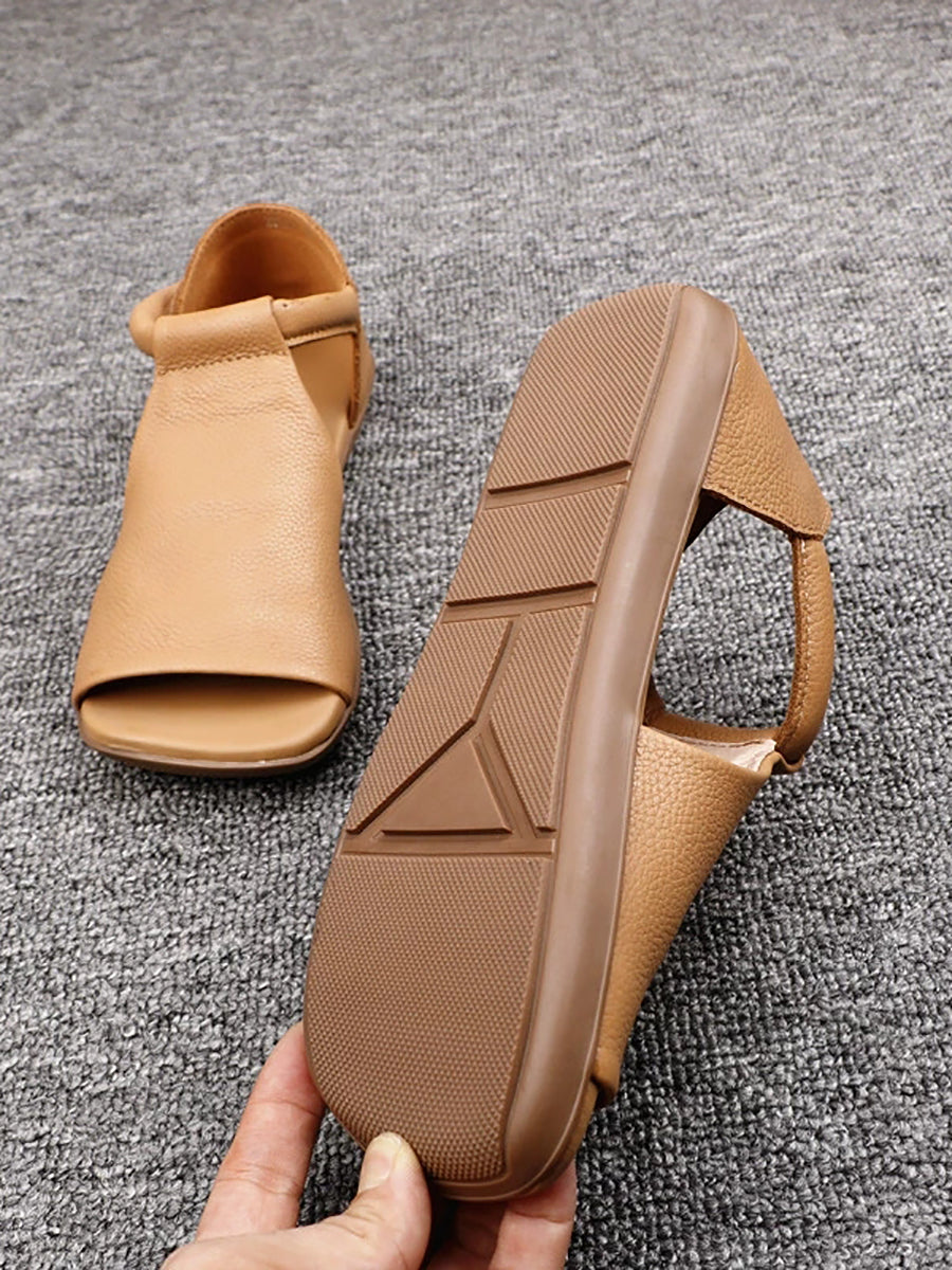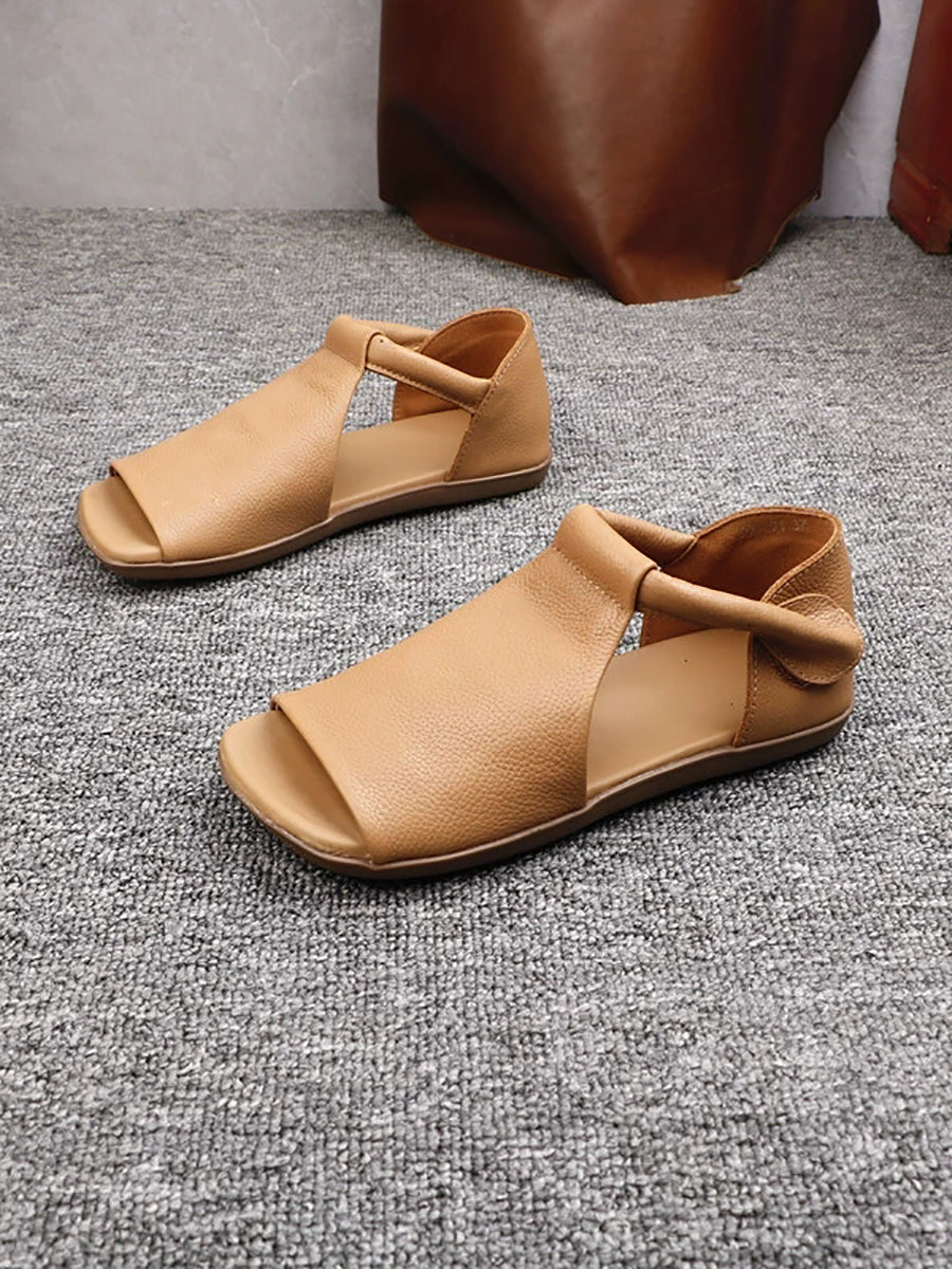 女士夏季休閒真皮平底拖鞋