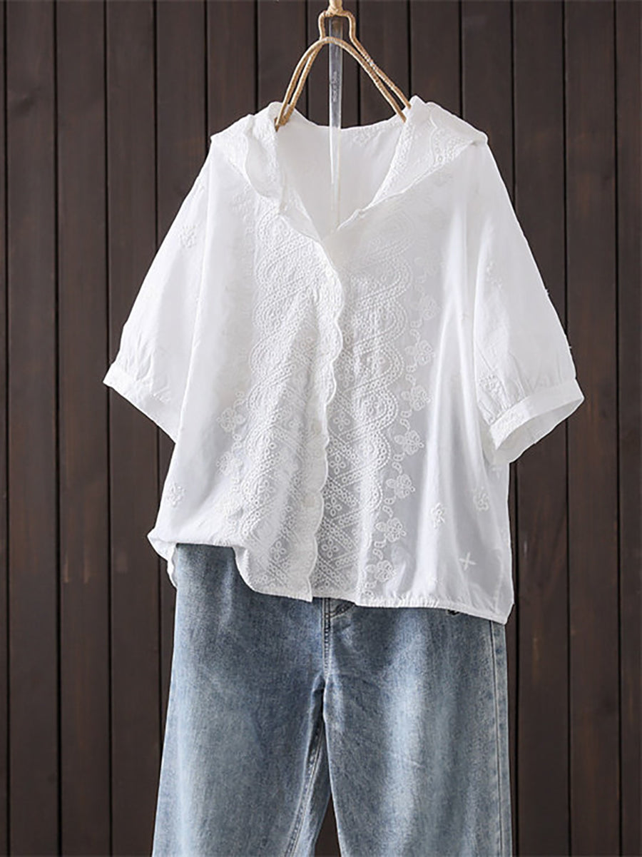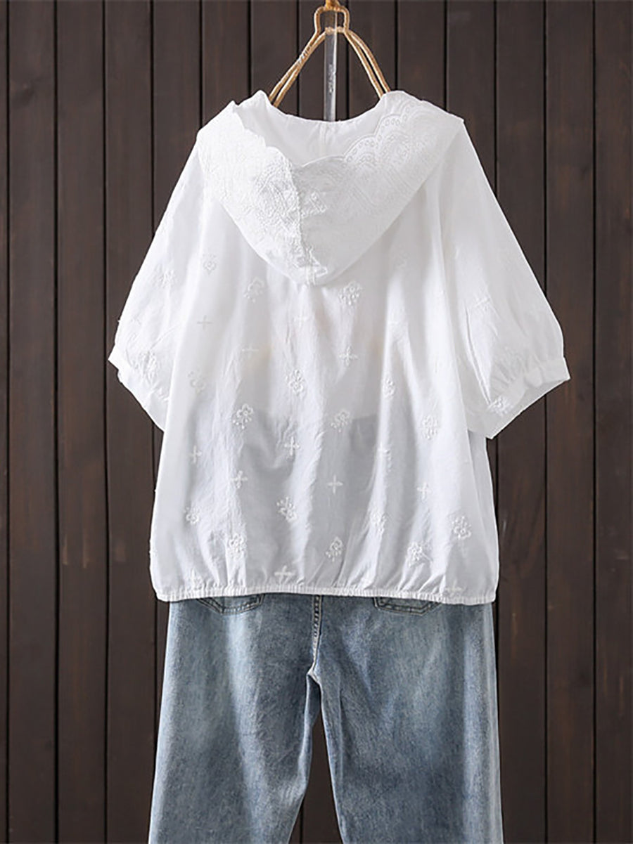 女士夏季藝術刺繡100%純棉連帽衫
