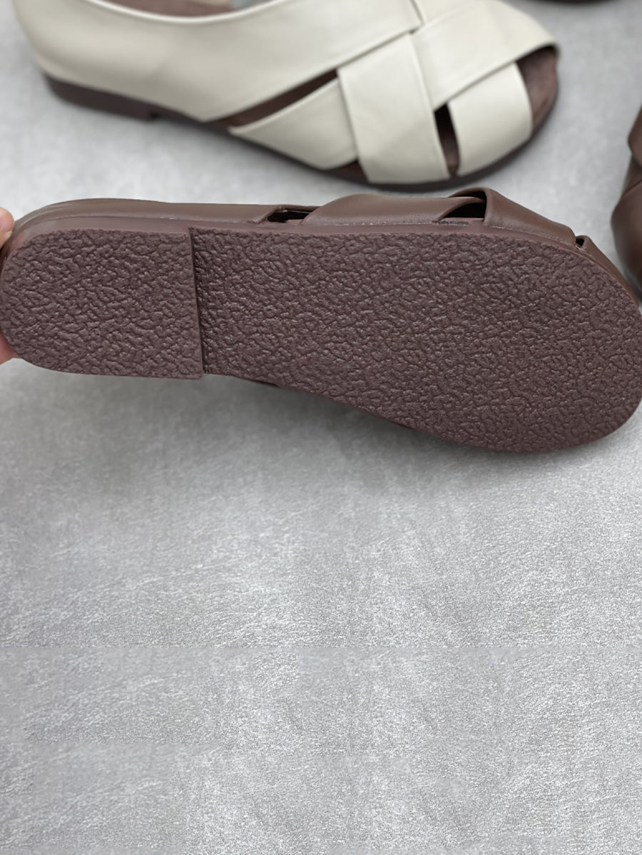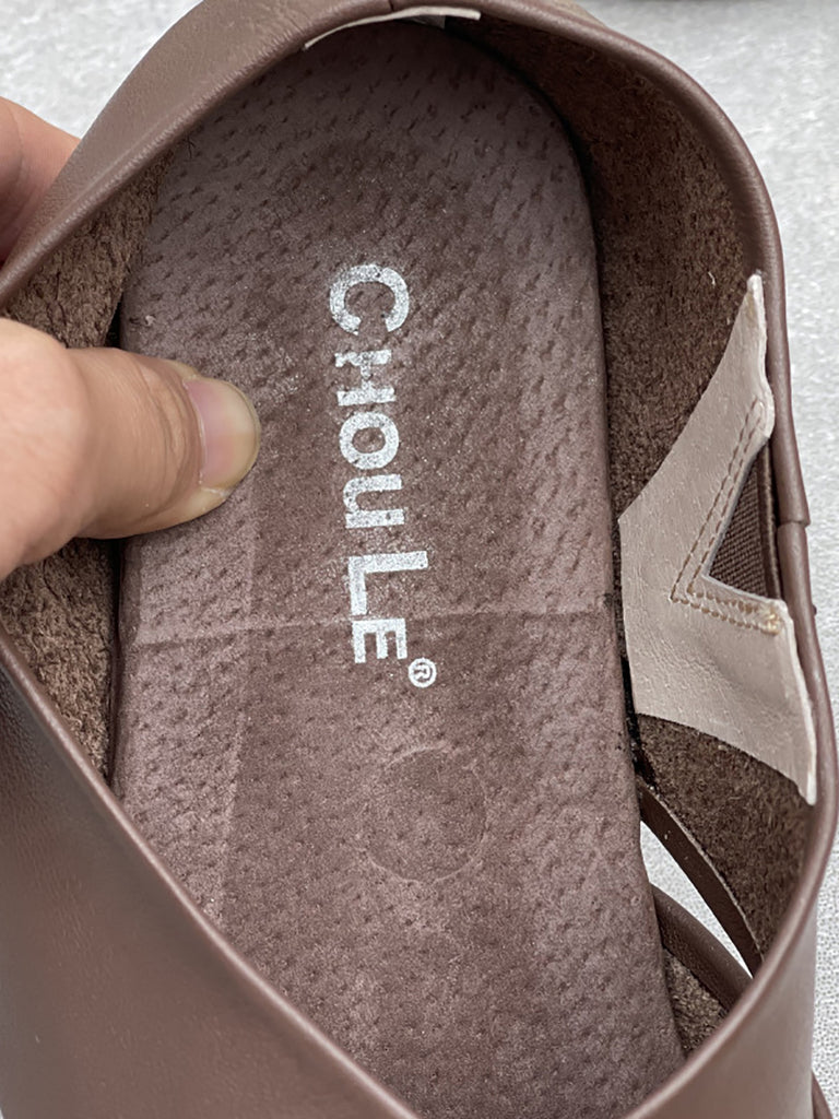 女士復古真皮拼接低跟鞋
