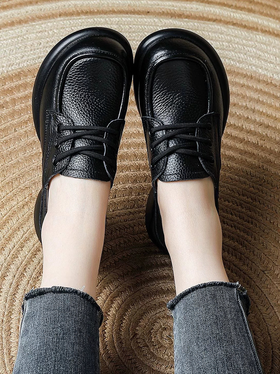女士復古真皮中跟鞋