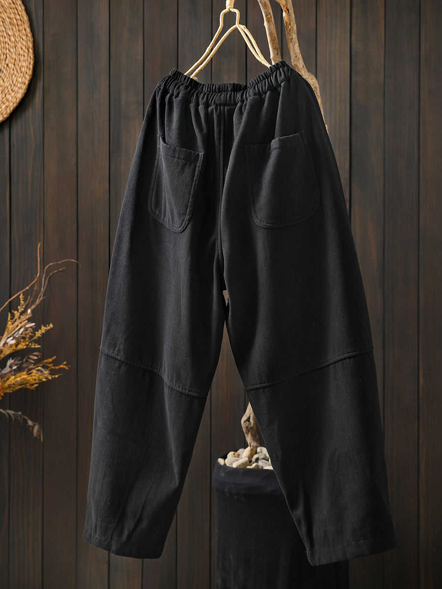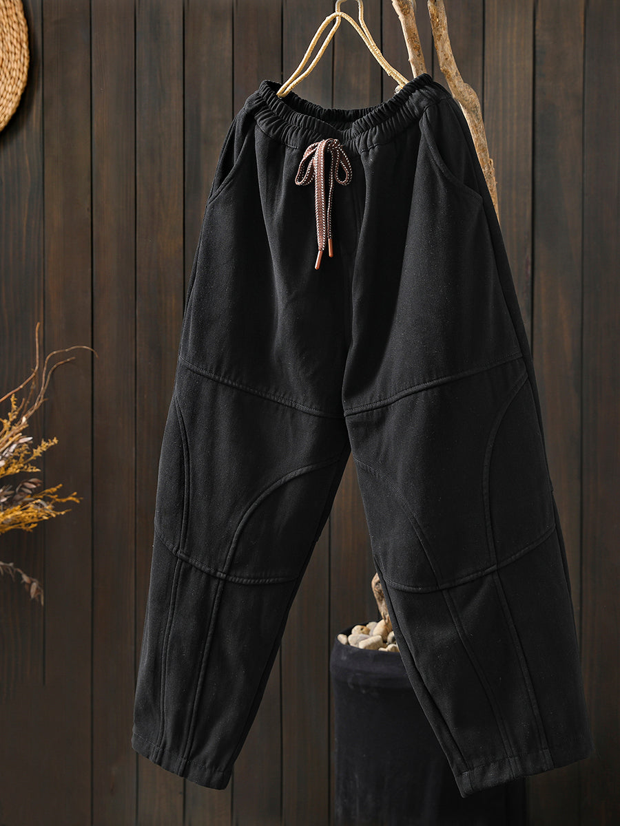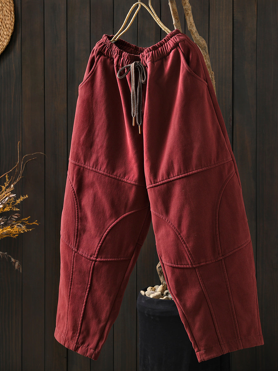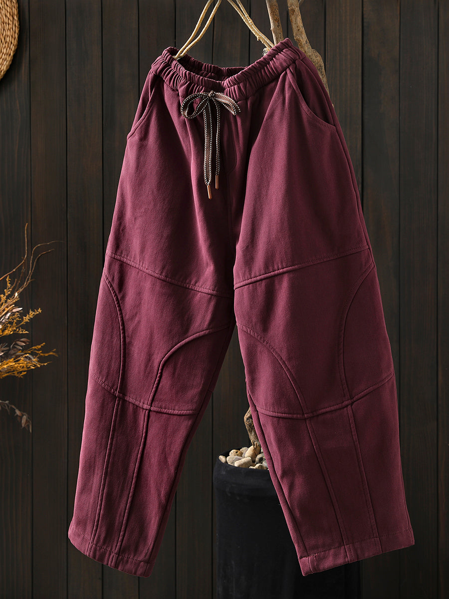 女士冬季復古純色加絨哈倫褲