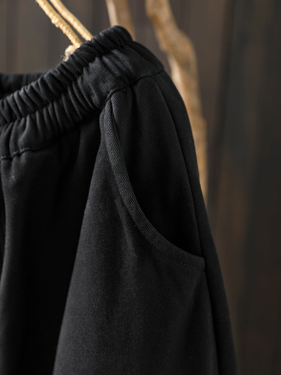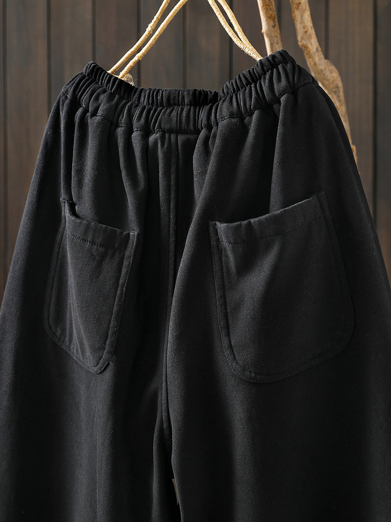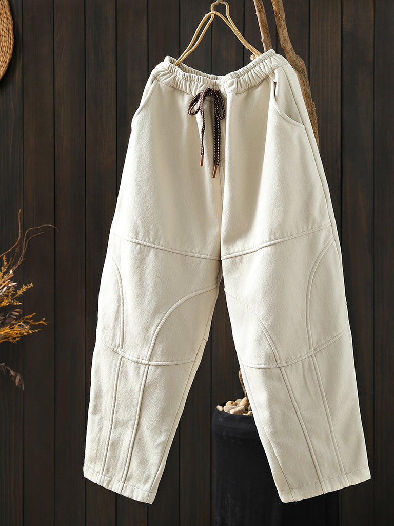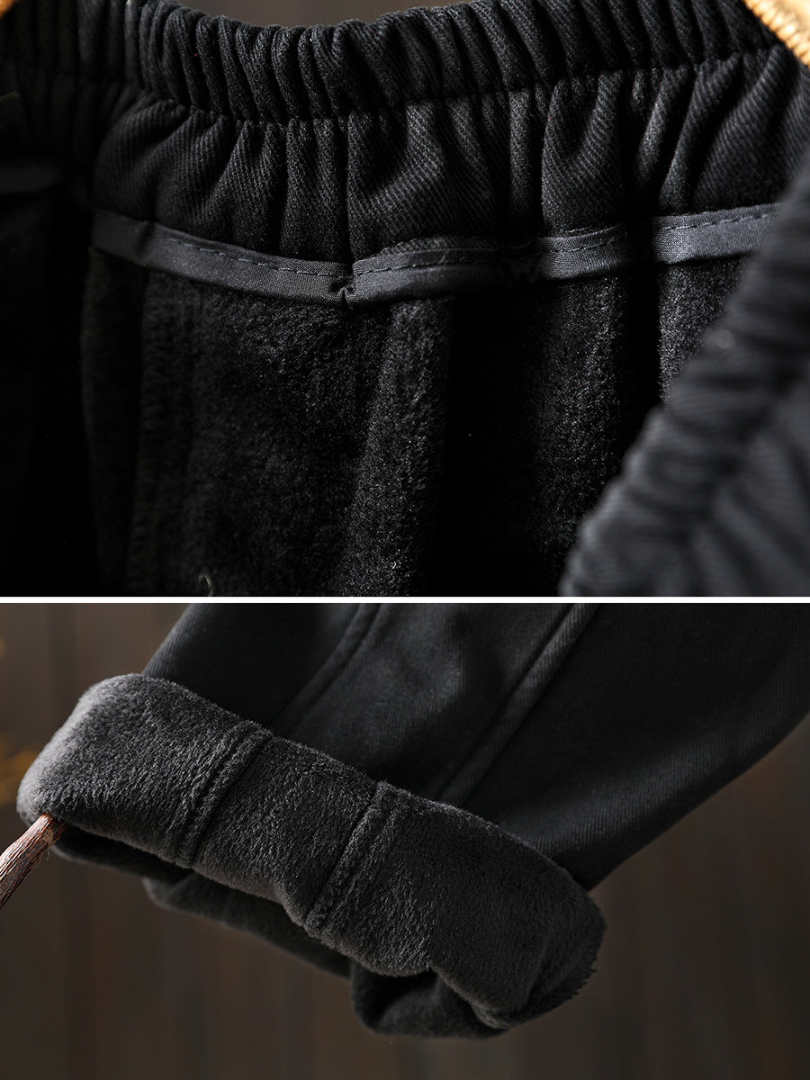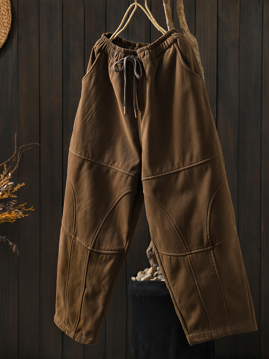 女士冬季復古純色加絨哈倫褲