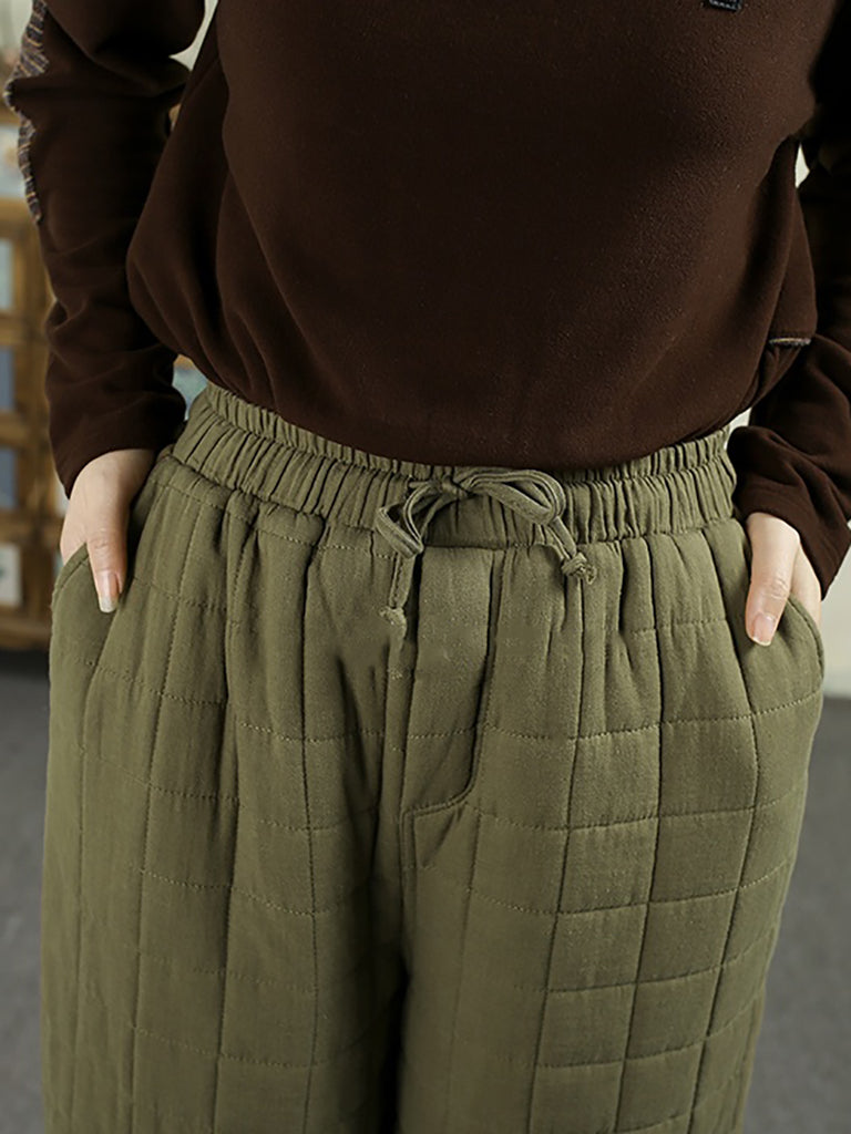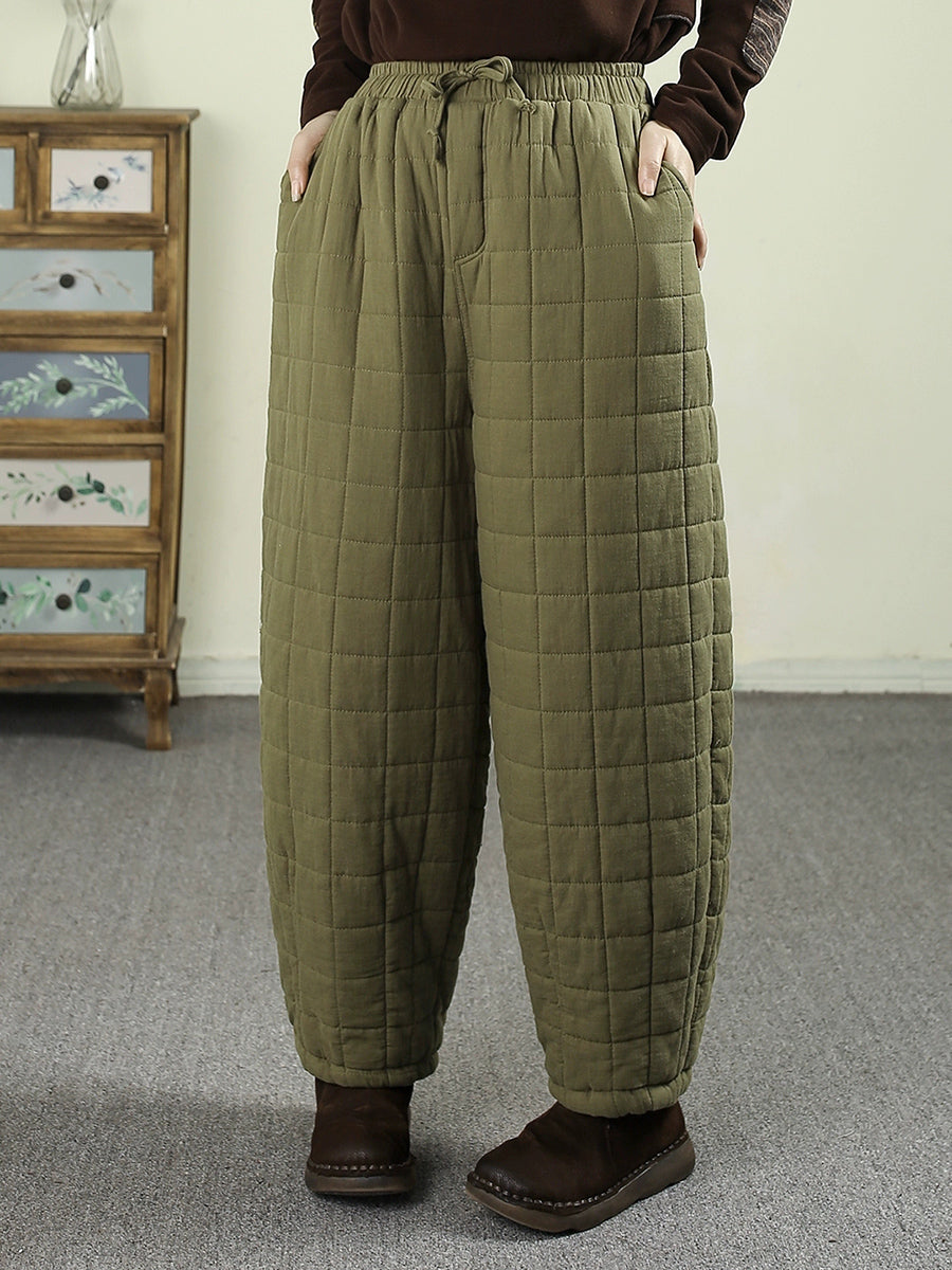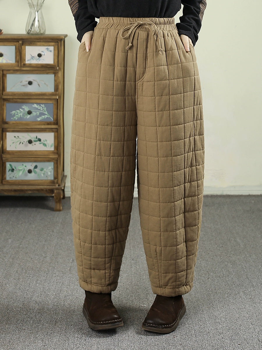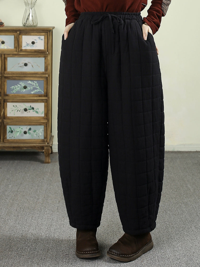 女士冬季復古純色絎縫哈倫褲