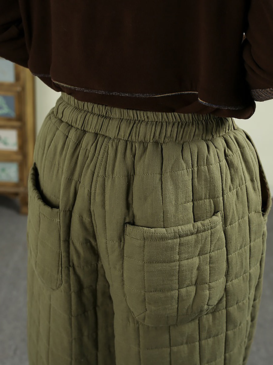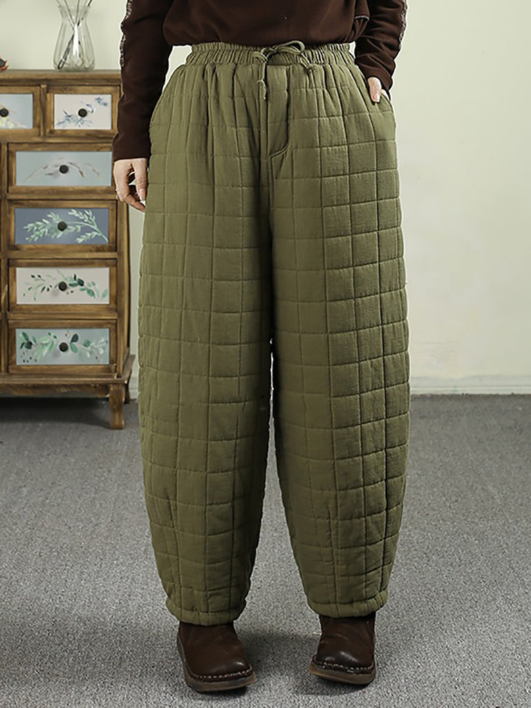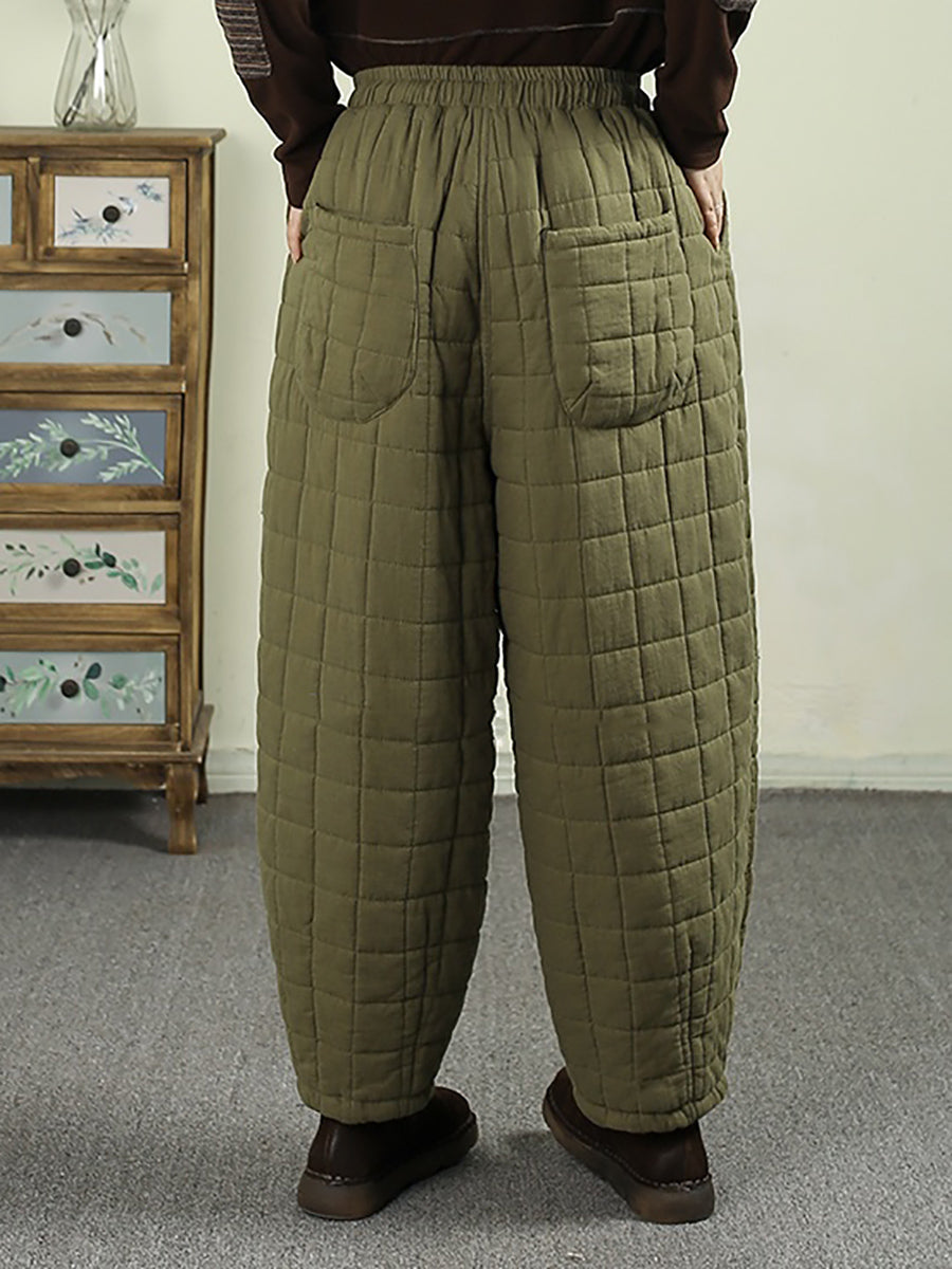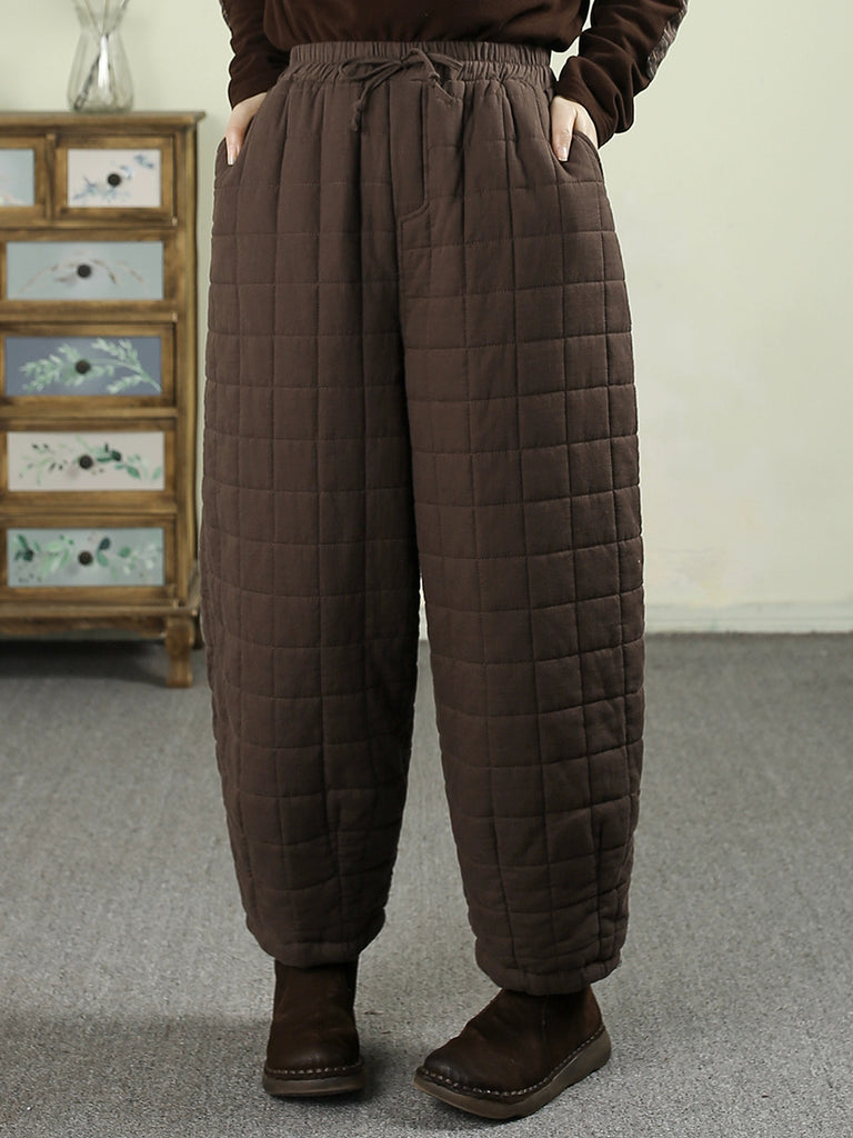 女士冬季復古純色絎縫哈倫褲