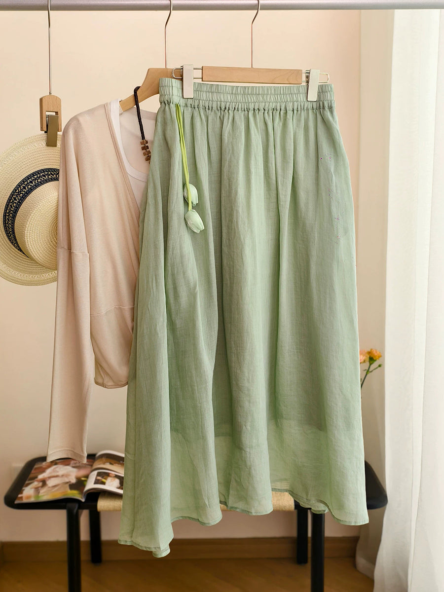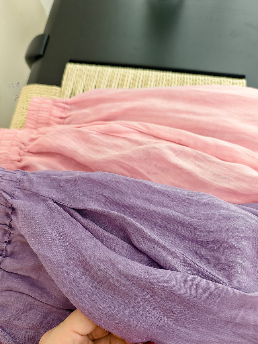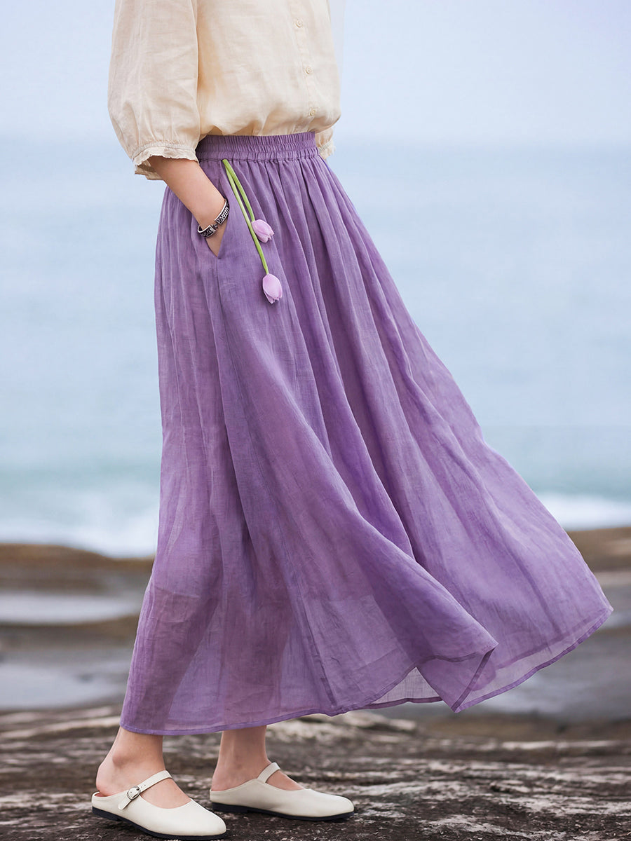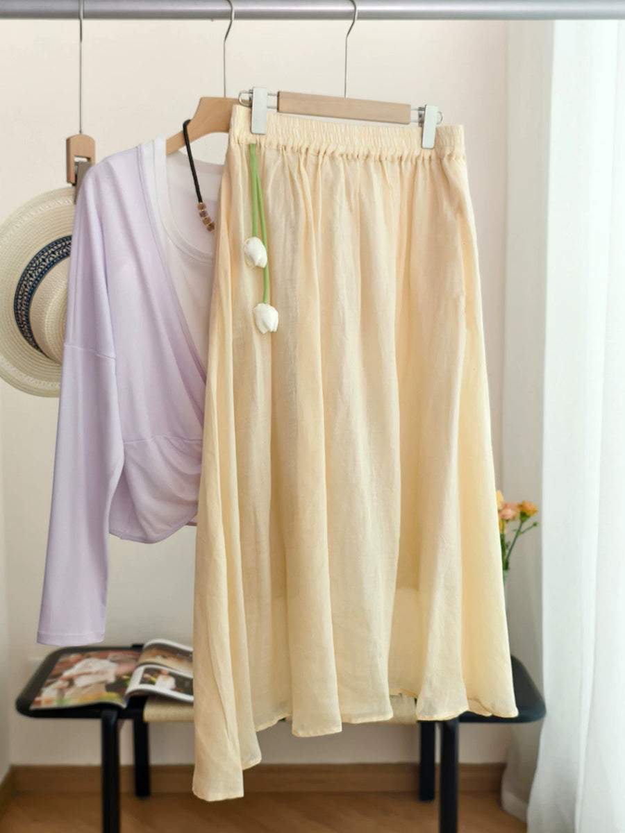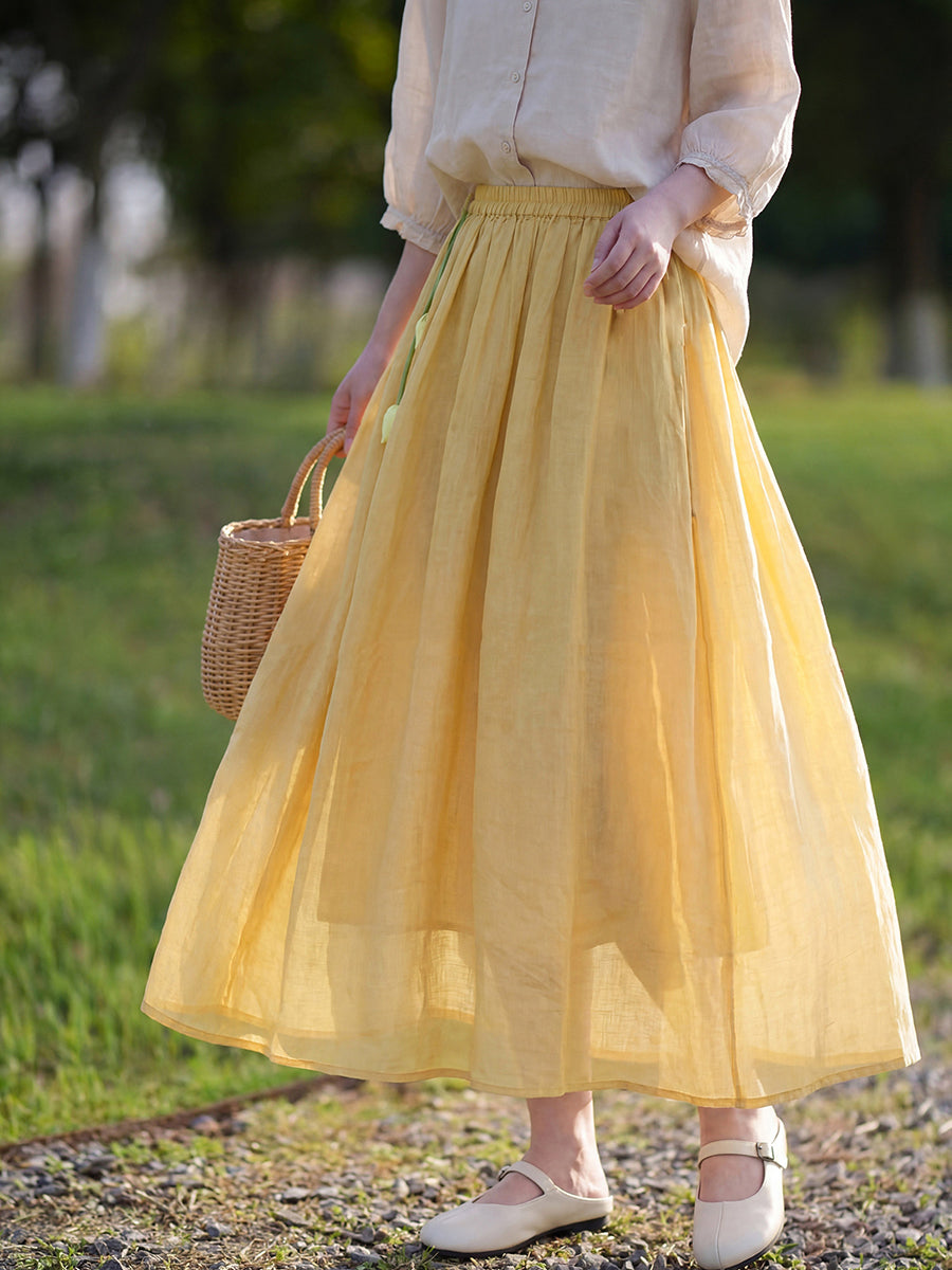 女士夏季藝術純色100%苧麻半身裙