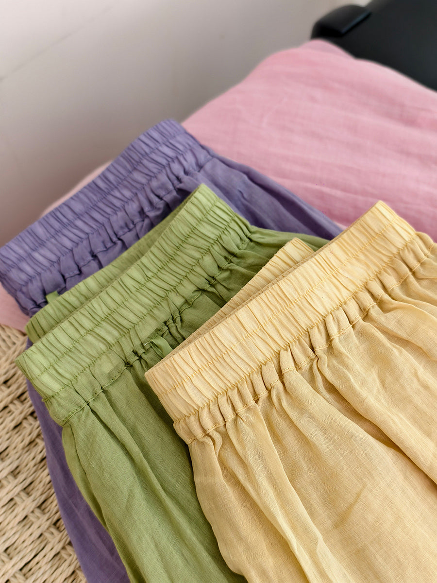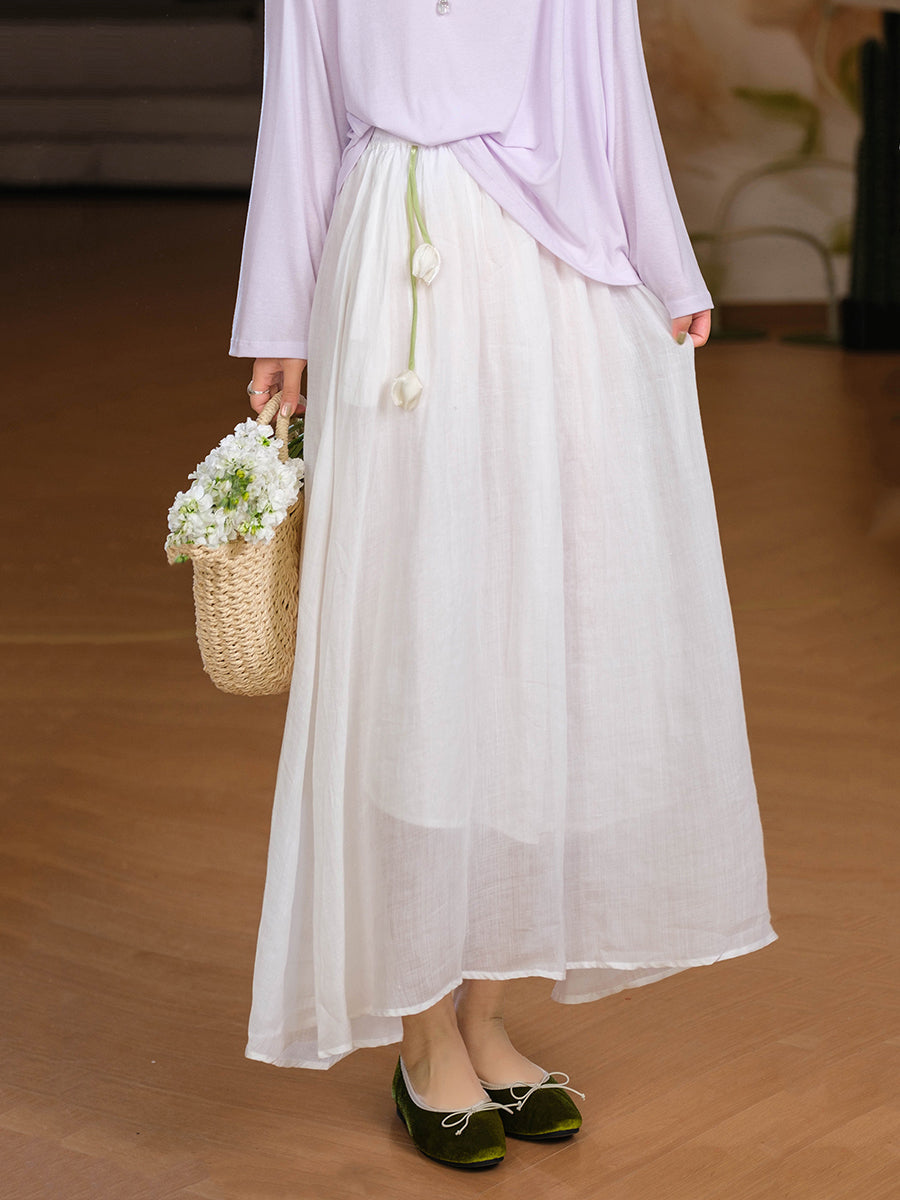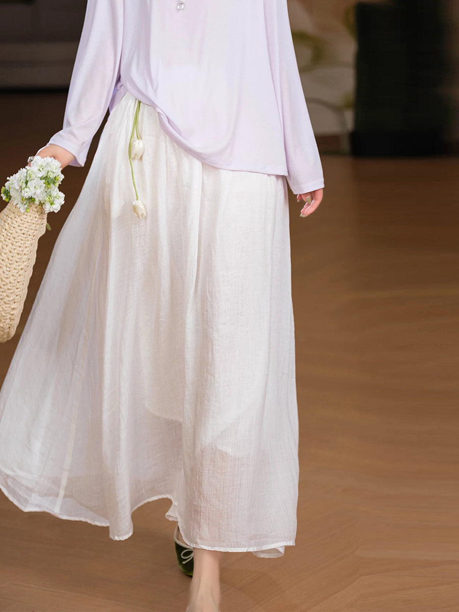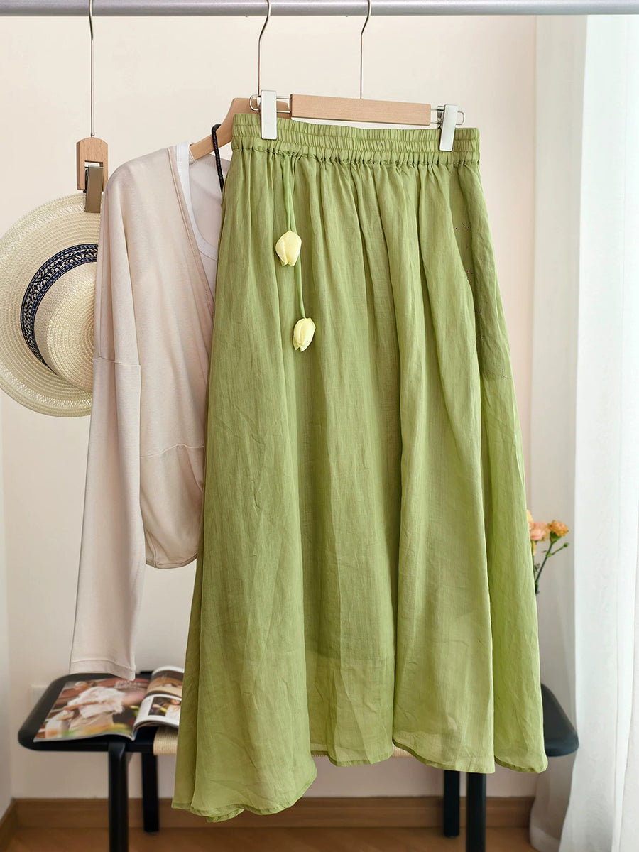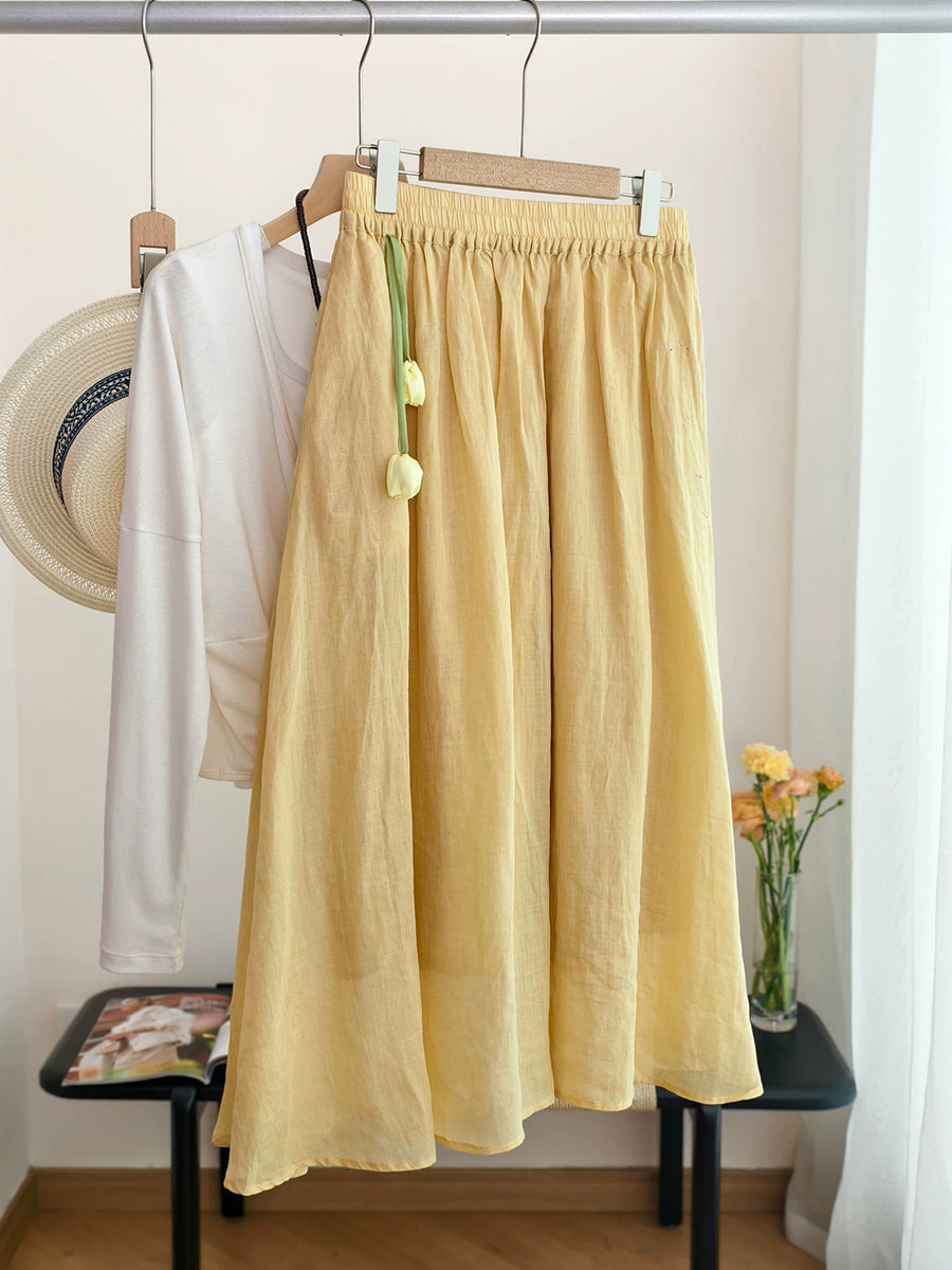 女士夏季藝術純色100%苧麻半身裙