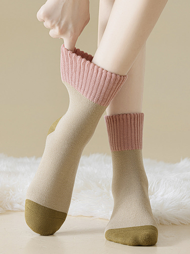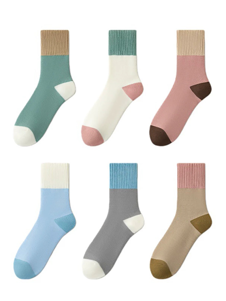 6雙裝女士藝術撞色厚襪子