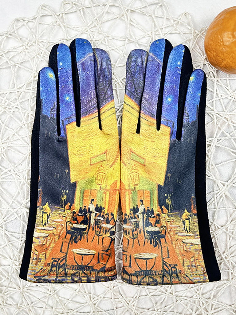 女款時尚印花保暖戶外手套