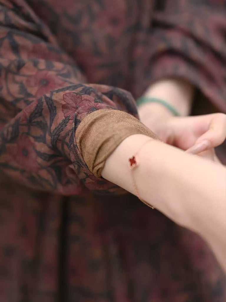 這款女式連身裙採用棉布製成,帶有迷人的花朵圖案,擁有復古風格,具有 V 領和常規腕長袖。其及踝長的設計使其非常適合夏季和春季。