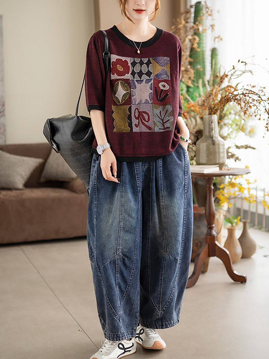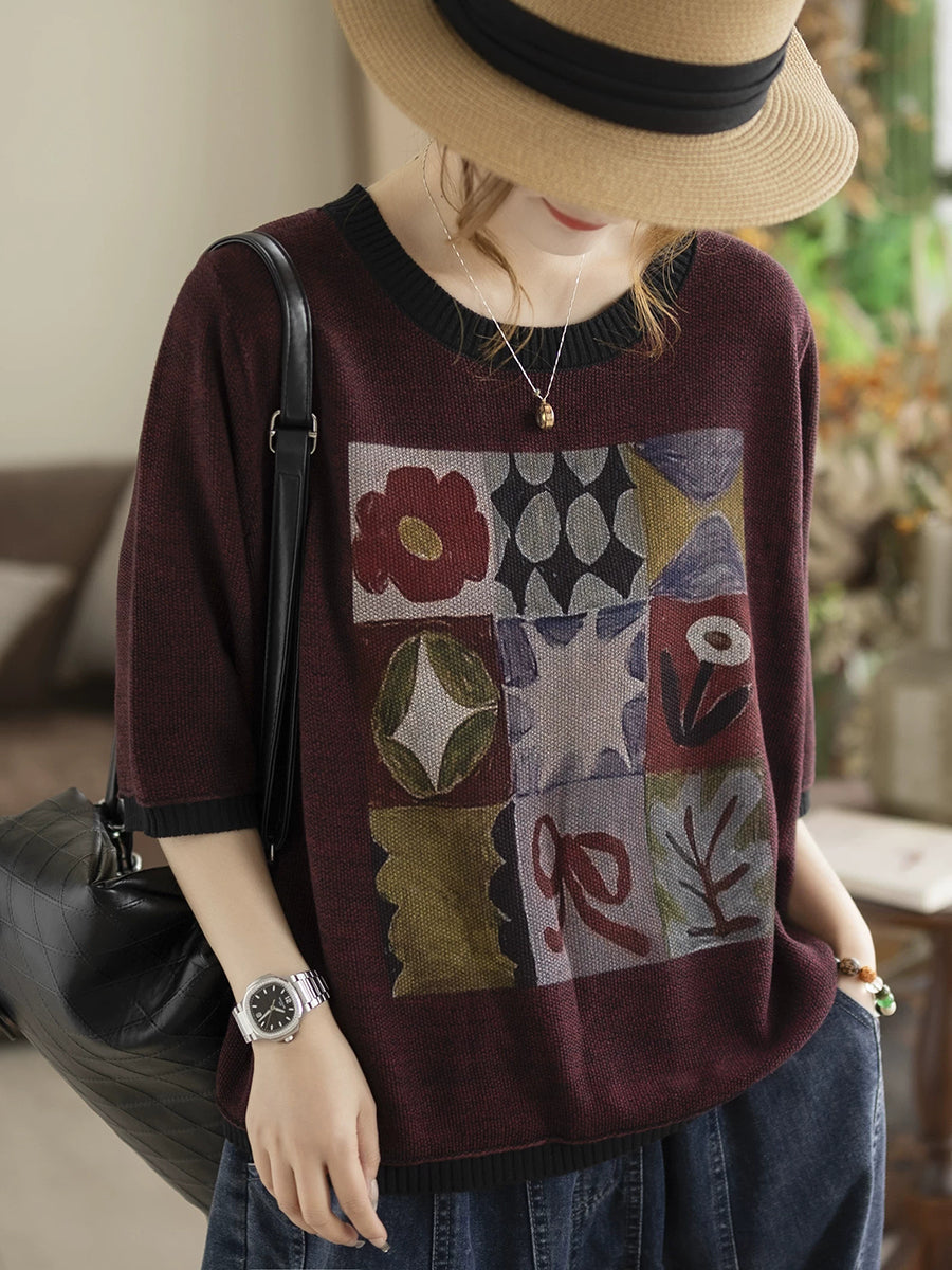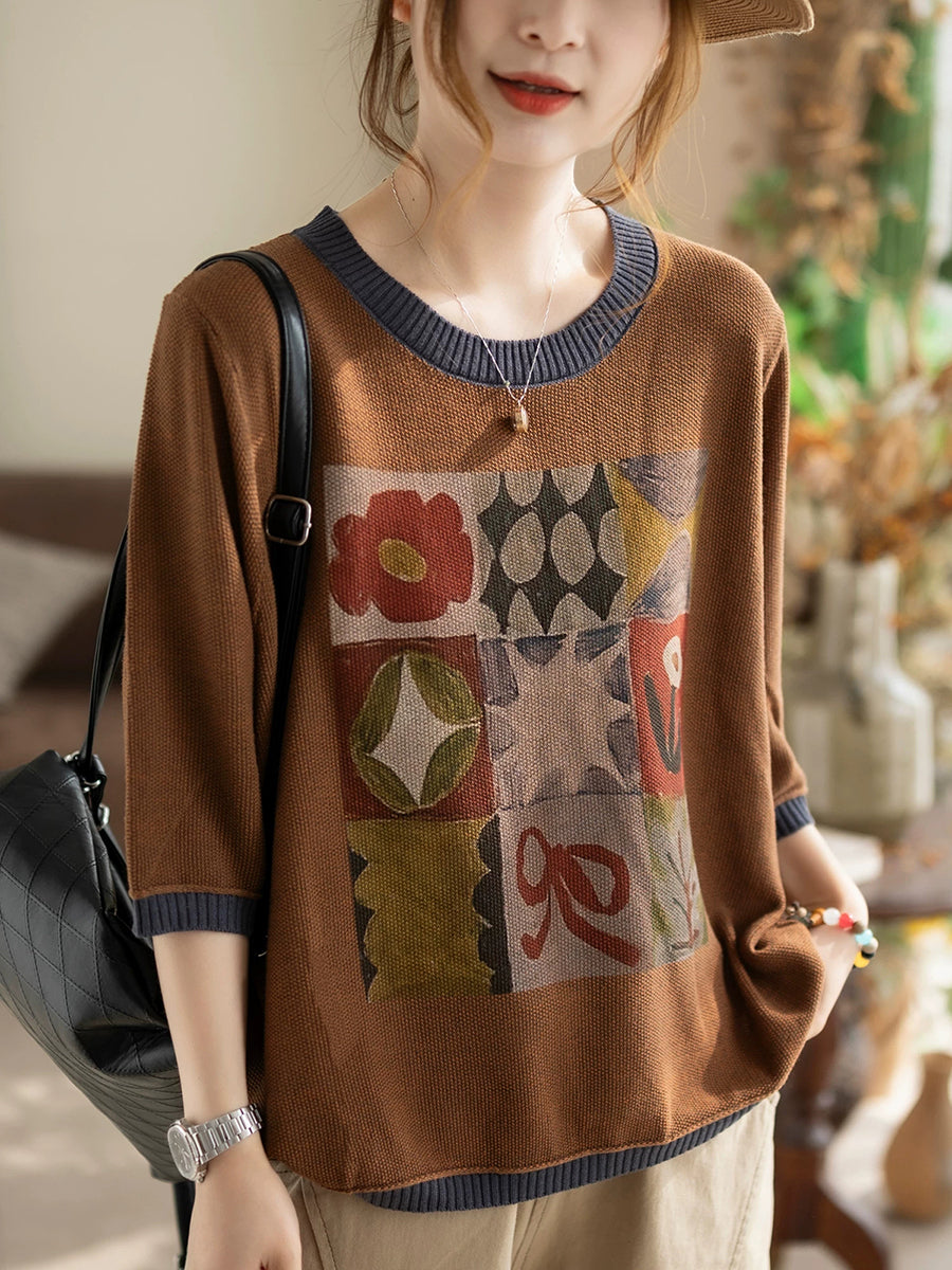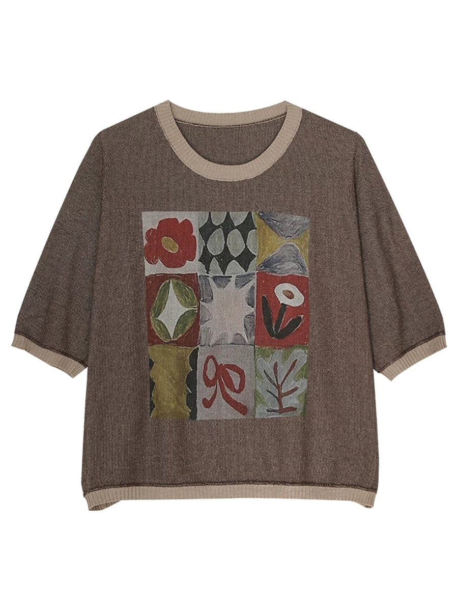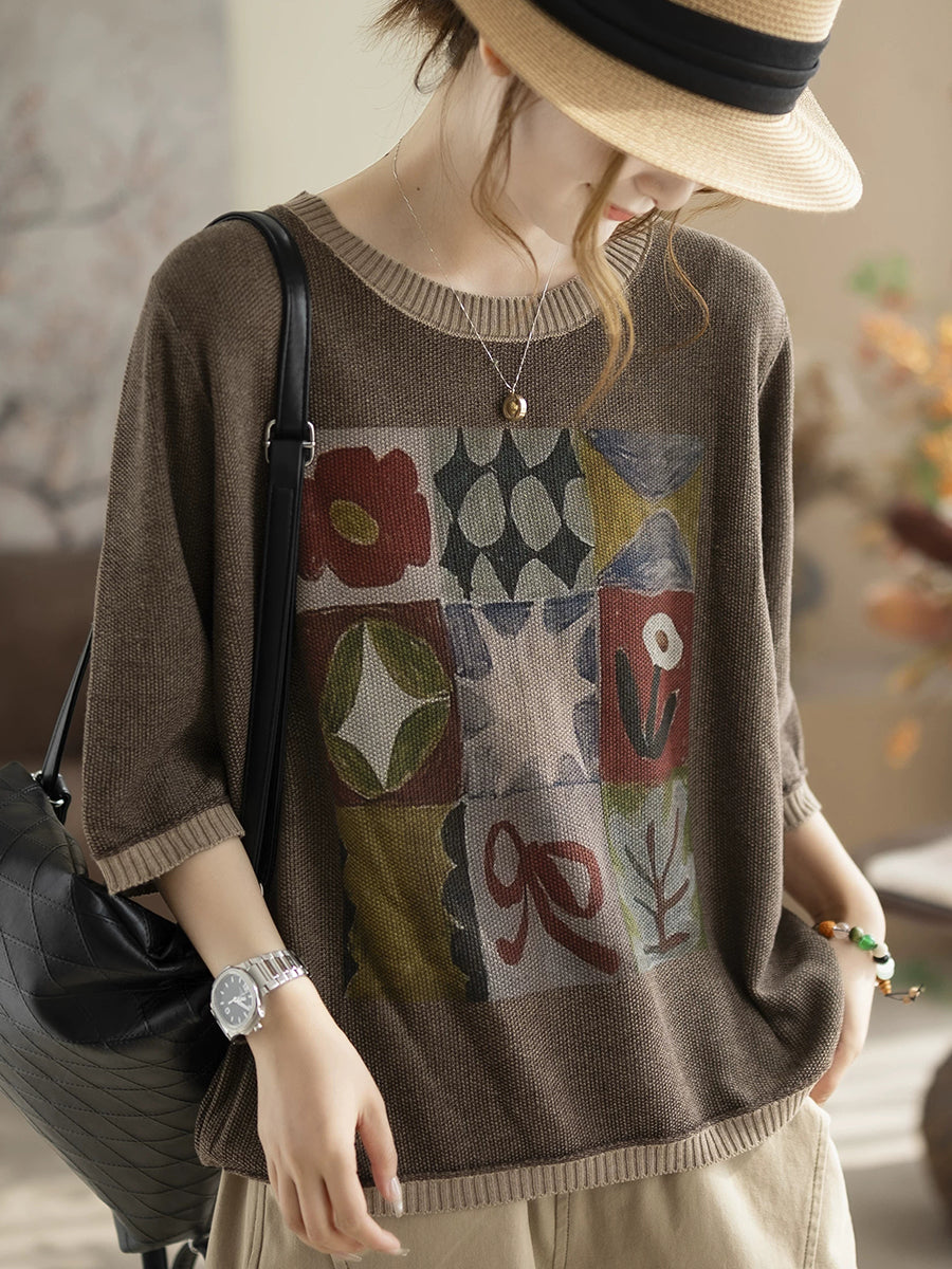 女士夏季藝術棉質圓領針織衫