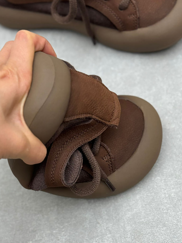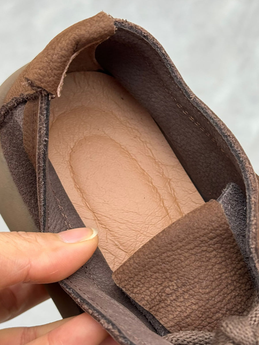 女士復古春季真皮繫帶平底鞋