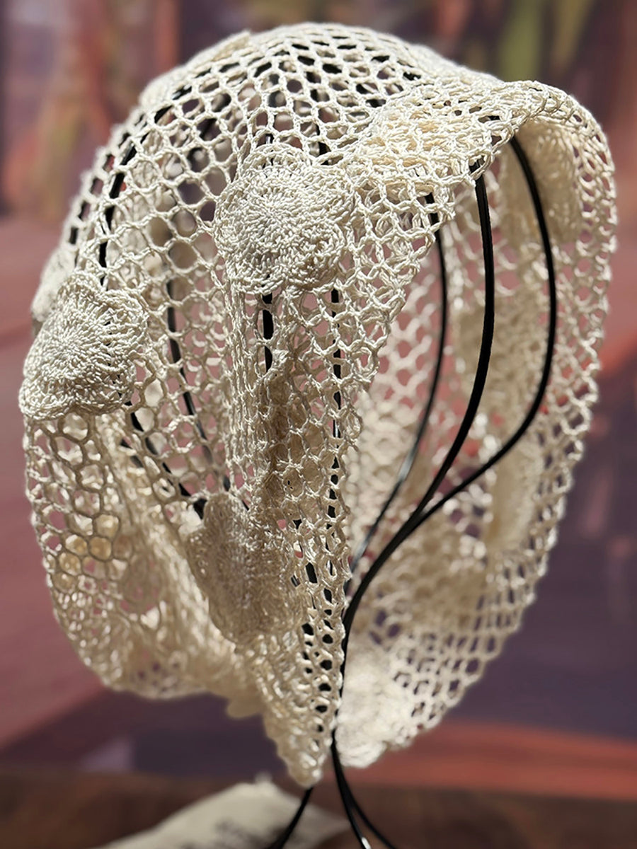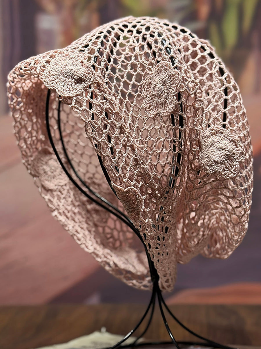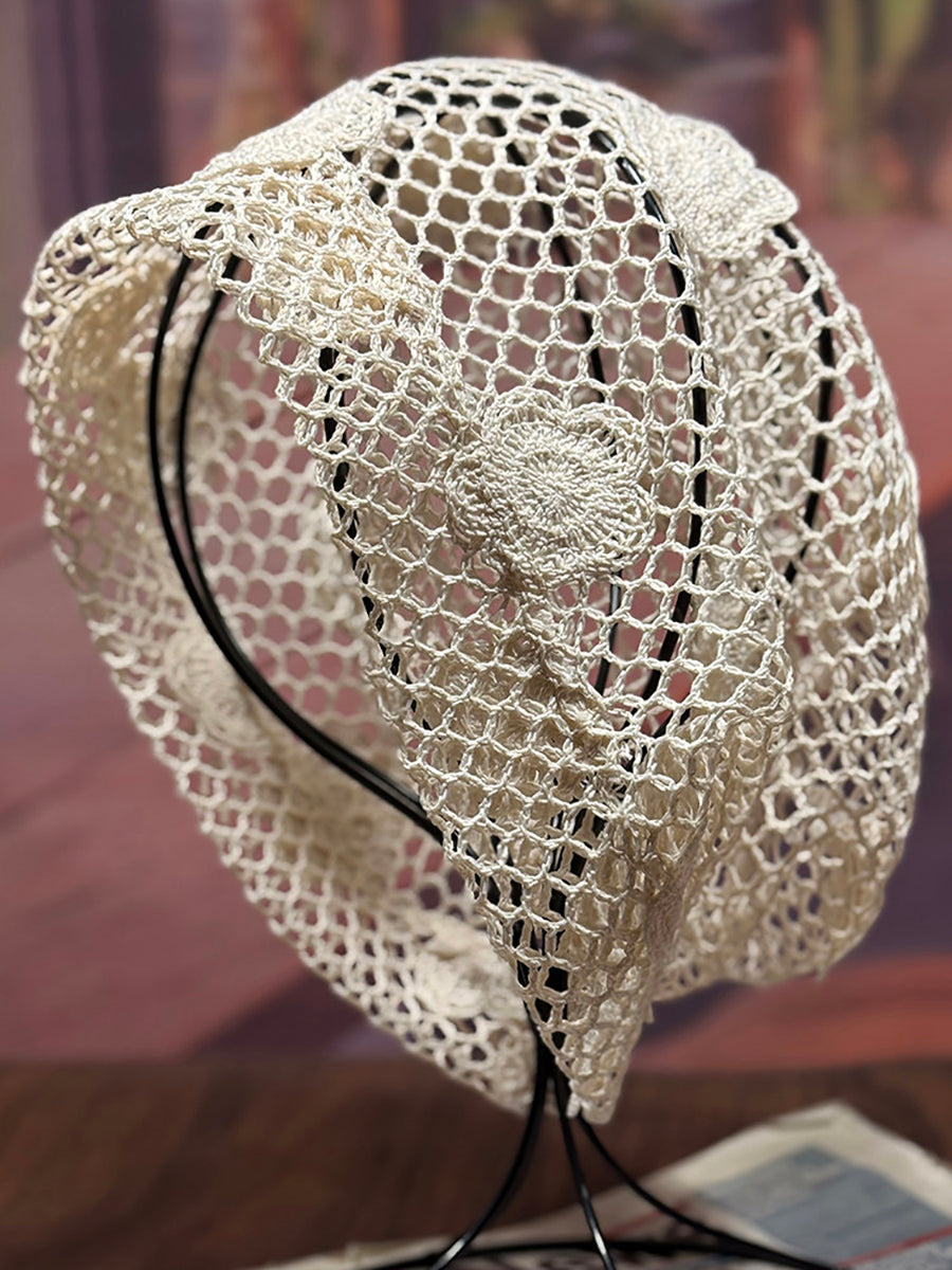 女士藝術風花朵針織寬鬆帽