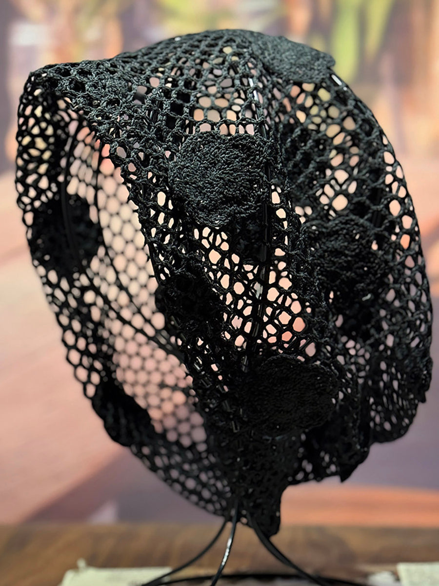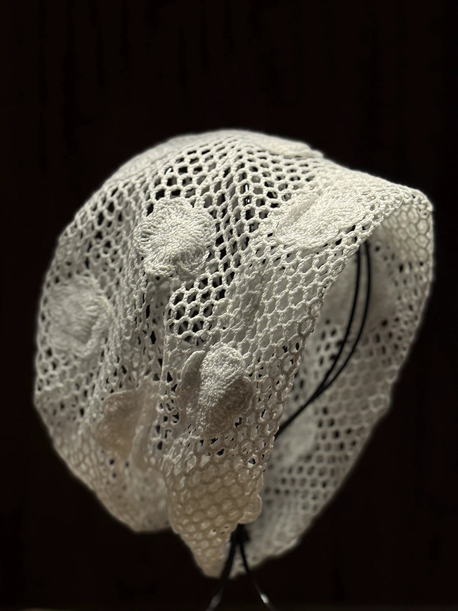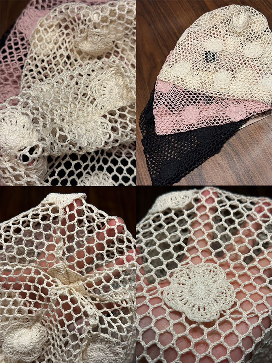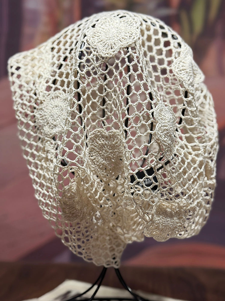 女士藝術風花朵針織寬鬆帽