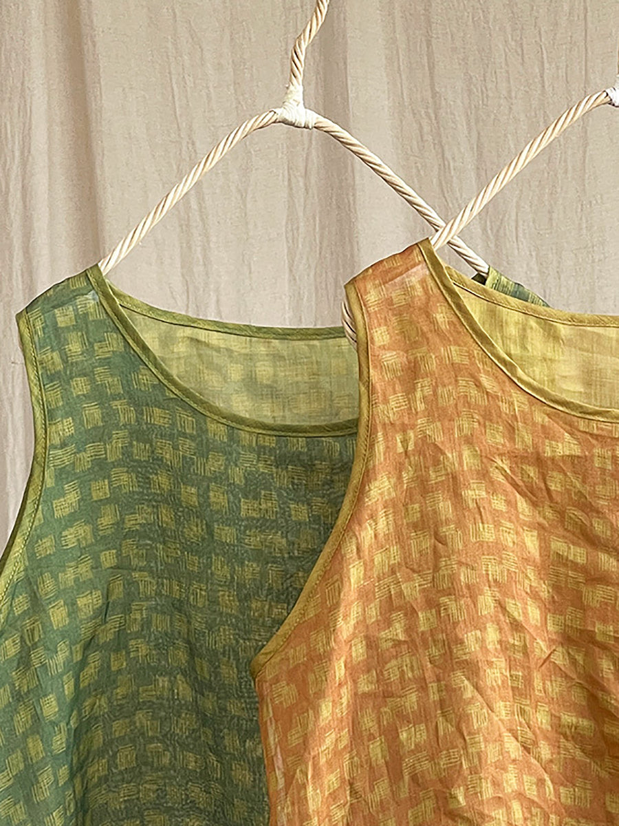 大尺碼女款夏季格紋藝術薄苧麻背心