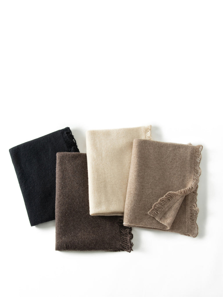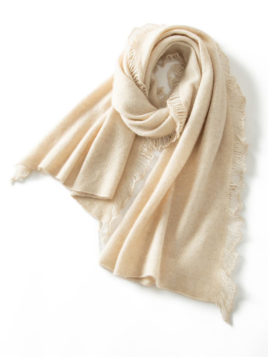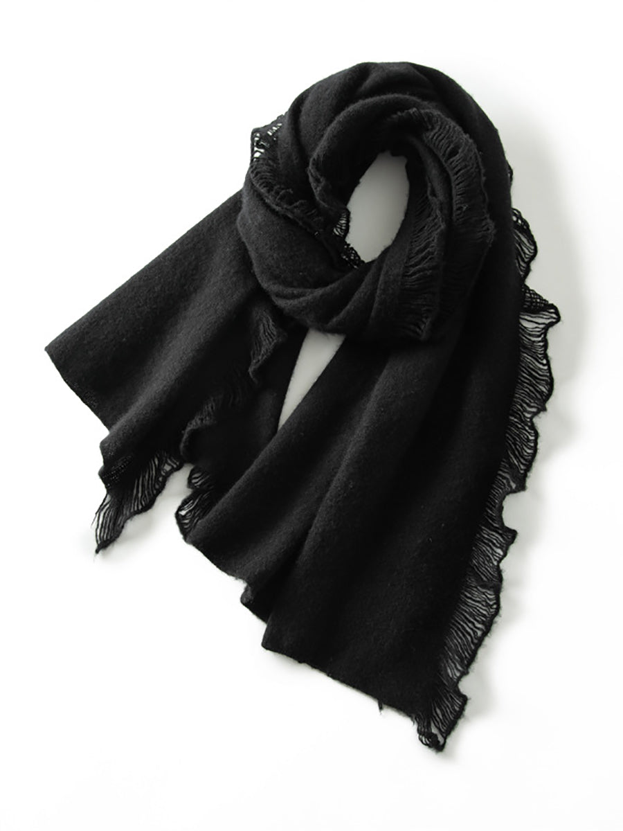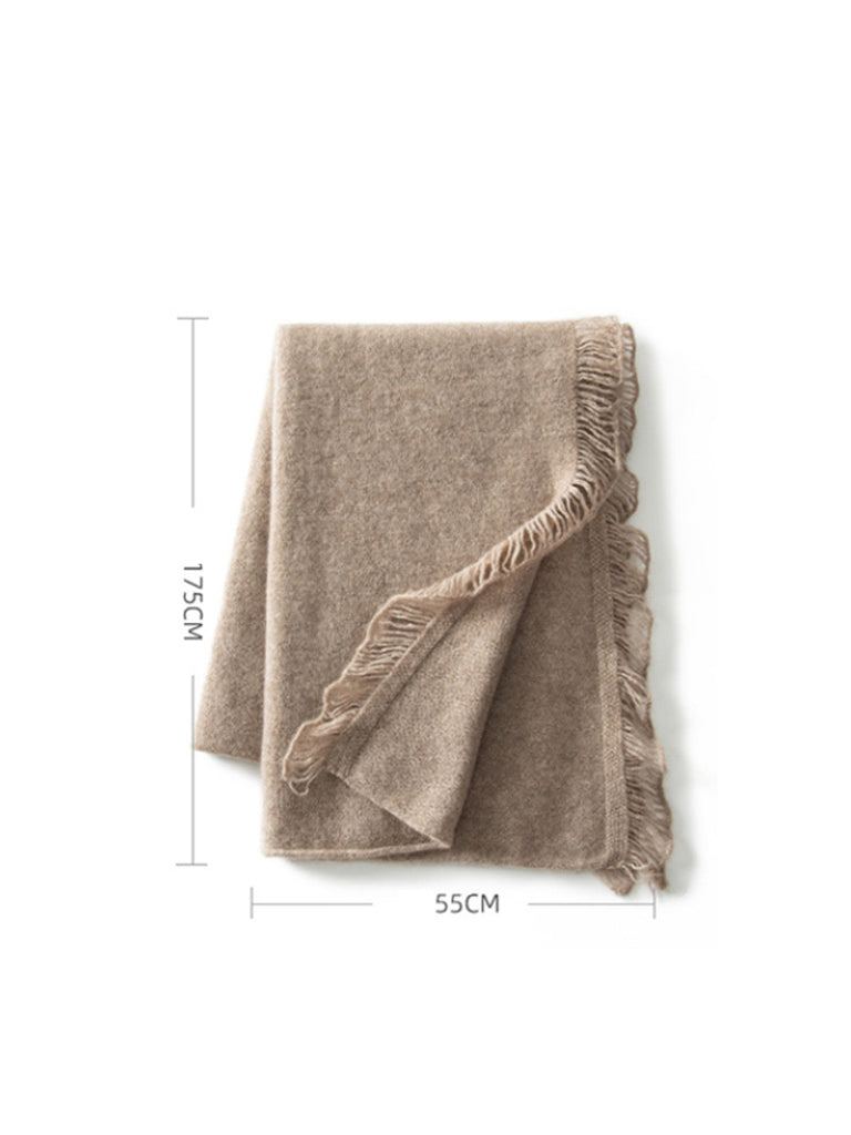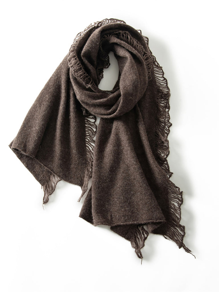 女復古保暖羊絨純色流蘇圍巾