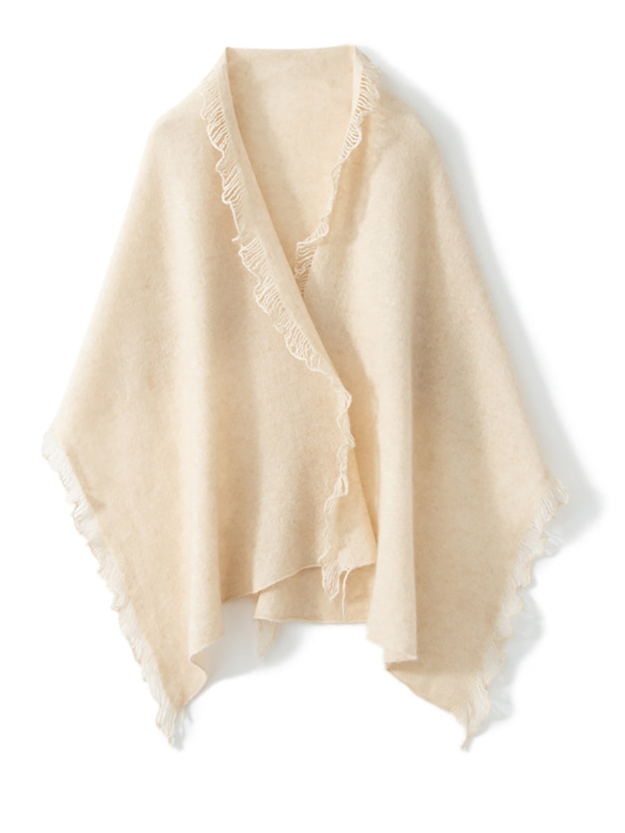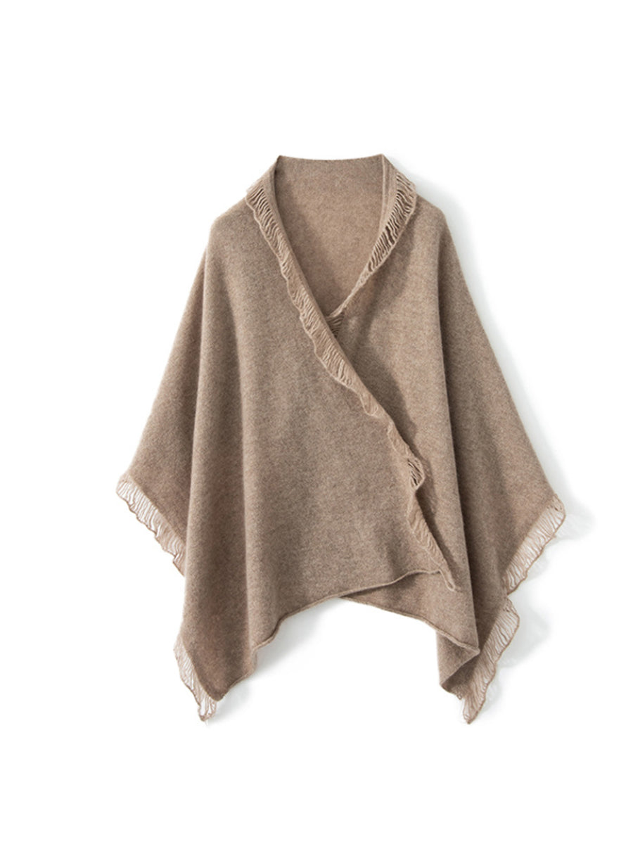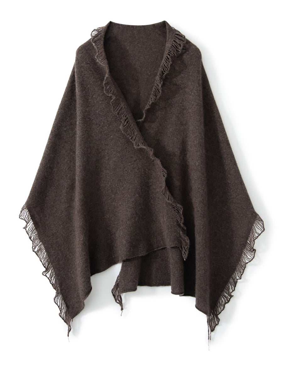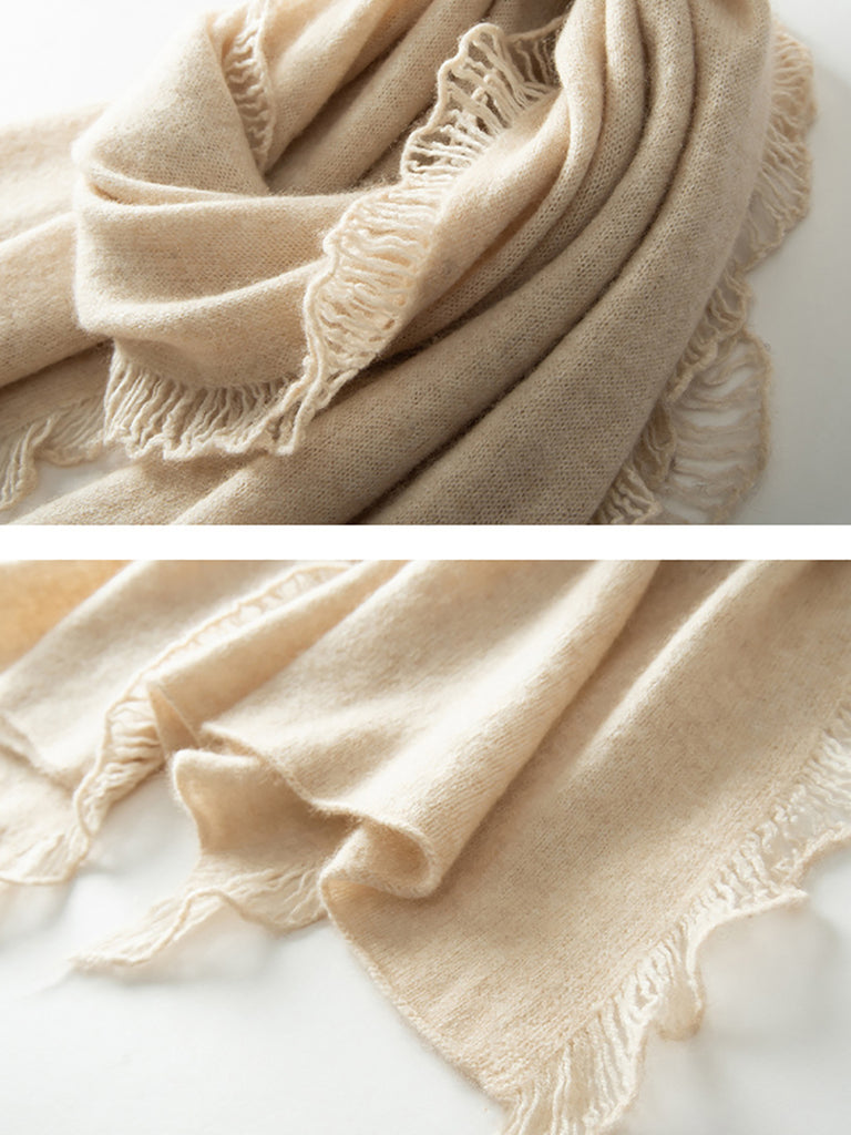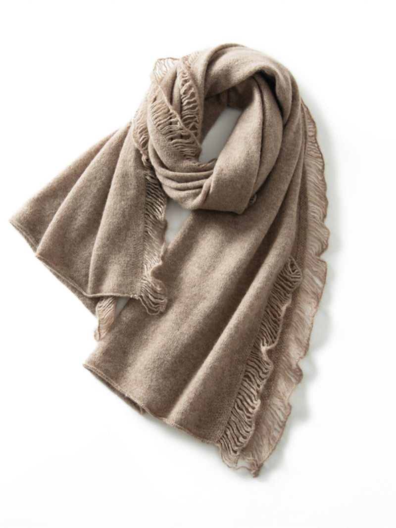 女復古保暖羊絨純色流蘇圍巾