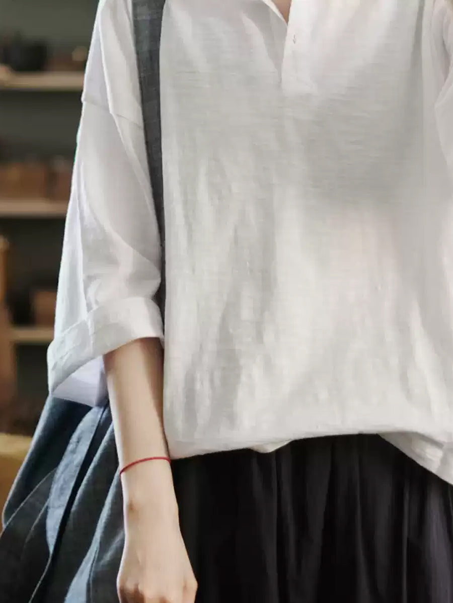 女士夏季休閒純色圓領 100% 純棉襯衫