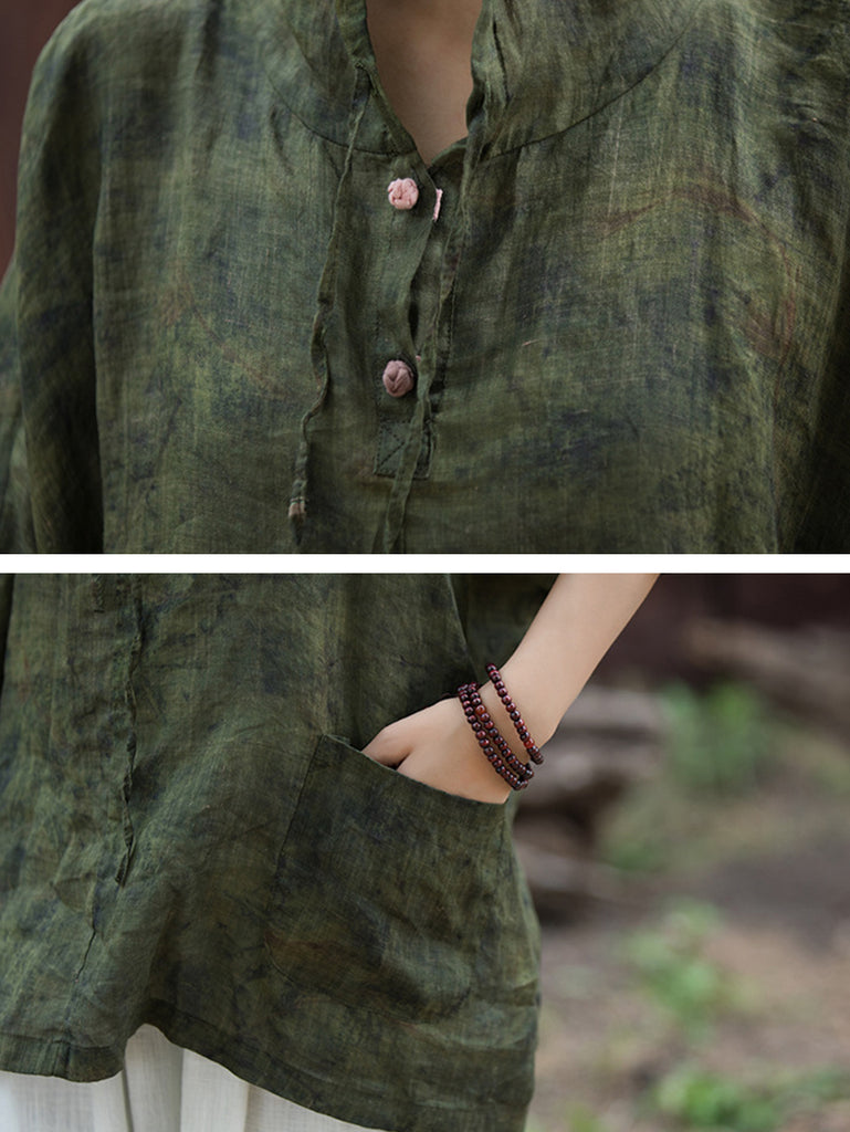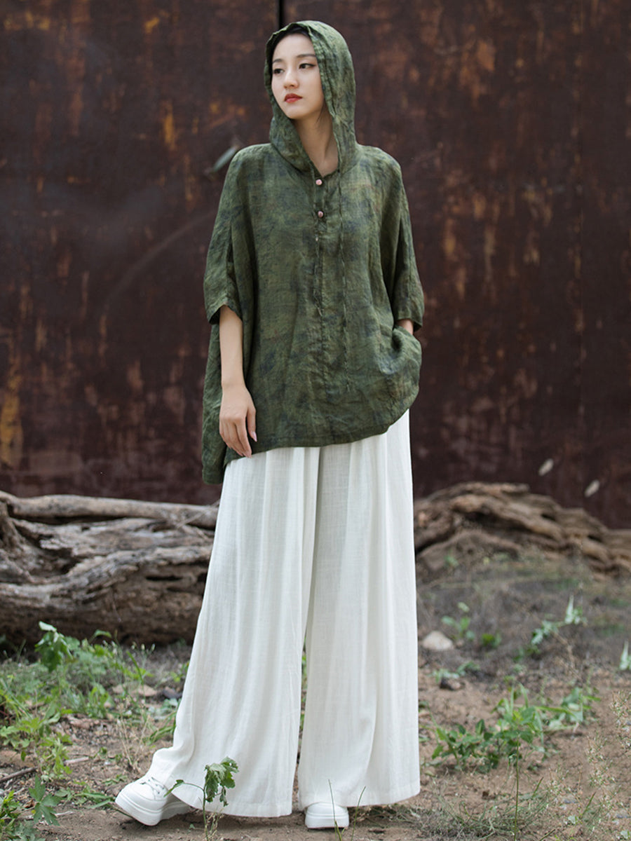 女款夏季復古紮染蝙蝠袖連帽襯衫