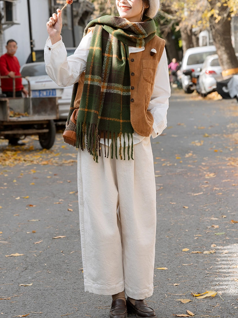 女士冬季保暖格紋塔塞爾披肩圍巾
