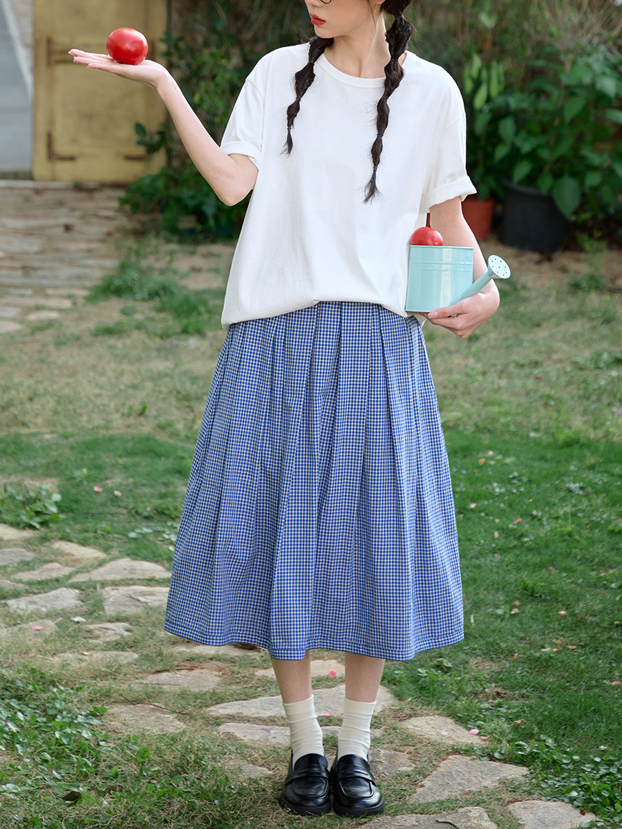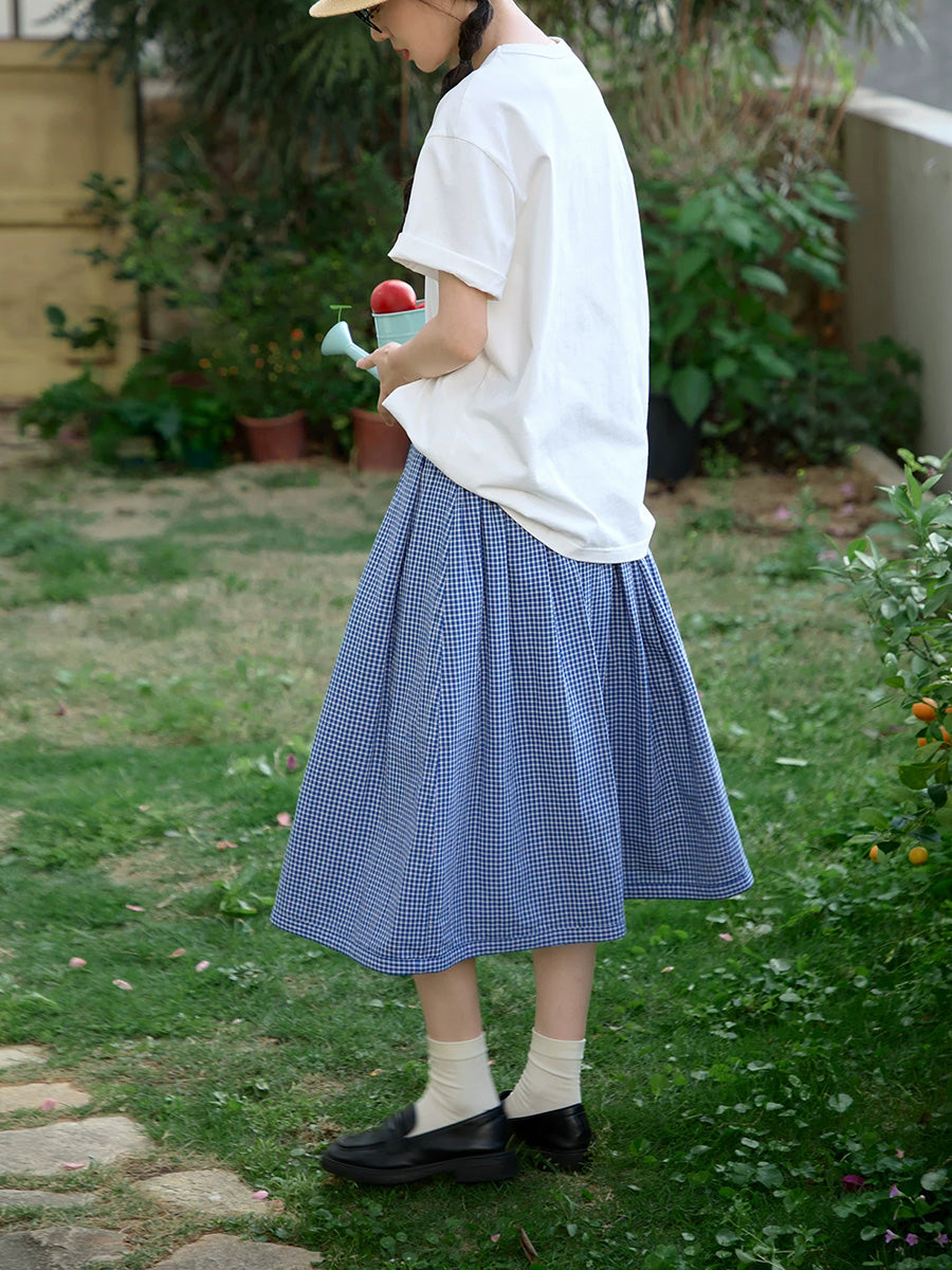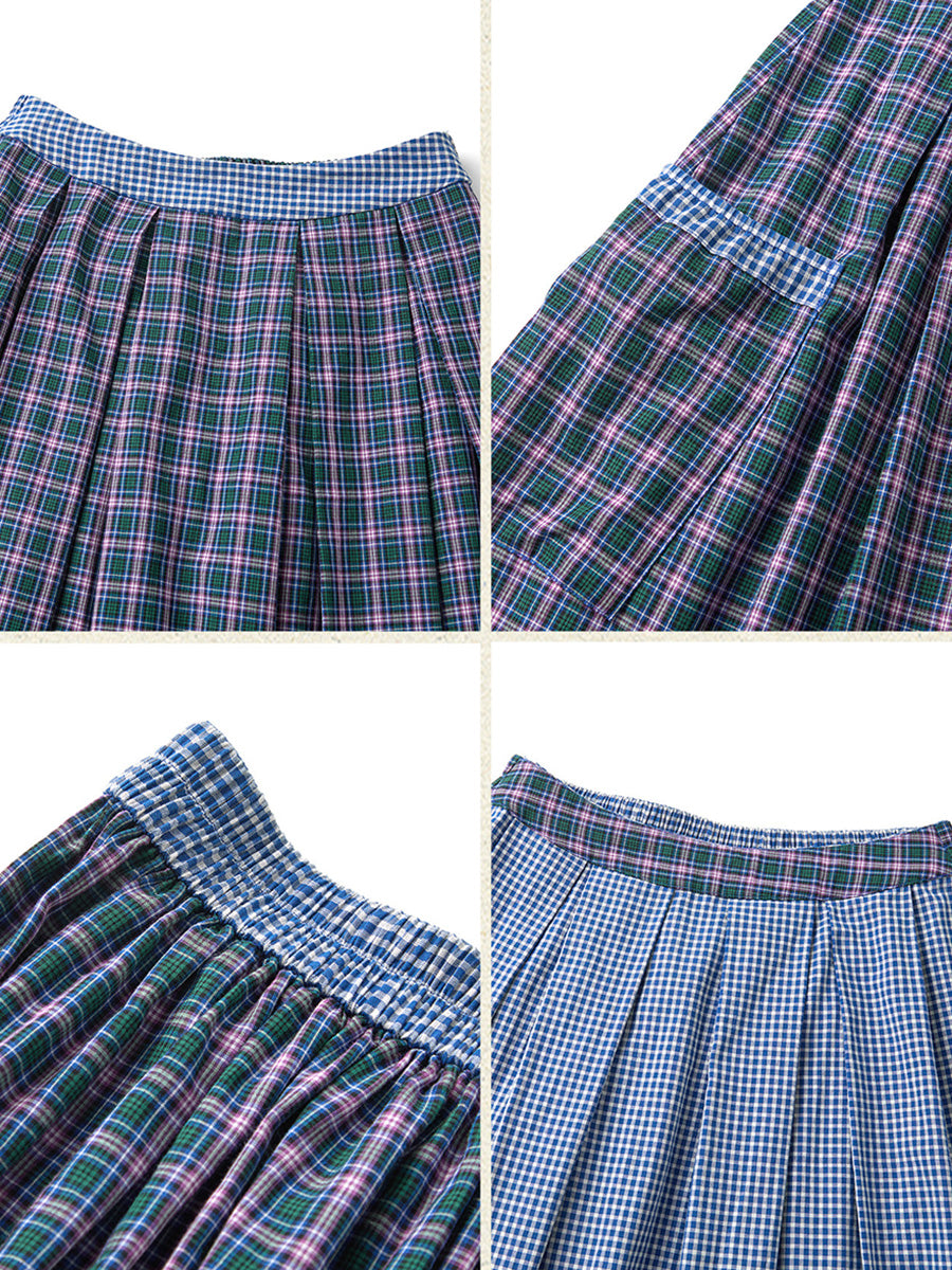 女士夏季格子雙面穿100%純棉半身裙
