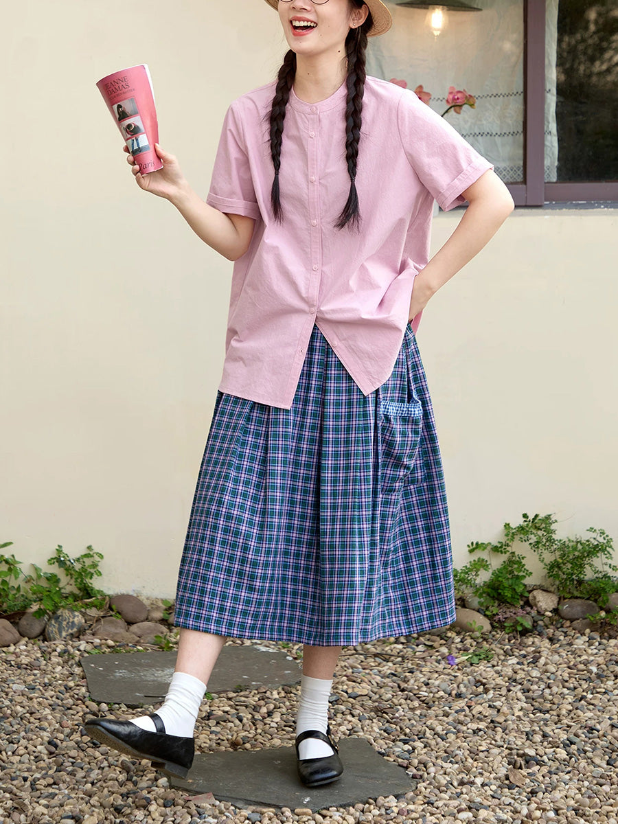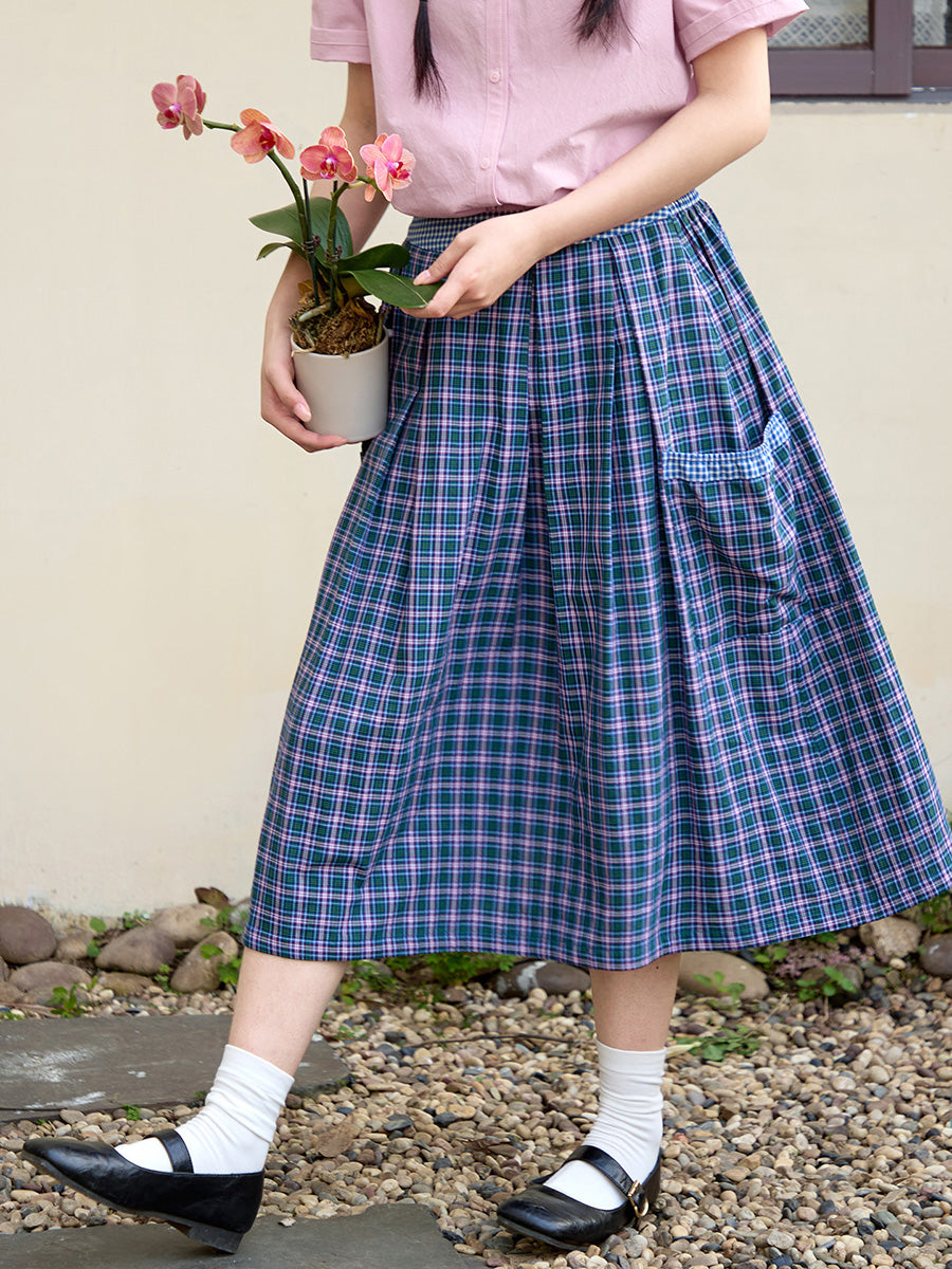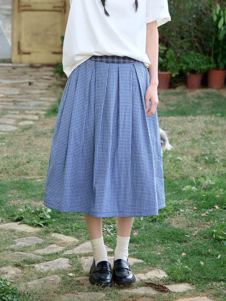 女士夏季格子雙面穿100%純棉半身裙