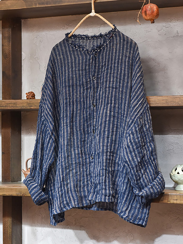 採用 100% 亞麻製成,打造復古秋季外觀。採用經典條紋圖案、舒適的圓領和插肩袖,打造時尚觸感。非常適合春季和夏季。