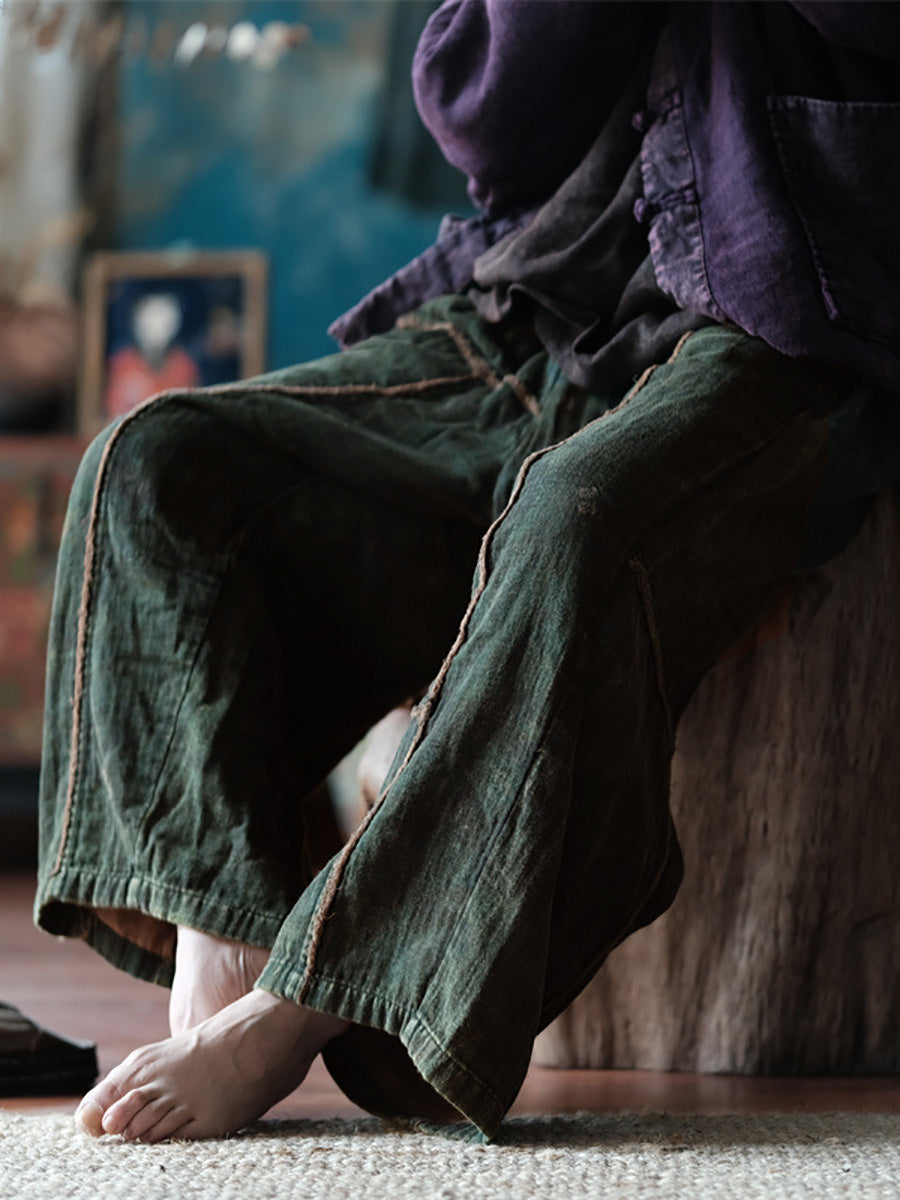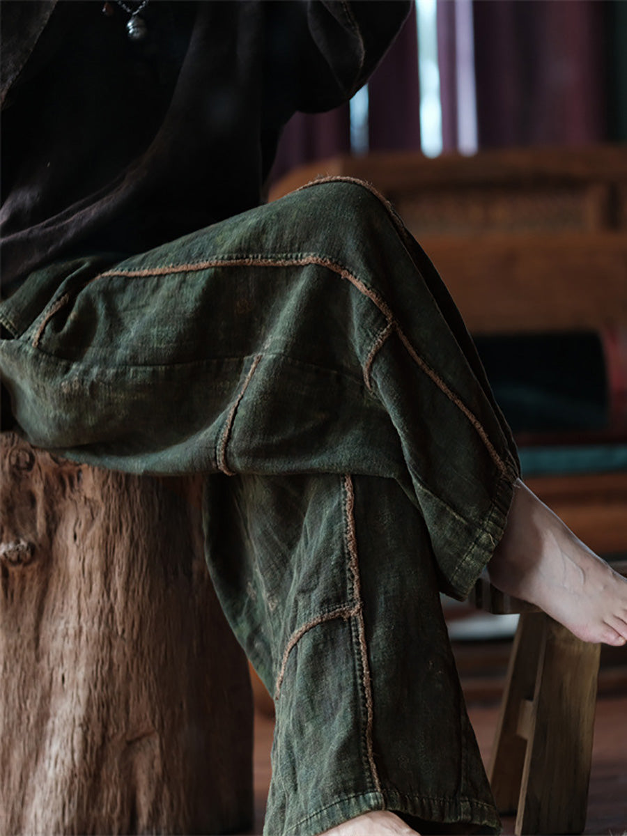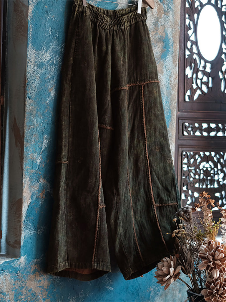 這款服裝的布料完全由 100% 棉製成,帶來復古和永恆的感覺。鬆緊腰部提供舒適性和活動自如性,而拼接圖案增添了獨特的觸感。這款寬褲配有口袋和拼貼細節,非常適合春夏季節。