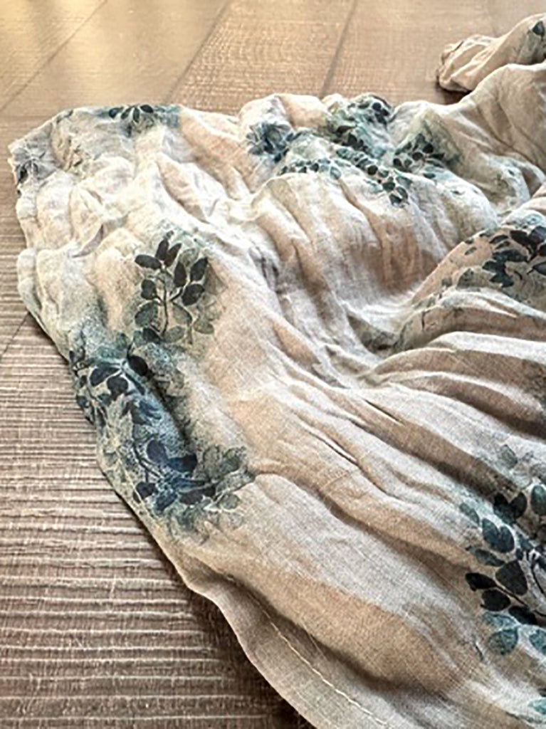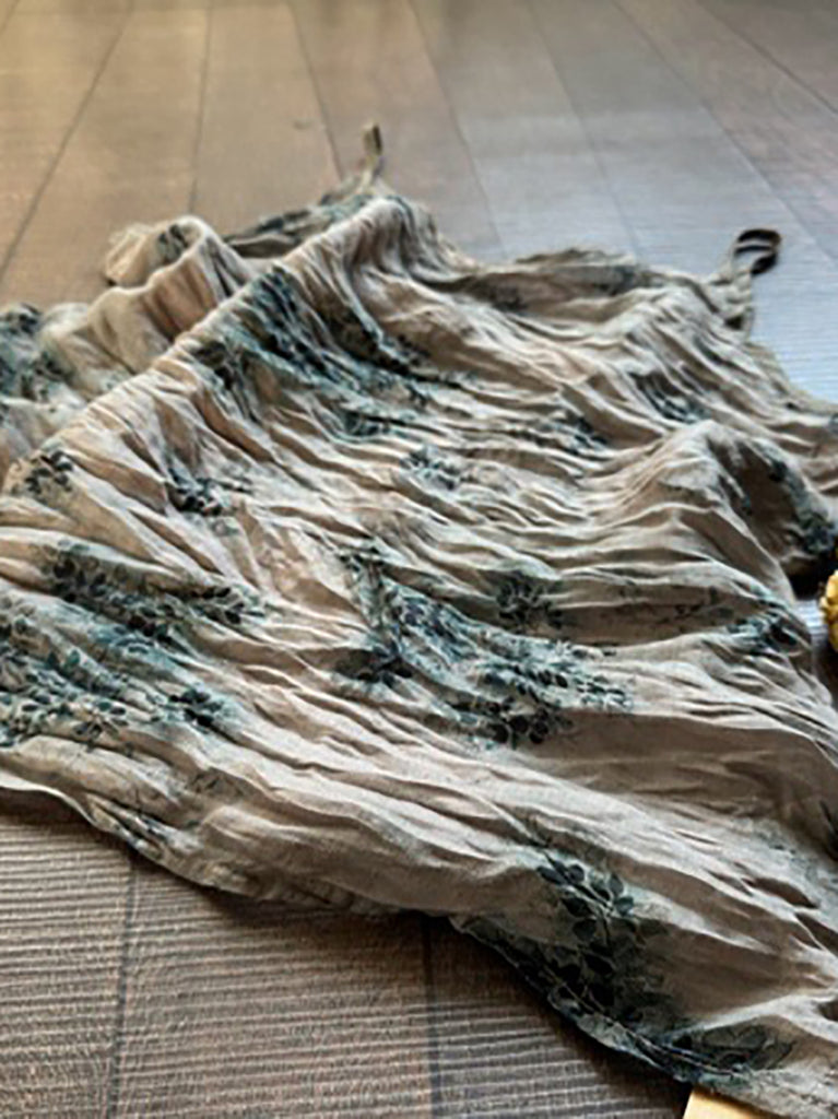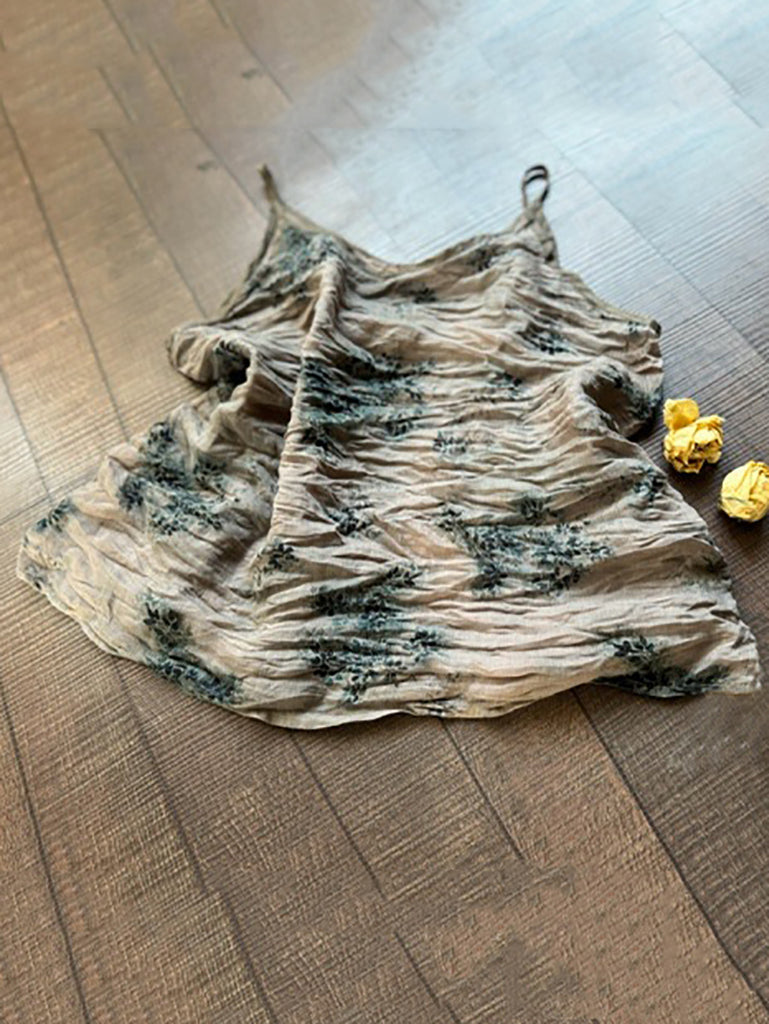 這款復古風格背心採用花卉印花的苧麻布料製成,採用 O 領設計,非常適合春夏季節。