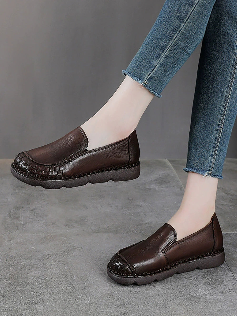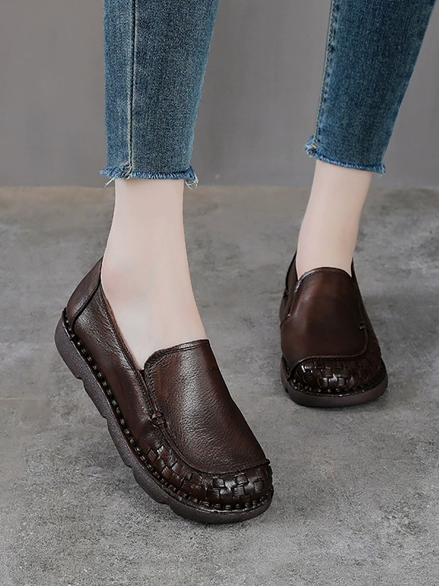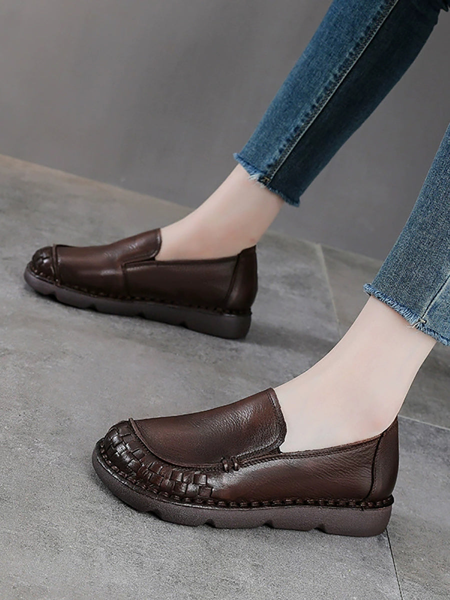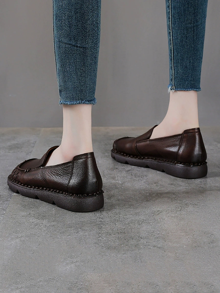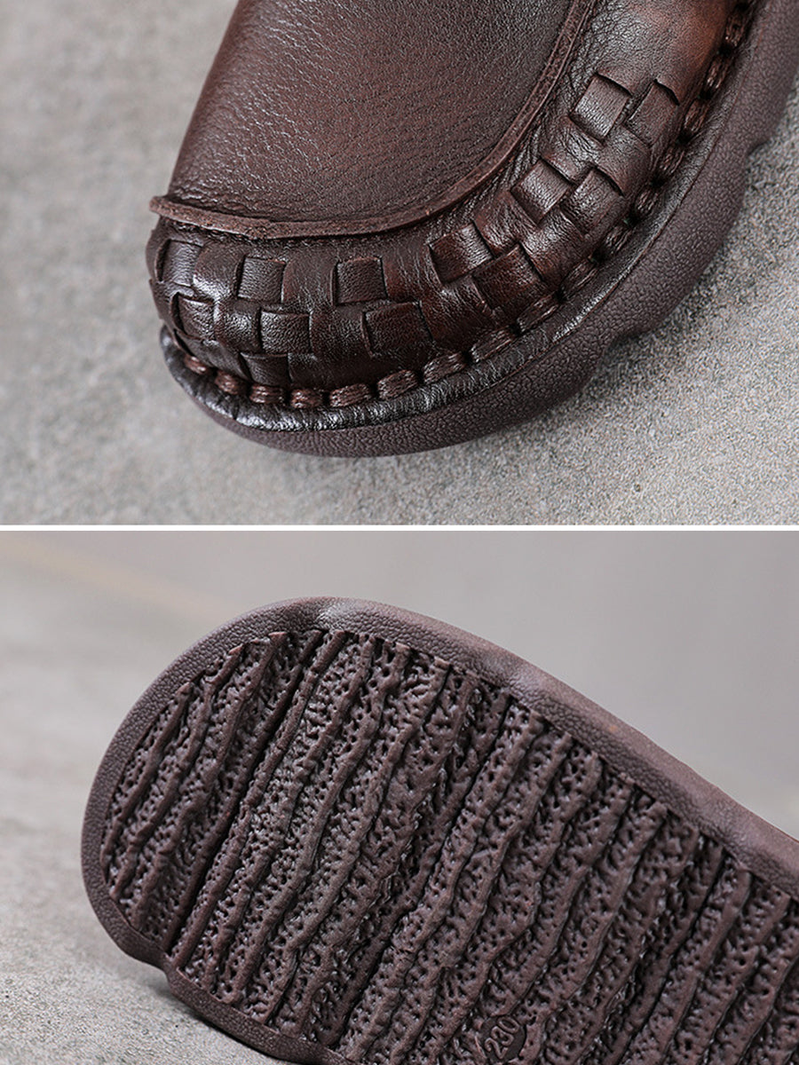女士復古真皮軟底平底鞋