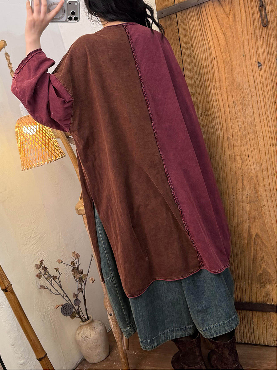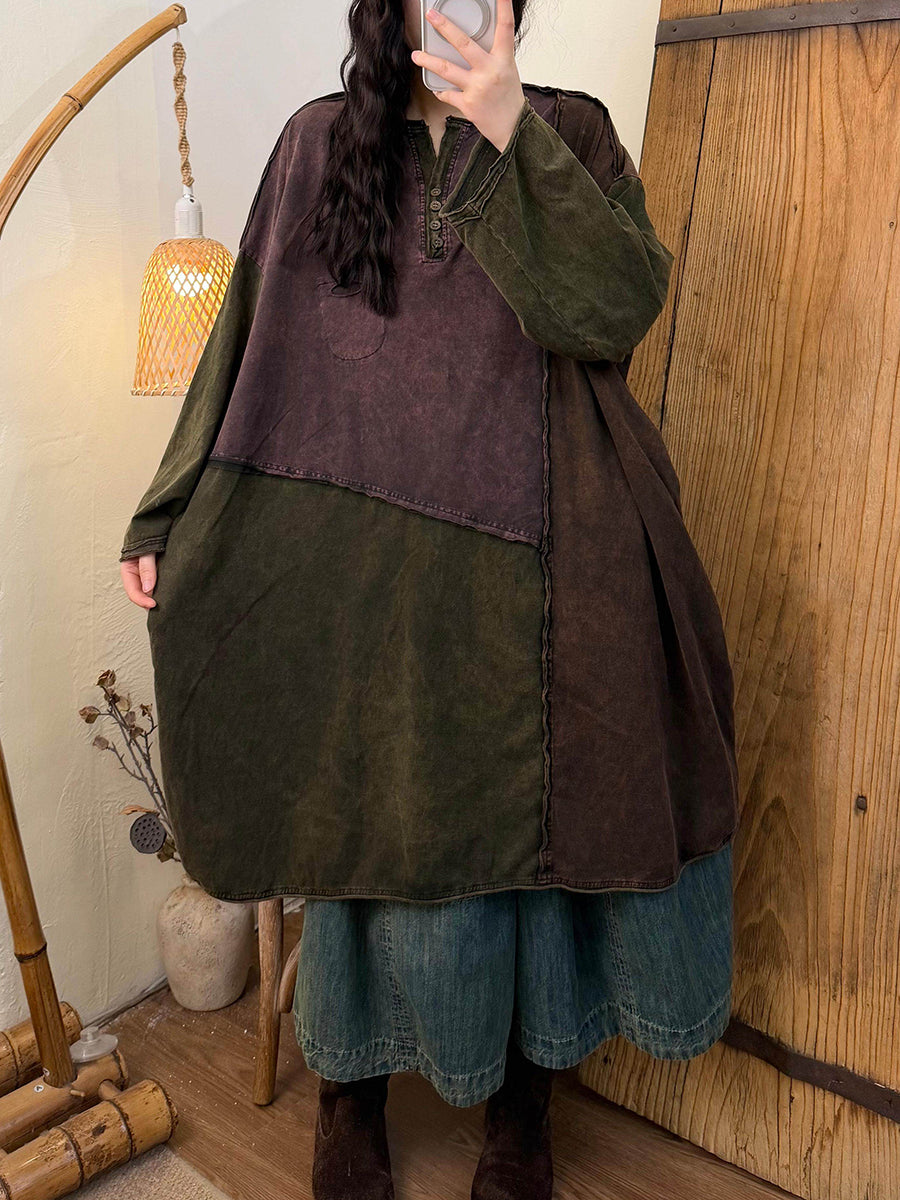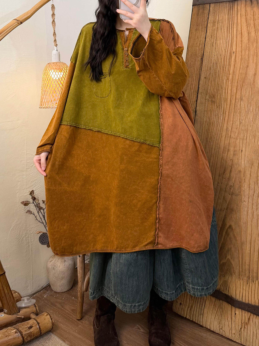女士春季復古撞色棉質連身裙