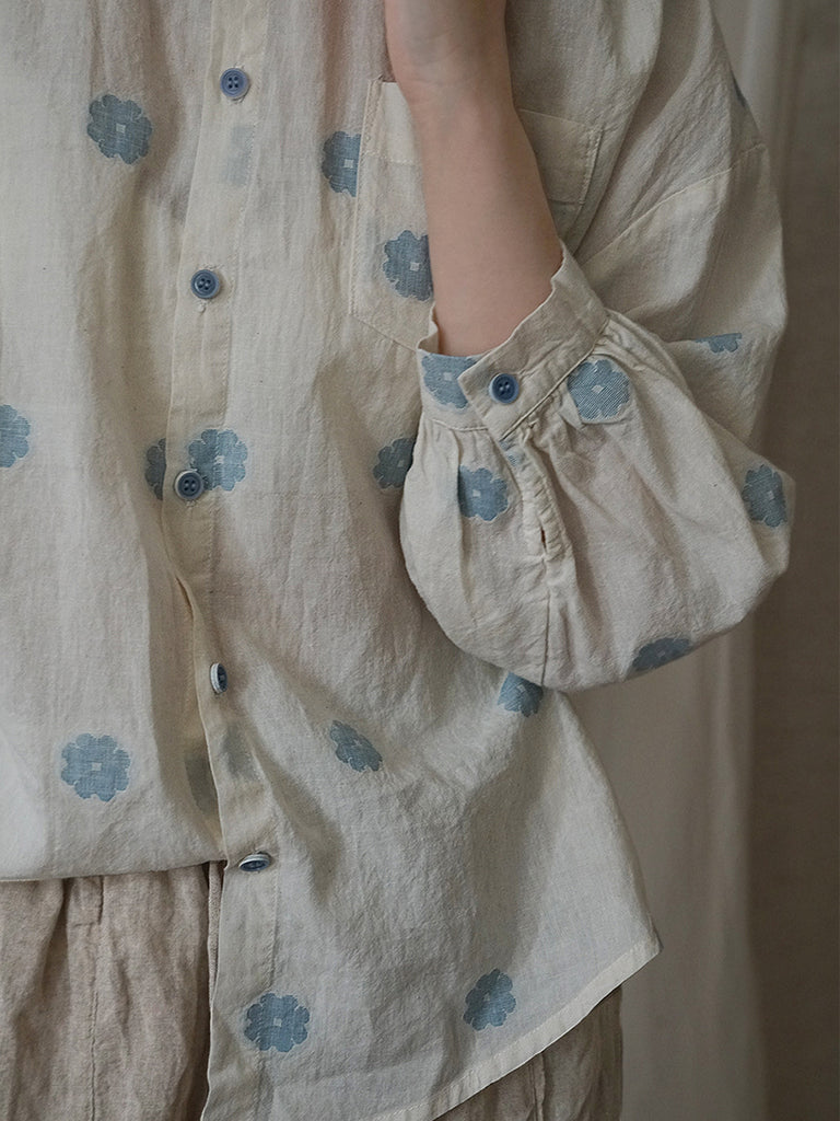 這款女款藝術春季花朵蕾絲領襯衫採用 100% 棉混紡精製而成,展現精緻的花朵圖案和設計精美的蕾絲領。全插肩袖增添復古氣息,是秋季和春季的完美選擇。