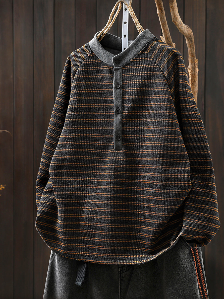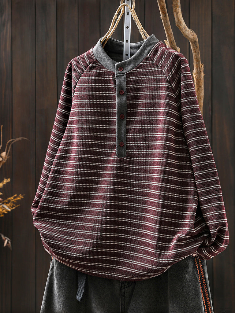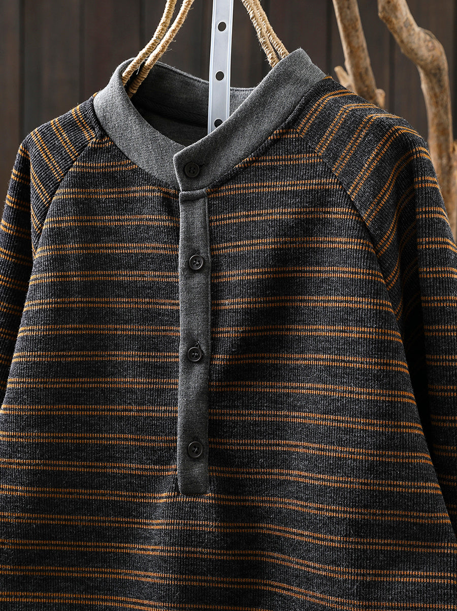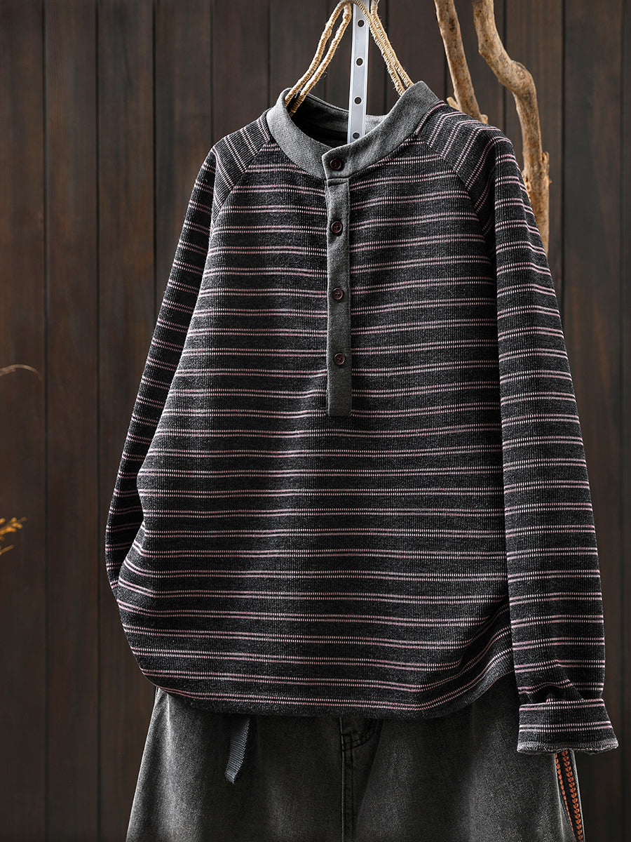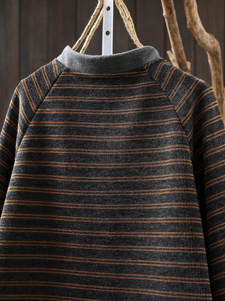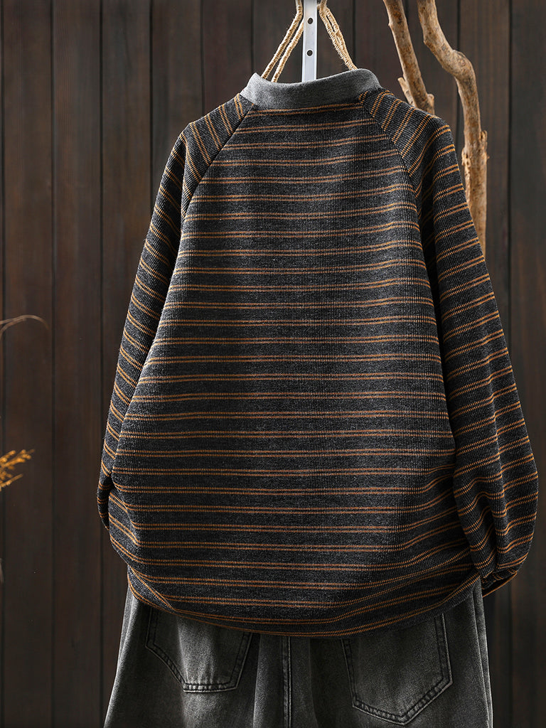 女士秋季復古條紋圓領毛衣